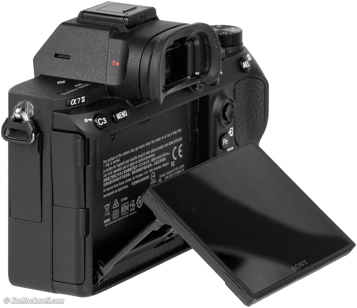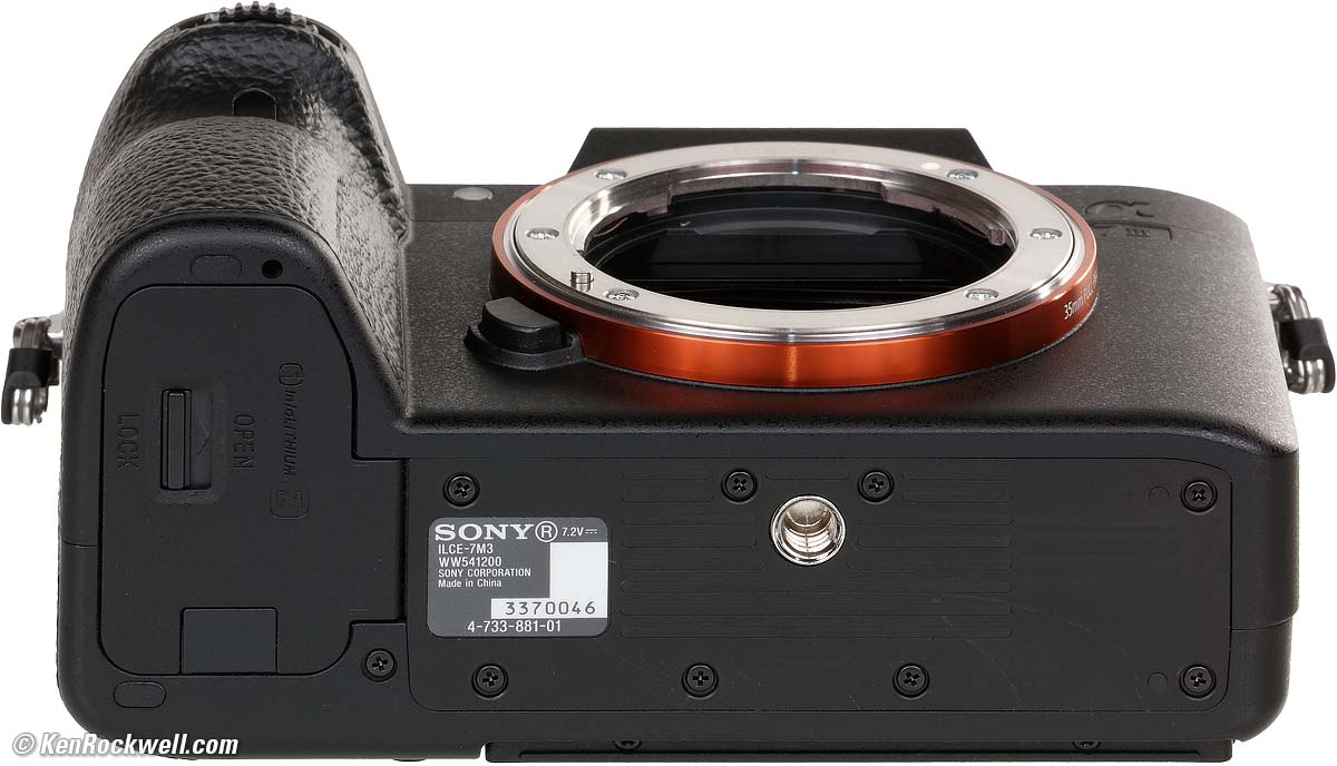 Model NumbersSony's official "ILCE-7M3" model number is printed on the certification sticker on the bottom. It's also how the model is listed in the EXIF information. Its more casual "α7 III" designation is on the front and back.