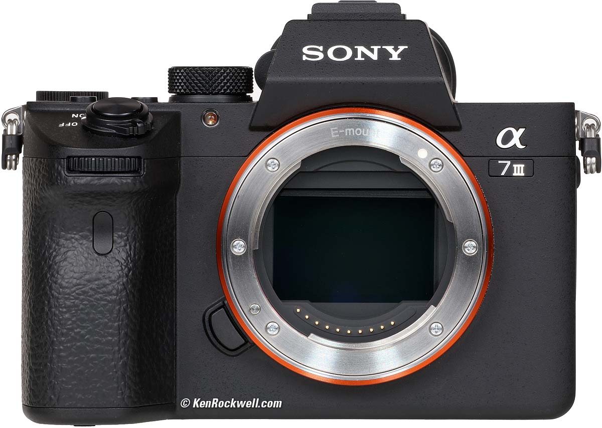 Sony A7 III24MP Stabilized Full-Frame, Silent 10FPS, ISO 204,800, 4K HDR StereoSample Images Intro Lenses & Adapters Specifications Accessories USA Version Performance Compared User's Guide Sony: A9 III A1 II A1 A9 II A7R V A7R IV A7 V A7 IV A7 III A7S III A7CR A7C II A7c FX3 FX2 ZV-E1 A6700 A6600 A6400 ZV-E10 II ZV-E10 ZV-1 II RX1R III RX10/4 RX100/7 Flash Lenses Sony A7 III (22.9 oz./650g with battery and card, $1,798) and 24-105mm f/4 G OSS. I'd get mine at Adorama, at Amazon, at B&H or at Crutchfield. It also comes as a kit with the basic 28-70mm lens for $2,198 at B&H, at Adorama, at Amazon and at Crutchfield. Amazon also offers it as a kit with the 24-105/4G (the best choice), a kit with the Zeiss 24-70/4 or as a kit with the Sony 50mm f/1.8. This all-content, junk-free website's biggest source of support is when you use those or any of these links to my personally-approved sources when you get anything, regardless of the country in which you live. Sony does not seal its boxes in any way, so never buy at retail or any other source not on my personally approved list since you'll have no way of knowing if you're missing accessories, getting a defective, damaged, returned, store demo or used camera. Buy only from the approved sources I use myself for the best prices, service, return policies and selection. Thanks for helping me help you! Ken.