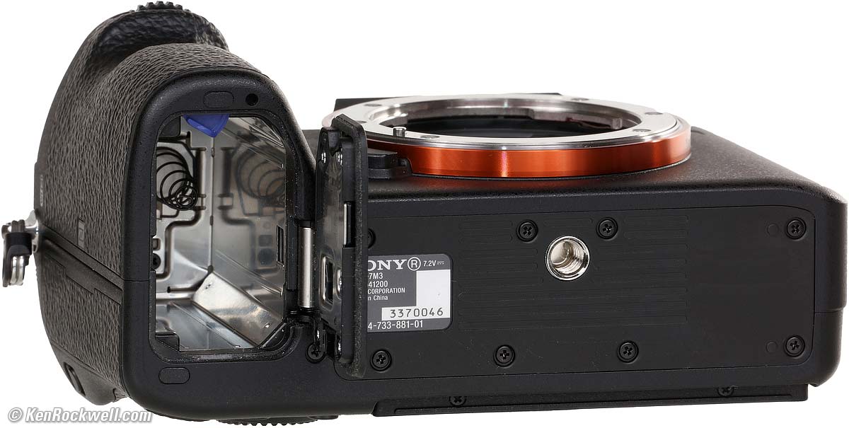 Quality Made in China: Bottom, Sony A7 III. bigger. Magnesium alloy top cover, front cover, internal frame and rear cover. The grip area has been reinforced with magnesium alloy. Sony claims weather seals around most of the buttons and dials, but there are no seals on the card and connector covers. Bottom, Sony A7 III. bigger.