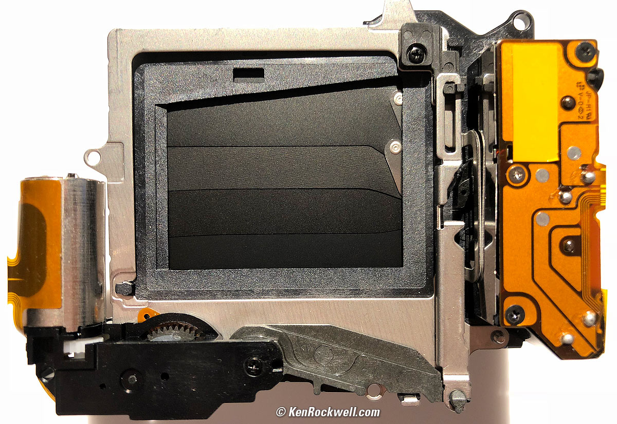 SensorSensor and shutter assembly, Sony A7 III. bigger. 24 MP full-frame 23.8 × 35.6mm back-illuminated CMOS sensor. 1.5:1 aspect ratio. 15-stop dynamic range. Sony never mentions if it has an anti-alias filter or not, and my observations confirm the pixel-to-pixel sharpness as being so high that it doesn't appear to have an anti-alias filter. Just look at the camera-original ISO 100 sample images which were shot as JPGs in-camera: they are insanely sharp; I've never seen sharper JPGs come from any camera. My tests on other cameras that were sold in versions both with and without these filters (very slight difference between Nikon D800 and D800E and no visible difference between Canon 5DS and 5DSR) has shown little to no difference even when camera makers charge for taking out the filter, so don't worry about it. No anti-alias filter. Anti-reflection coated. Ultrasonic cleaner and anti-static coating. Mechanical "5-axis" sensor-shift stabilizer claims 5 stops improvement.