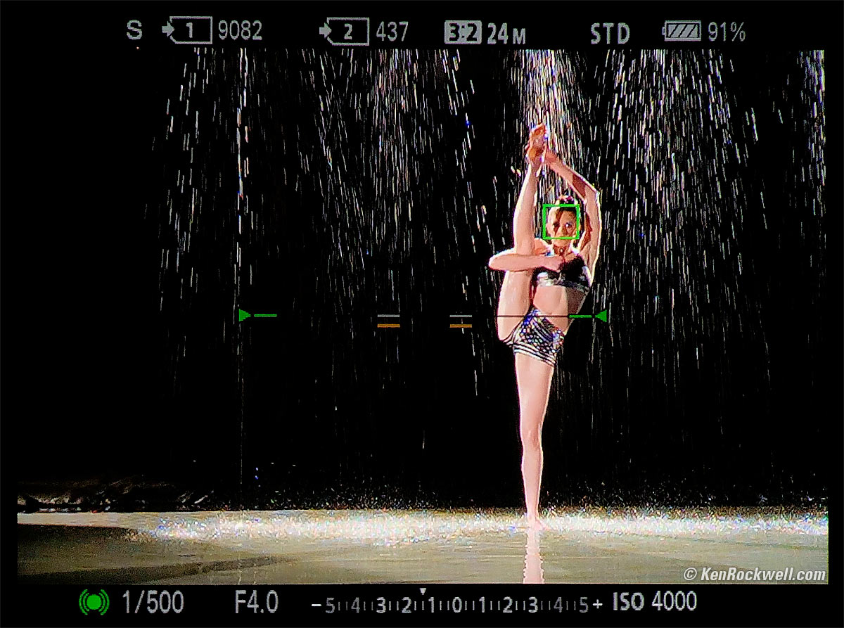 ISO 5,000Girl Dancing in the Rain, 3:18 P.M., 27 February 2018. cropped from horizontal Sony A7 III shot, Sony 24-105mm f/4 G at 67mm at f/4 at 1/500 at ISO 5,000, Perfectly Clear. bigger or full-resolution or camera-original © JPG.