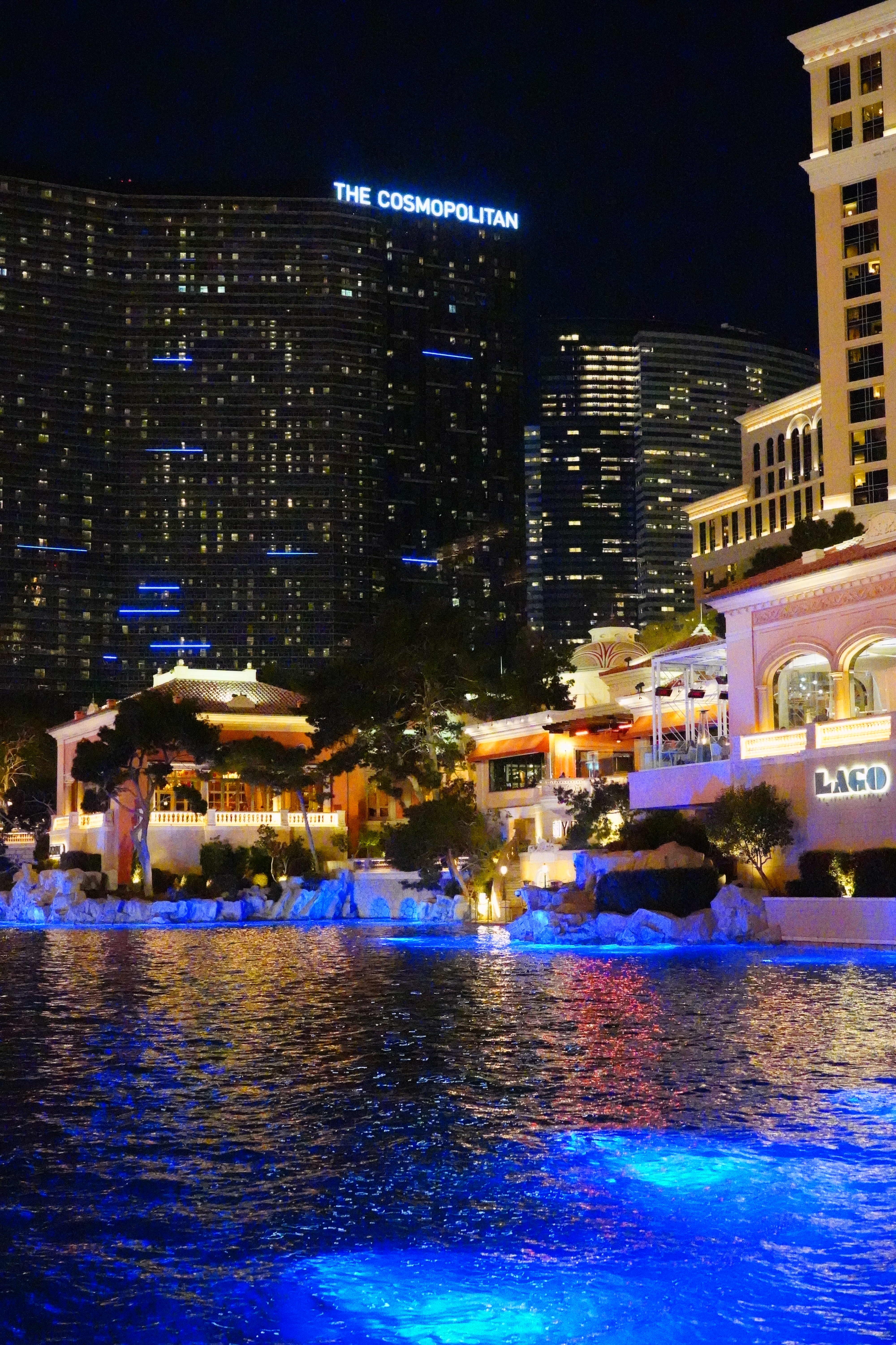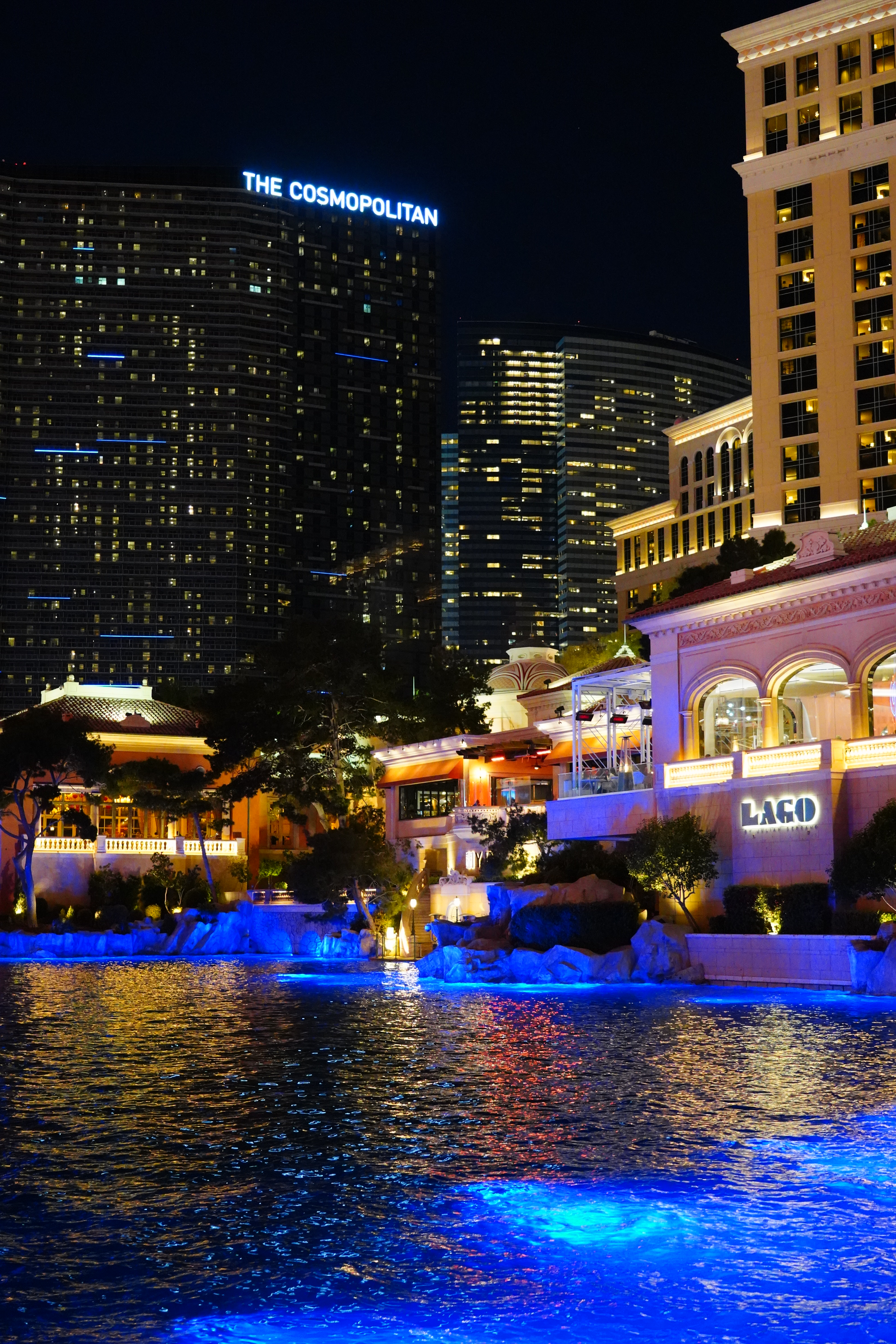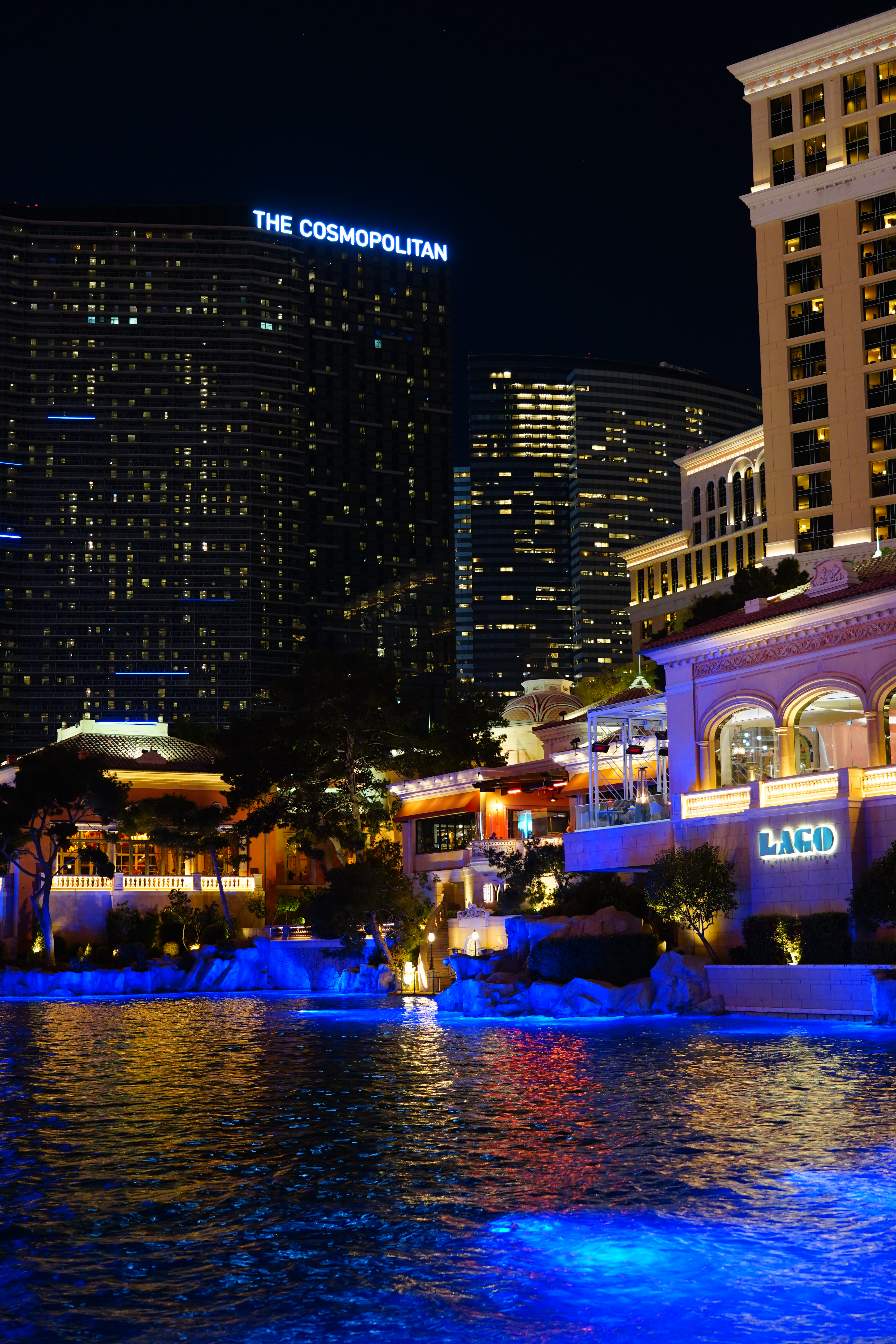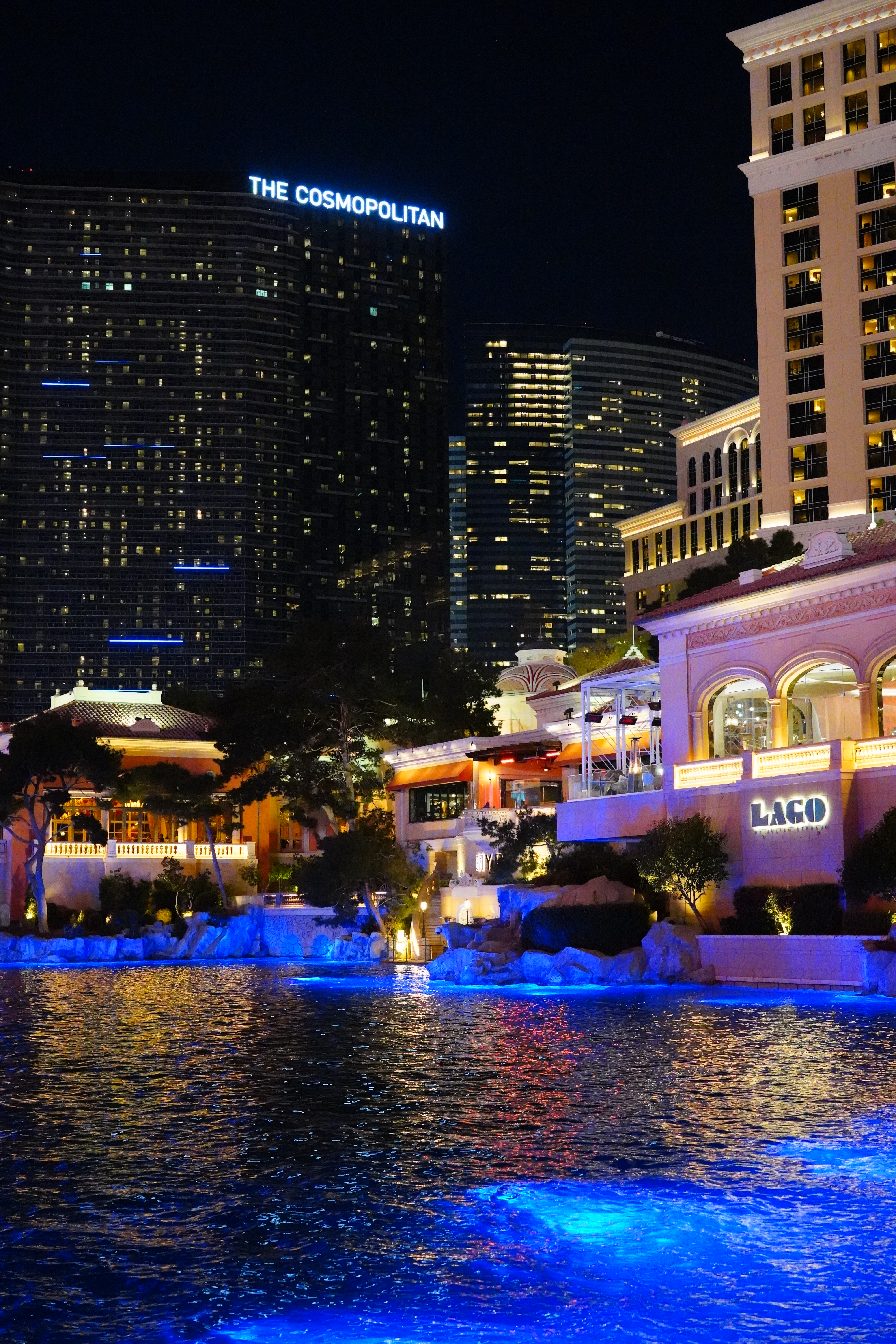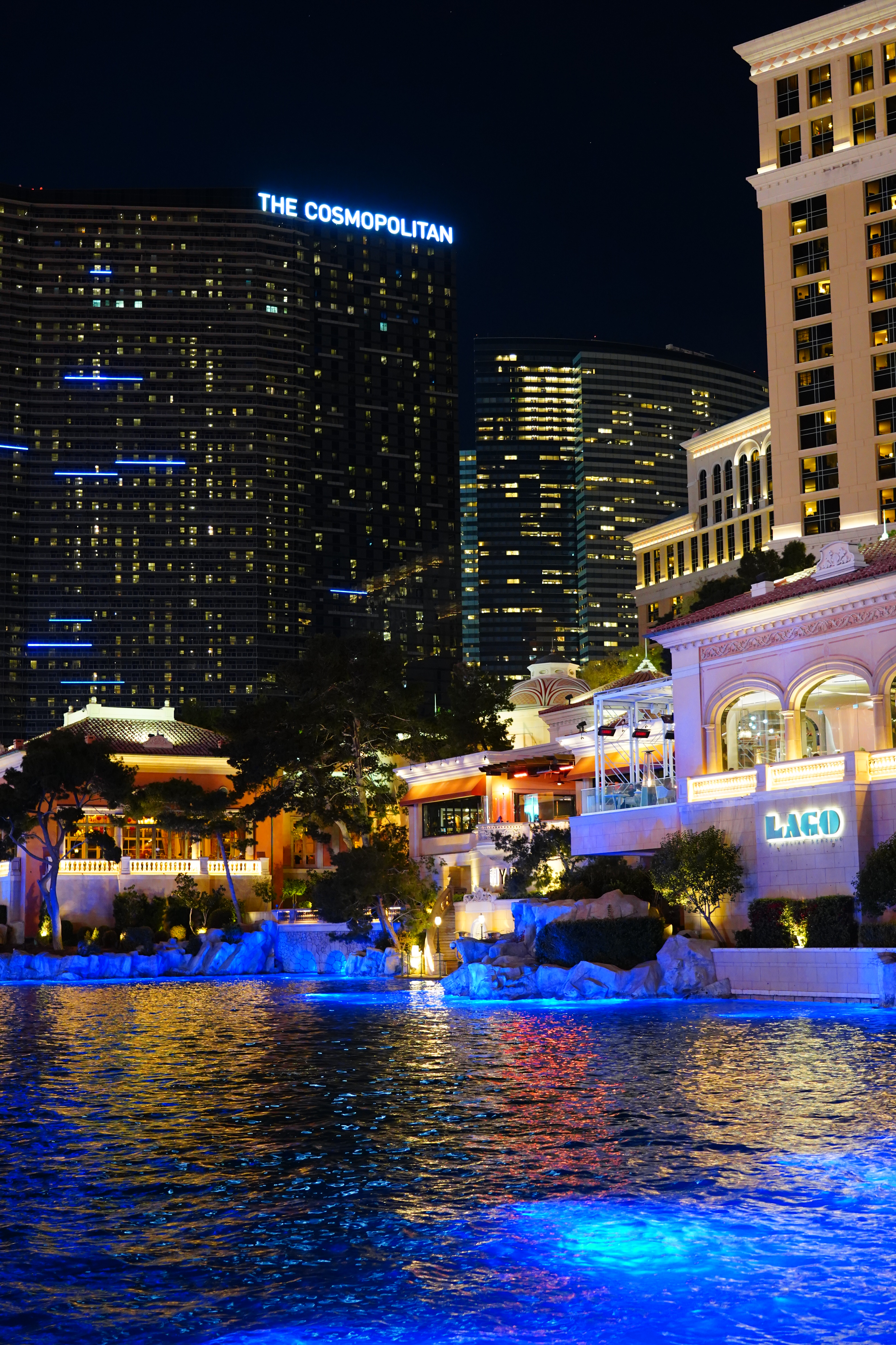 ISO 2,000Bellagio Hotel Turns Chinese, 8:06 P.M., 28 February 2018. Sony A7 III with Sony 24-105mm f/4 G at 30mm at f/4 hand-held at 1/30 at Auto ISO 2,000, Perfectly Clear. bigger, full-resolution or camera-original © JPG.