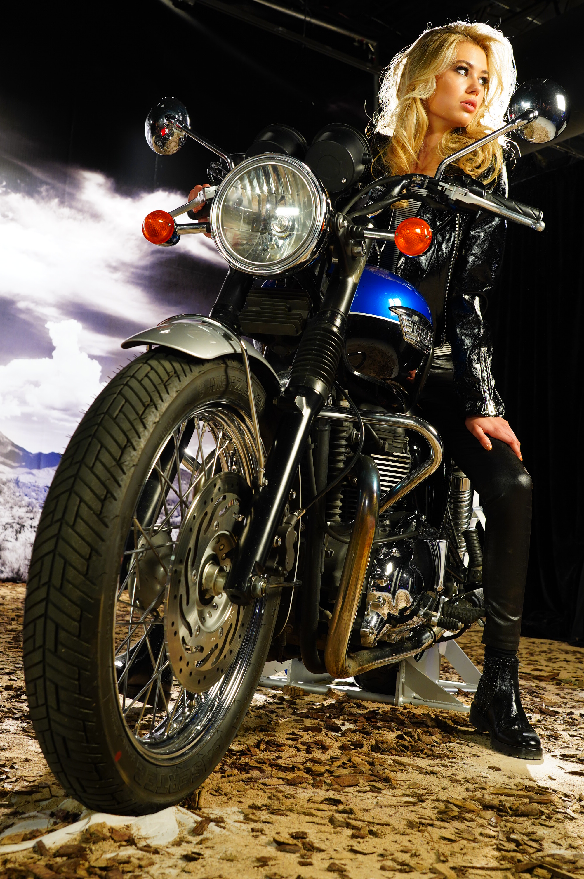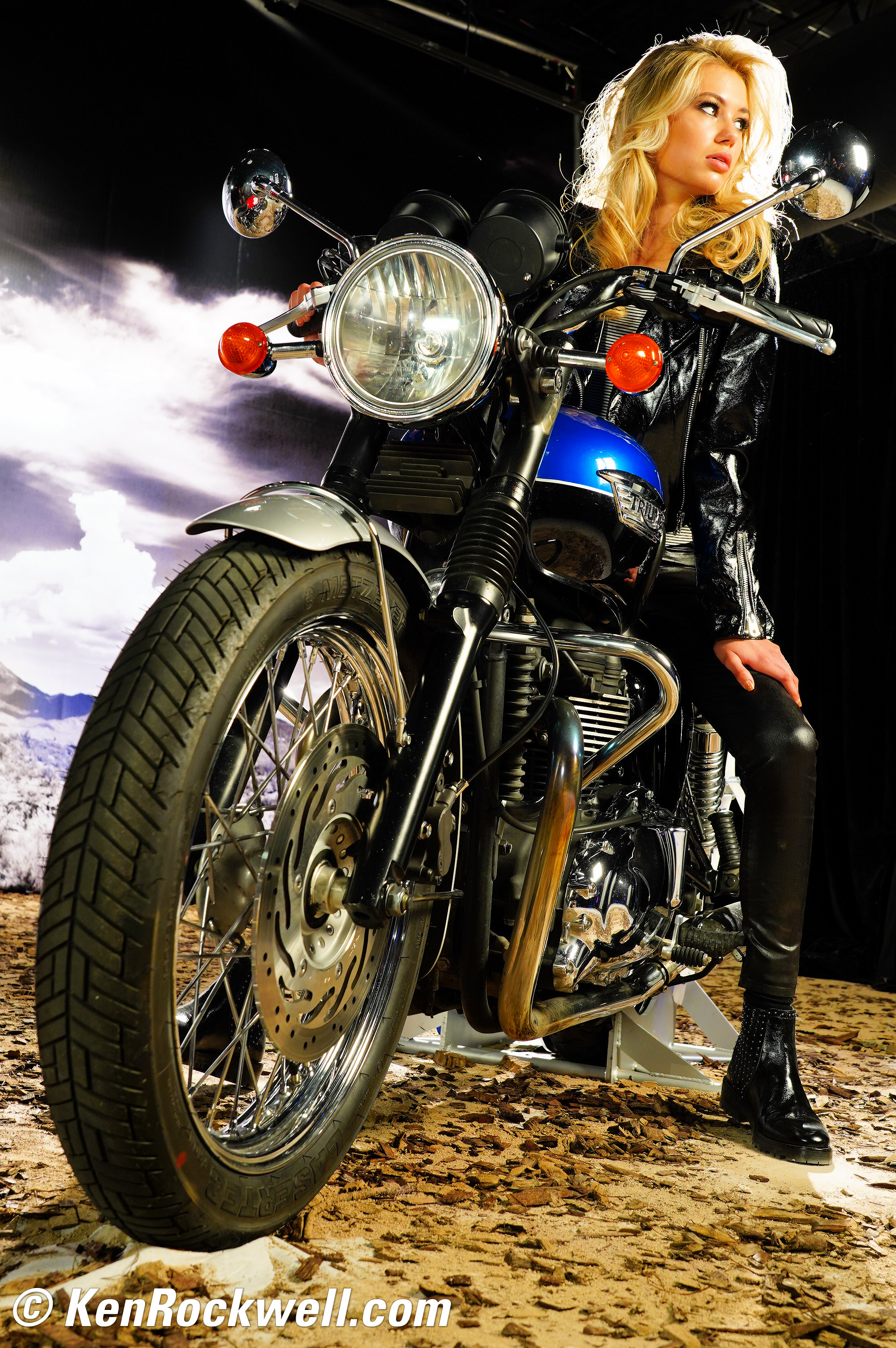 ISO 1,000Girl Stopped on Motorcycle in the Desert, 6:36 P.M., 26 February 2018. Sony A7 III with Sony 24-105mm f/4 G at 40mm at f/8 hand-held on the ground at 1/20 at ISO 1,000, Perfectly Clear. bigger, full-resolution or camera-original © JPG.