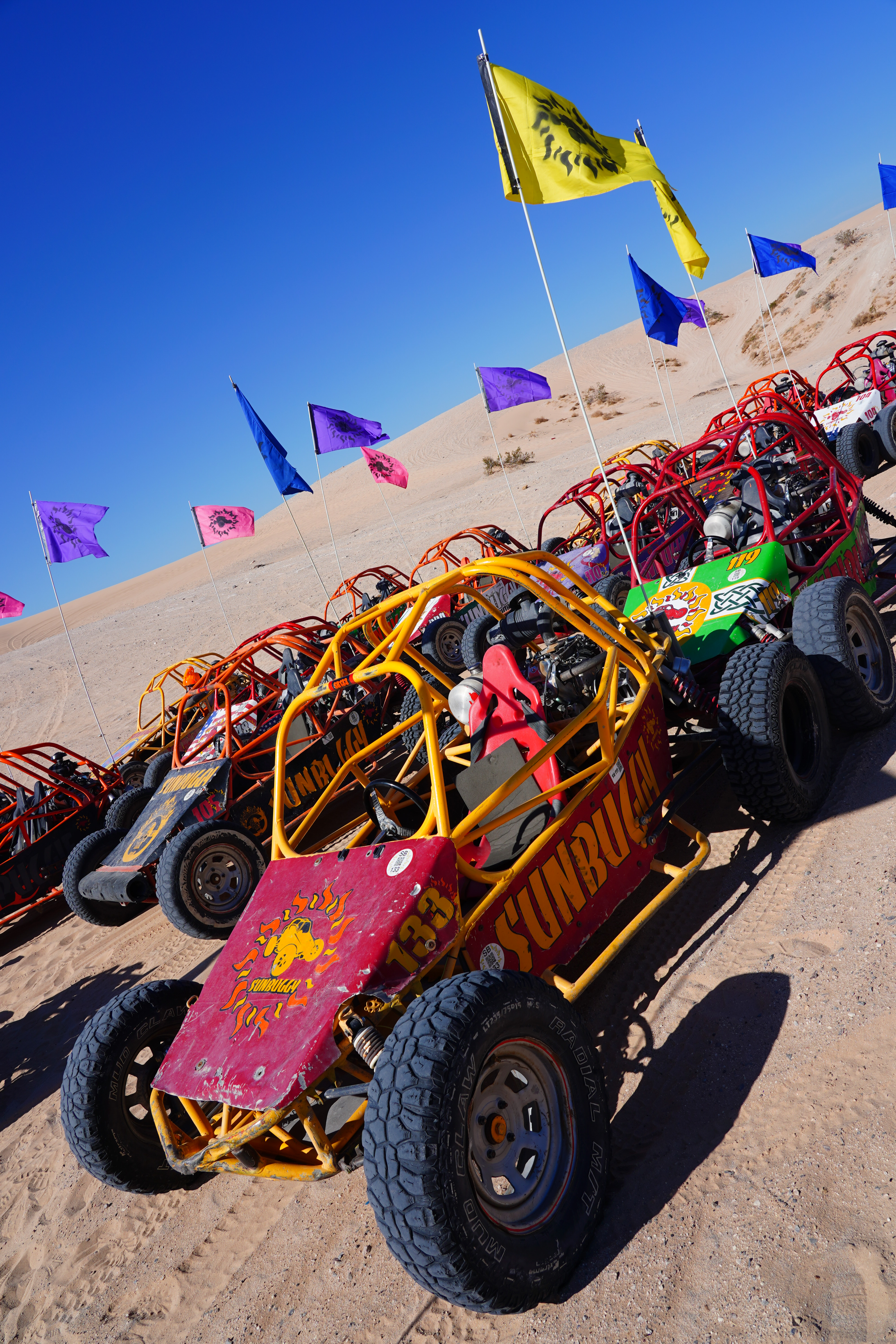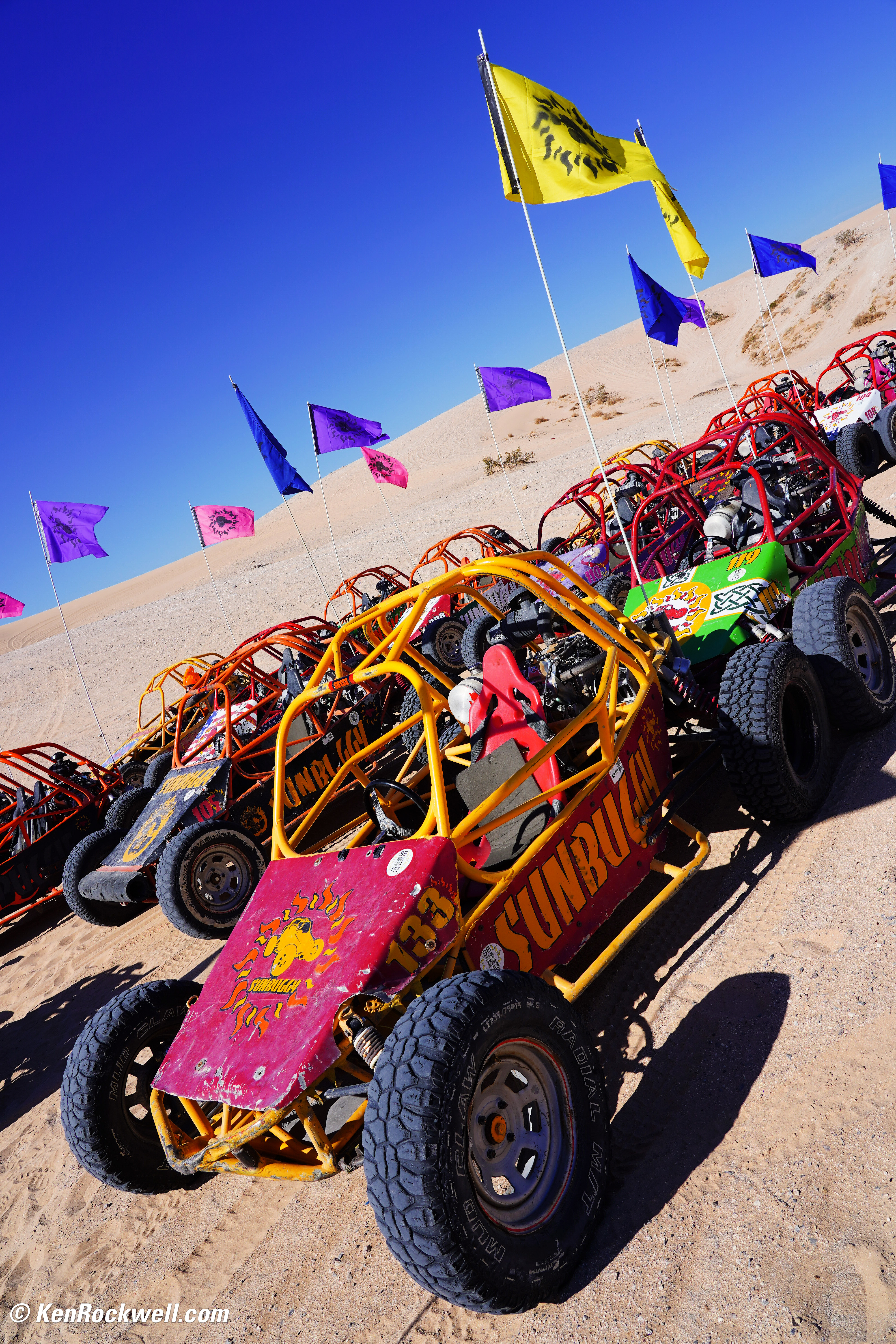 ISO 100Dune Buggies, Nelli Dunes, Nevada, 9:58 A.M., 28 February 2018. Sony A7 III with Sony 24-105mm f/4 G at 24mm at f/11 at 1/200 at Auto ISO 100, Perfectly Clear. bigger, full-resolution or camera-original © JPG.