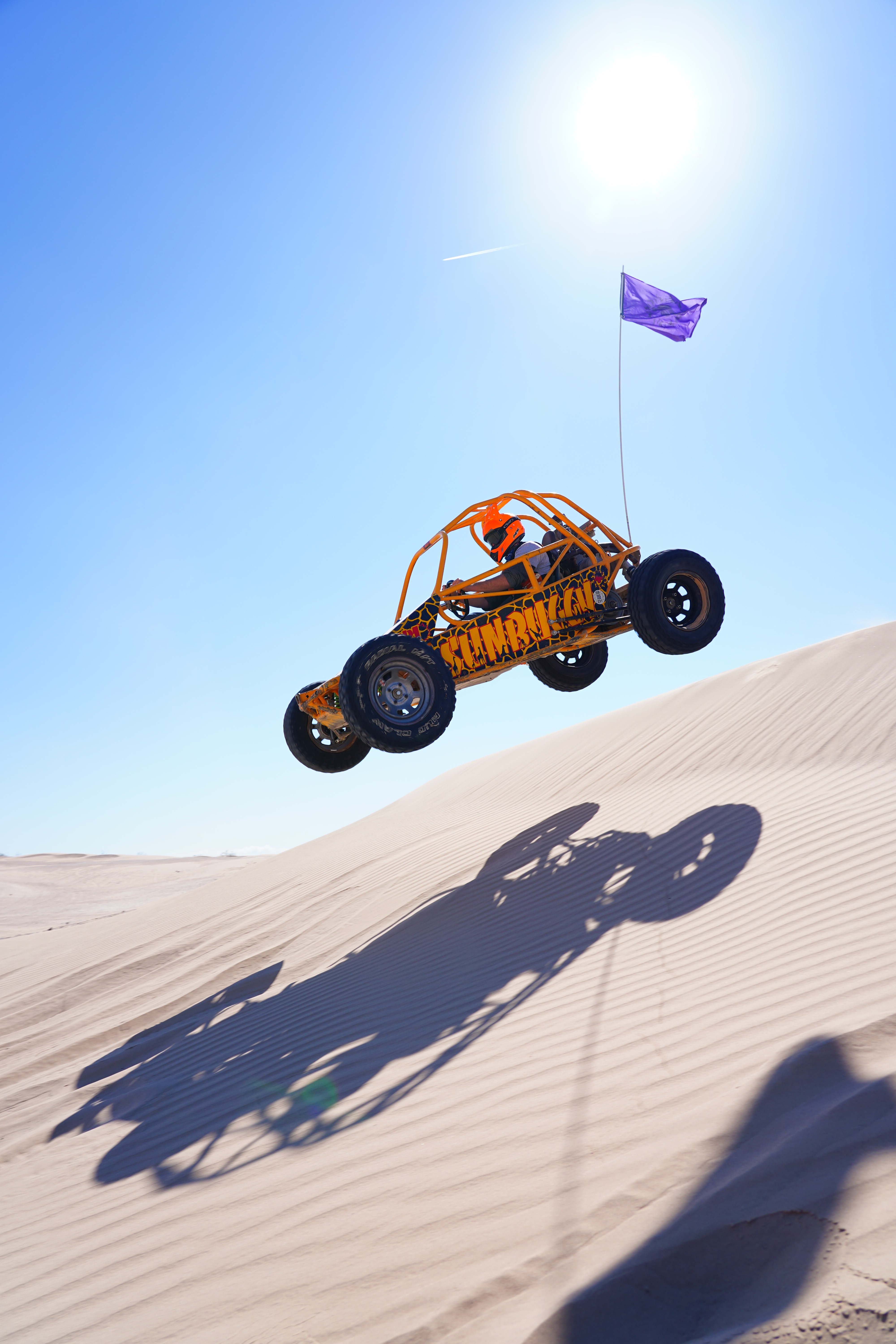 ISO 125Dune Buggy Flying over Dune, Nelli Dunes, Nevada, 10:36 A.M., 28 February 2018. Sony A7 III with Sony 24-105mm f/4 G at 24mm at f/6.3 at 1/500 at Auto ISO 125, as shot. bigger or camera-original © JPG.