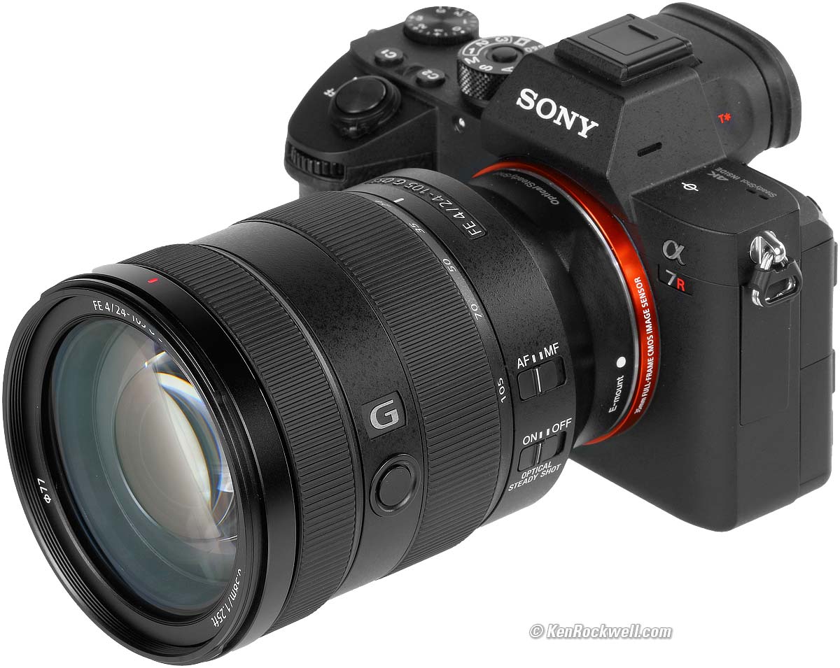 Other Brand AdaptersWhile you can adapt any lens of any brand or age to the A7R III, they won't work as well as native Sony or Zeiss FE lenses, or Alpha or MAXXUM lenses with the LA-EA4 adapter. Lenses that perform magnificently on their own brand of camera may or may not autofocus that well adapted to Sony. If you demand the best performance, just use the same brand of lens as your camera. Adapters should never be your go-to for the best performance. Don't expect the best results for sharpness or for autofocus from other-brand adapters if you're picky. Adapters are great for fun; you can get adapters cheap for any kind of lens, but not only may autofocus be iffy, adapted wide-angle lenses usually aren't very sharp on the sides at large apertures because Sony's full-frame mirrorless sensors are optimized for lenses with a curved fields. Most other adapted lenses won't seem very sharp on the sides at large apertures due their flat fields not interfacing well with the curved fields needed by Sony's sensors on these cameras. If you get the center in focus, the sides will probably be off, and if you get the sides in focus, the center will be off. This is more of a problem with wider lenses and at large apertures; stop a lens down and the sides will come into better focus.