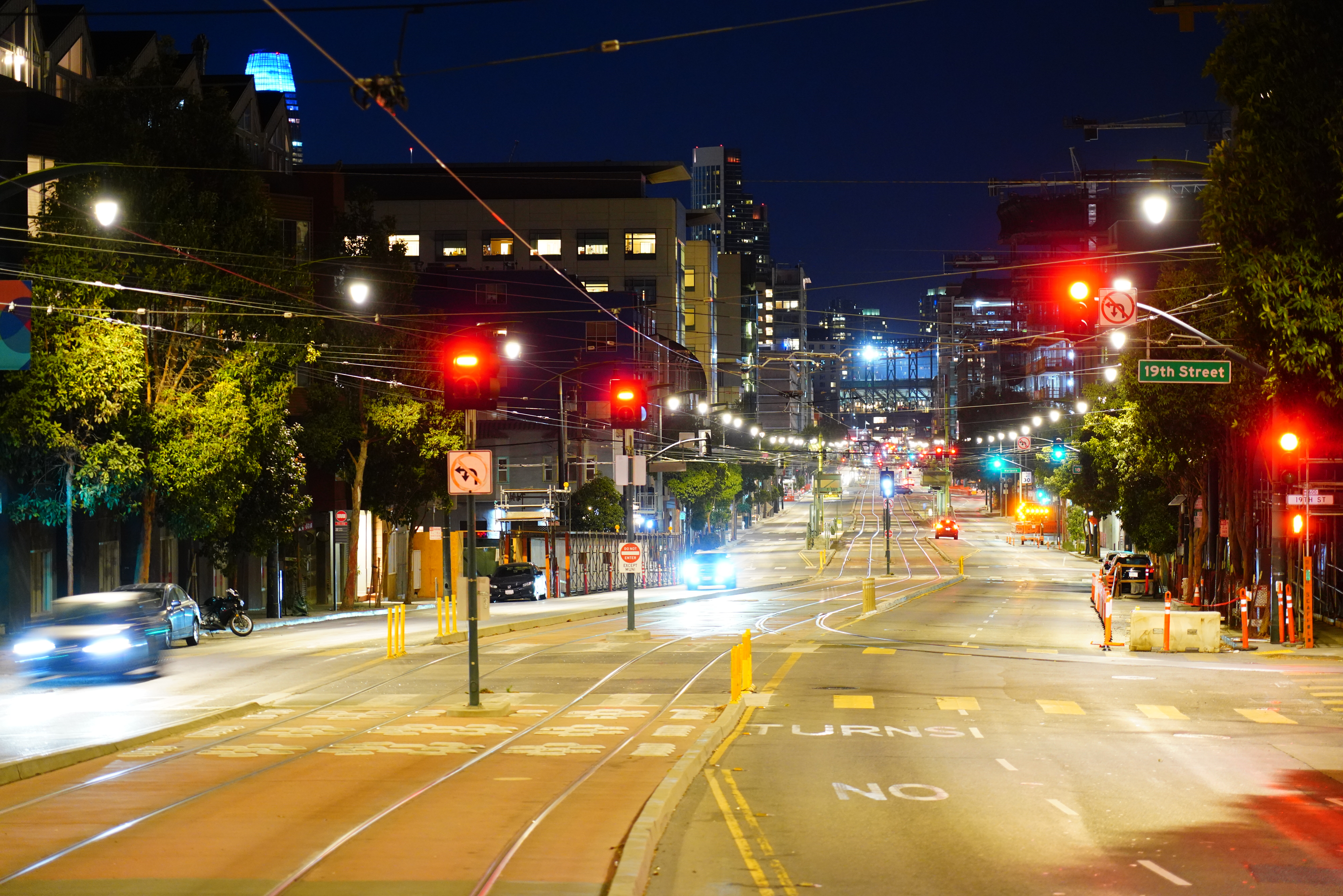ISO 3,200Third Street at 19th, San Francisco, 8:03 P.M., 16 September 2018. Sony A7R III with Sony 24-105mm f/4 G at 105mm at f/4 at 1/10 hand-held at ISO 3,200, Perfectly Clear. bigger, full-resolution or camera-original © JPG.