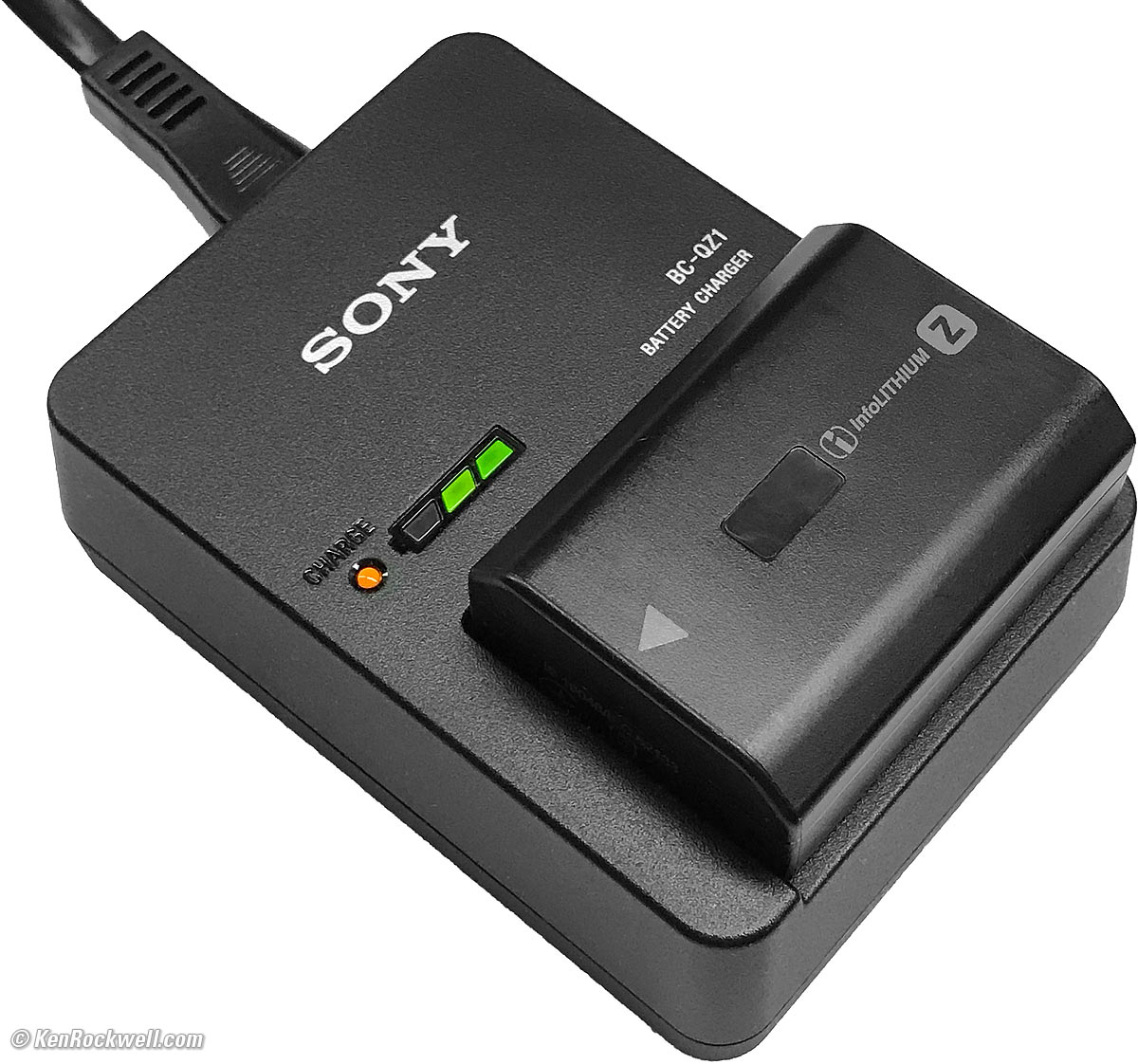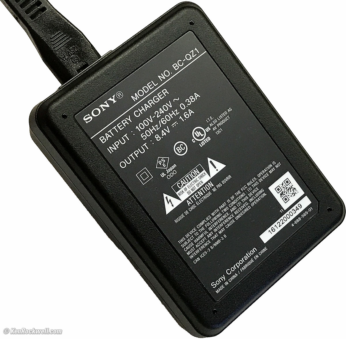 Sony BC-QZ1 Battery Charger. bigger. It charges via USB in-camera, or also charges in the included BC-QZ1 Corded Battery Charger. The BC-QZ1 is rated 100~240V, 50/60 Hz, 0.38A in, and 8.4VDC @ 1.6A out. You can charge two batteries at once; one in the camera via USB and the other in this charger.