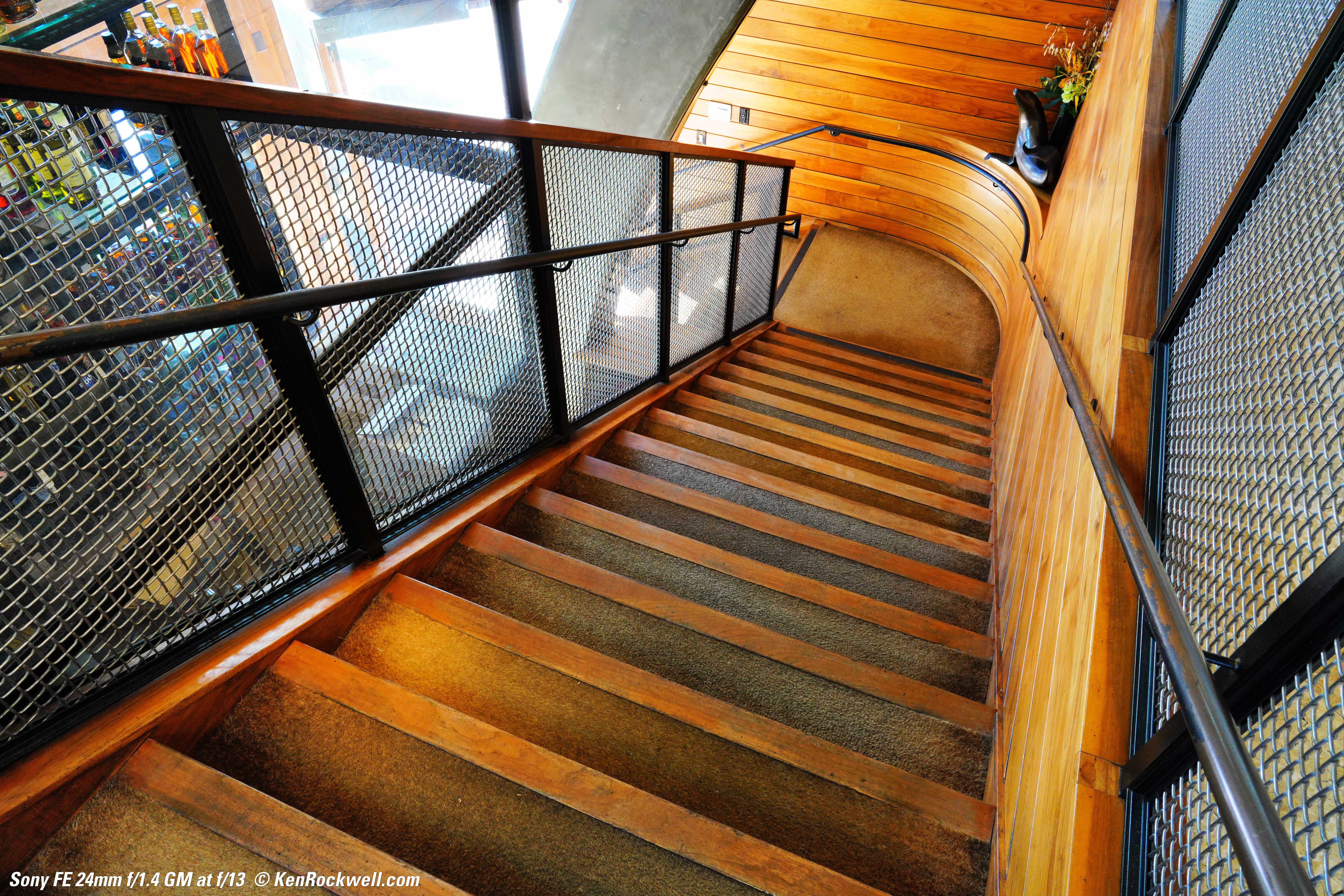 Sausalito Staircase, 1:53 P.M., 17 September 2018. Sony A7R III with Sony FE 24mm f/1.4 GM at f/13 at 1/15 at Auto ISO 1,600, Perfectly Clear. bigger, full-resolution or camera-original © file.
