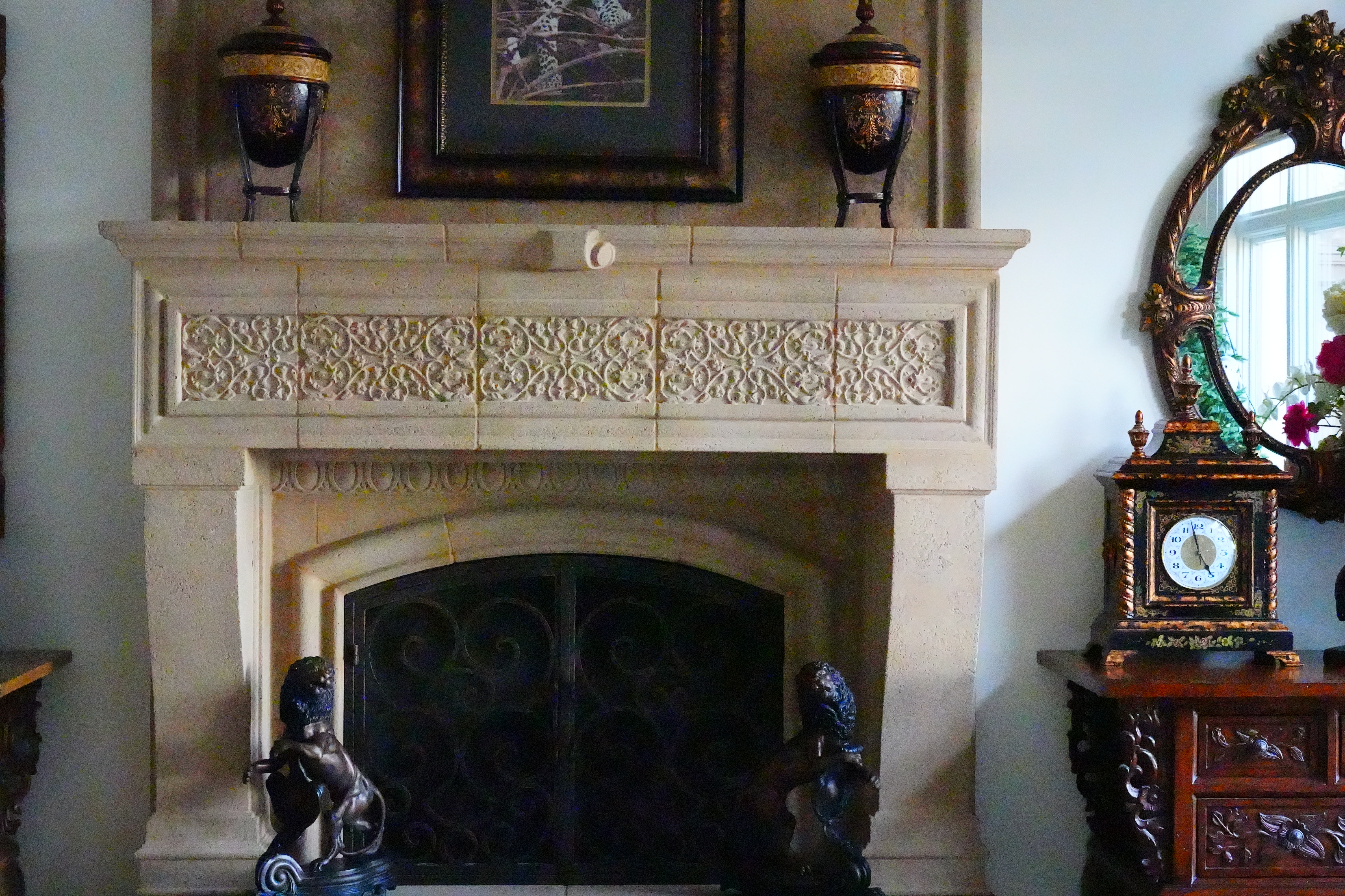 Dark-Area 600 × 450 Pixel Crops (10× magnification) High ISOs details shadow detail performance topHere are different crops from the same images as above, now showing the dark grillwork of the fireplace. Oddly, possibly again owing to the very different sensor architecture, shadow detail remains about the same from ISO 125 (L) to ISO 800, and we can still see the screen at ISO 3,200. The screen is mostly gone at ISO 6,400. The bricks behind the screen are gone at ISO 12,800. The large scrolls are half gone at ISO 25,600, and at ISO 51,200 (H+1) there is more noise and color blotches than subject detail. Again, it's normal in all digital cameras for details to go away at higher ISOs. These are 600 × 450 pixel crops which vary in size to fit your browser window. If these are about 3" (7.5cm) wide on your screen, the complete images would print at 20 × 30" (50 × 75 cm) at this same high magnification. If these are about 6" (15cm) wide on your screen, the complete images would print at 40 × 60" (1 × 1.5 meters) at this same extreme magnification. If these are about 12" (30cm) wide on your screen, the complete images would print at 80 × 120" (2 × 3 meters) at this same insanely high magnification. Click any for the camera-original © LARGE JPG LIGHT files: Click any for the camera-original © JPG files (about 4.5 MB each).