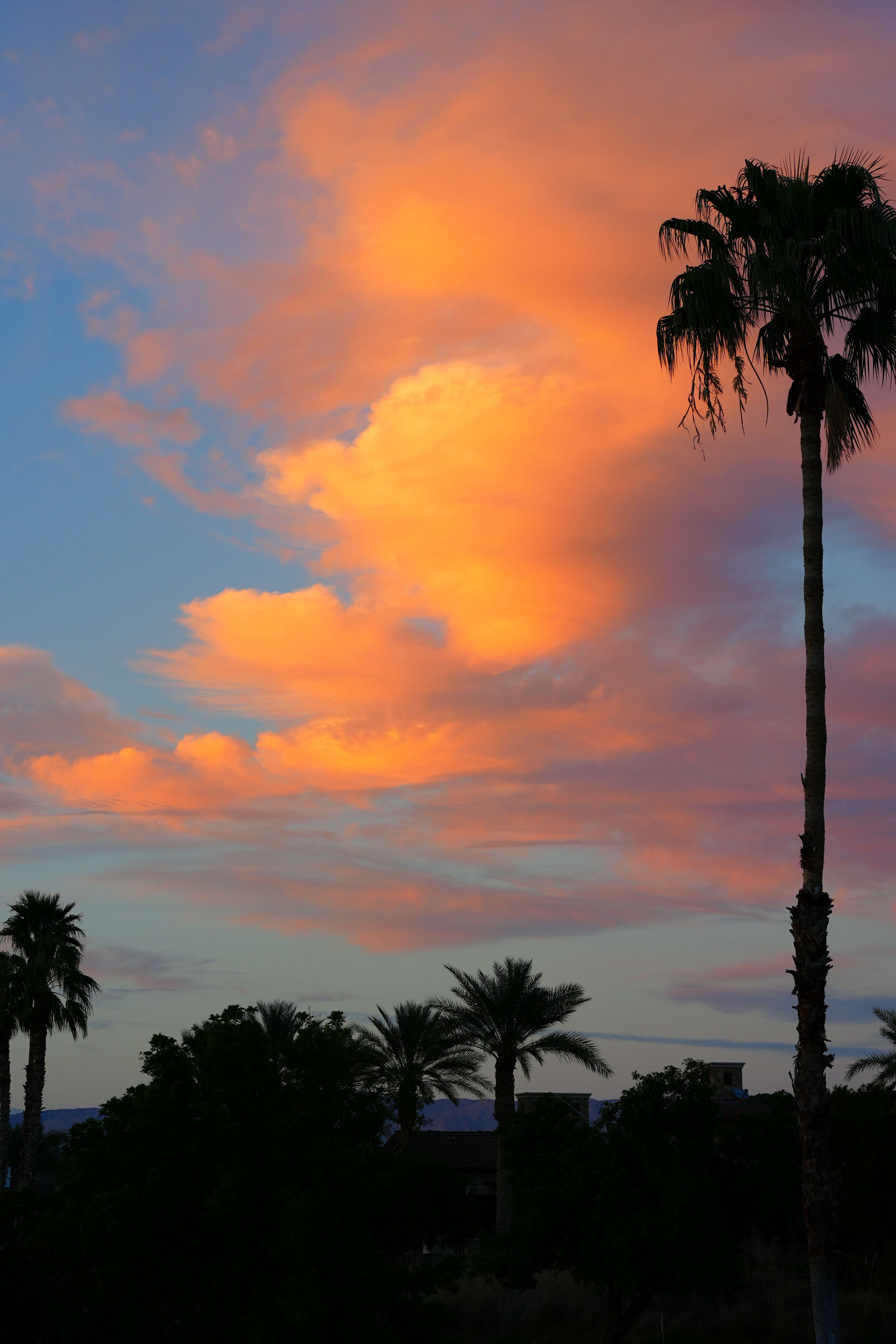 Desert Sunset, La Quinta, California, 5:38 PM, Friday, 23 February 2024. Sony A9 Mk III VIVID image with +9 Saturation, Sony FE 70-200mm f/4 G OSS MACRO II at 79mm at f/5 at 1/125 at Auto ISO 250 (LV 10.3), Radiant Photo and Skylum Luminar Neo software. bigger or camera-original © file.