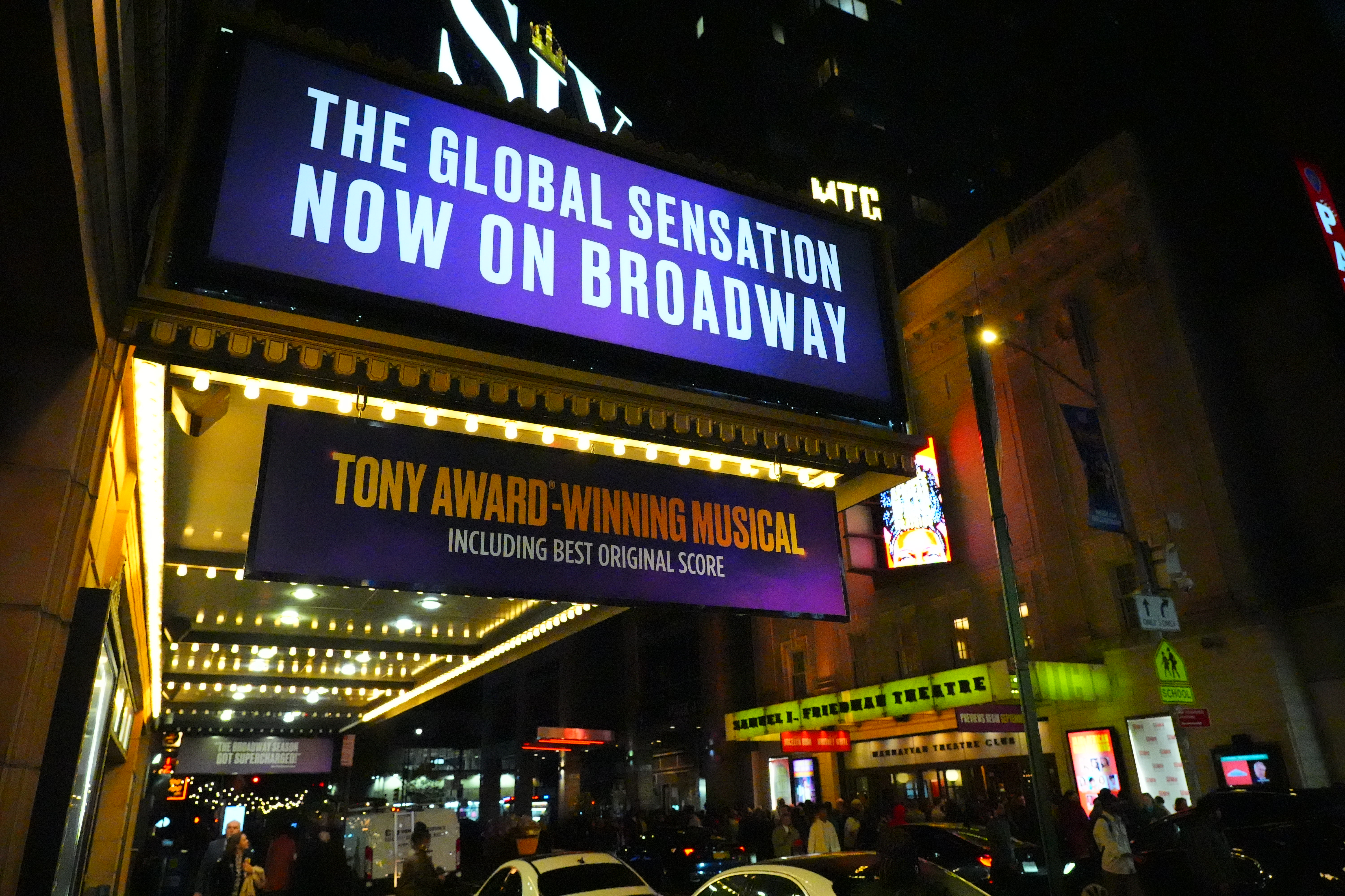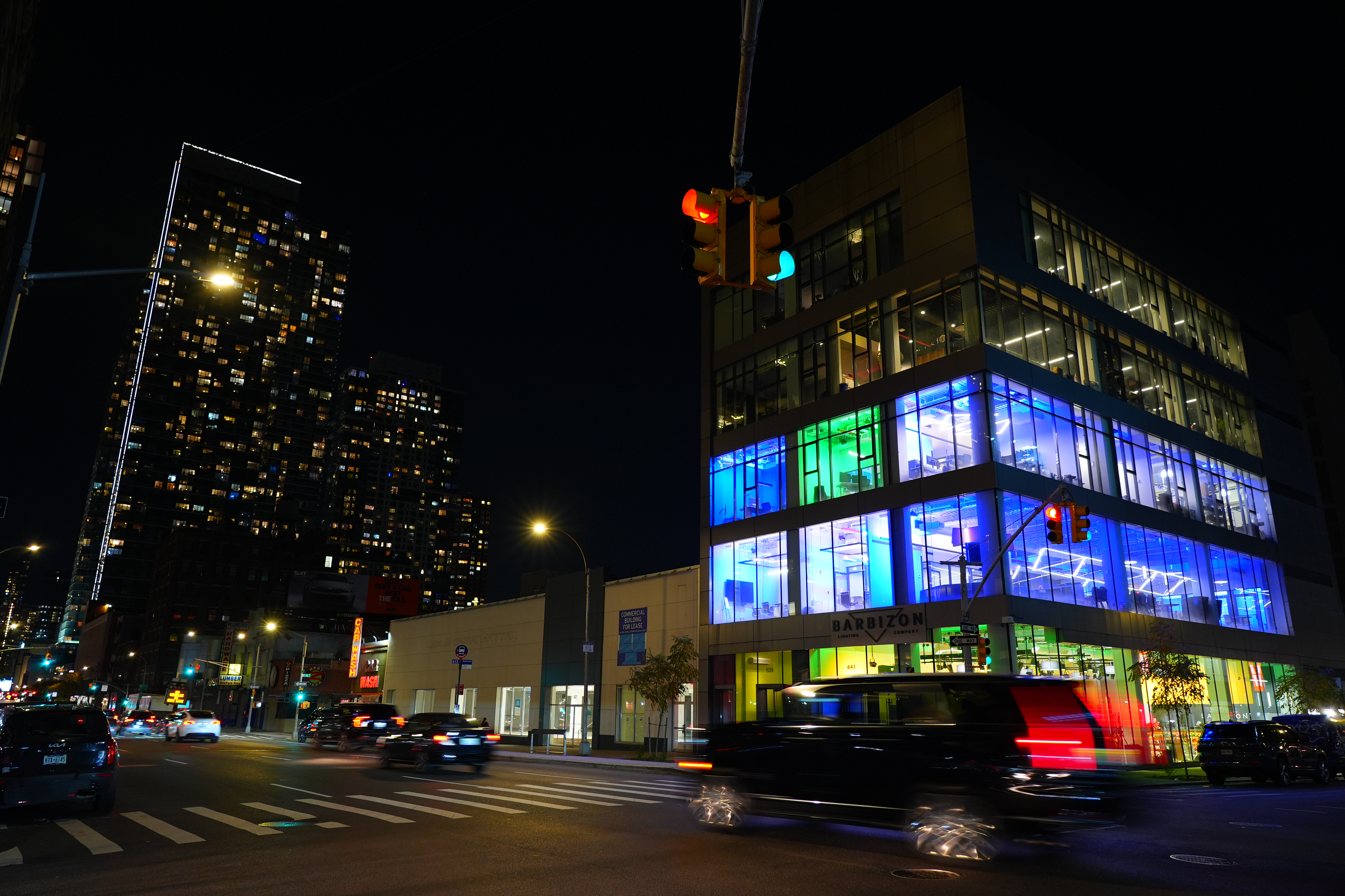 11th Avenue Looking South from 46th Street, Manhattan, 9:03 PM, Tuesday, 07 November 2023. Sony A9 Mk III at +9 Saturation, Sony FE 24-105mm f4 G OSS at 24mm at f/4 at 1/15 hand-held at Auto ISO 1,000, -0.7 stops exposure compensation (LV 4.6), Perfectly Clear (now sold as Radiant Photo), perspective correction in Photoshop CS6 (from 2012) (I don't need no stinking perspective-control lenses). bigger or camera-original © file. Introduction topSample Images Intro New Good Bad Missing