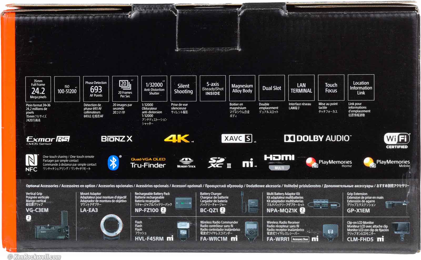 RecommendationsTop Sample Images Intro Lenses & Adapters Specifications Accessories USA Version The Sony A9 is an obvious pick — possibly the pick — for sports, news and action. Nothing is as fast, it has an AF system to match, and it's also silent. Sony is out to kill Nikon and Canon, and this certainly helps, at only 2/3 the price of the competitive DSLRs. If all you need is silent but can make do with only 5 FPS, the A7S II and A7R II do much of what the A9 does, but with only one card slot and minus the Advance and Focus mode dials. Any of these three is great for corporate events, concerts, surveillance and meetings. Be sure to have the right lenses if you want the best high-speed autofocus performance. People love these Sonys because you can adapt any old lens to them, but I see no intelligence in adapting a $10 Pentax 50mm SMC lens to this camera, much less using other lenses on adapters, if I want the high-speed performance for which I bought my A9. I use hot SD cards, but even old slow cards work fine in my A9; it just may take a while to clear the buffer if you're shooting large files or at 20 FPS. The A9 is a new chapter in photography: super-fast, and now completely silent. I got mine at B&H. I'd also get it at Adorama, at Amazon, or at Crutchfield. This all-content, junk-free website's biggest source of support is when you use those or any of these links to approved sources when you get anything, regardless of the country in which you live. Sony does not seal its boxes in any way, so never buy at retail or any other source not on my personally approved list since you'll have no way of knowing if you're missing accessories, getting a defective, damaged, returned, store demo or used camera. I use the stores I do because they ship from secure remote warehouses where no one gets to touch your new camera before you do. Buy only from the approved sources I use myself for the best prices, service, return policies and selection. Thanks for helping me help you! Ken, Mrs. Rockwell, Ryan and Katie.