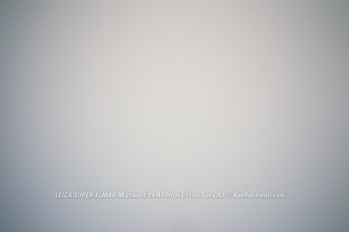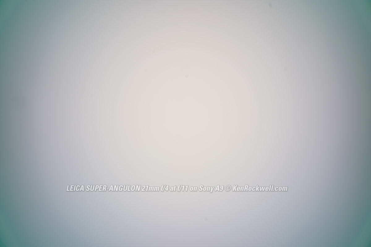 Shot with a real Sony 16-35/2.8 GM lens at 21mm and f/3.2, sharp corner-to-corner. bigger or camera-original © file. Enlarge the camera-original © file and you'll see that everything is ultra-sharp. It's not that the LEICA lens isn't this sharp; it's just that its field curvature (or rear nodal point location) isn't optimized to the Sony cameras as Sony's lenses are. Also you'll see that there is much less corner darkening with this real Sony GM lens instead of the LEICA lenses, since the A9 has lens correction data for it. Corner color shifts with adapted rangefinder ultrawide lenses isn't as bad as seen on other cameras: Color shifts with modern LEICA SUPER-ELMAR-M 21mm f/3.4 ASPH. bigger.