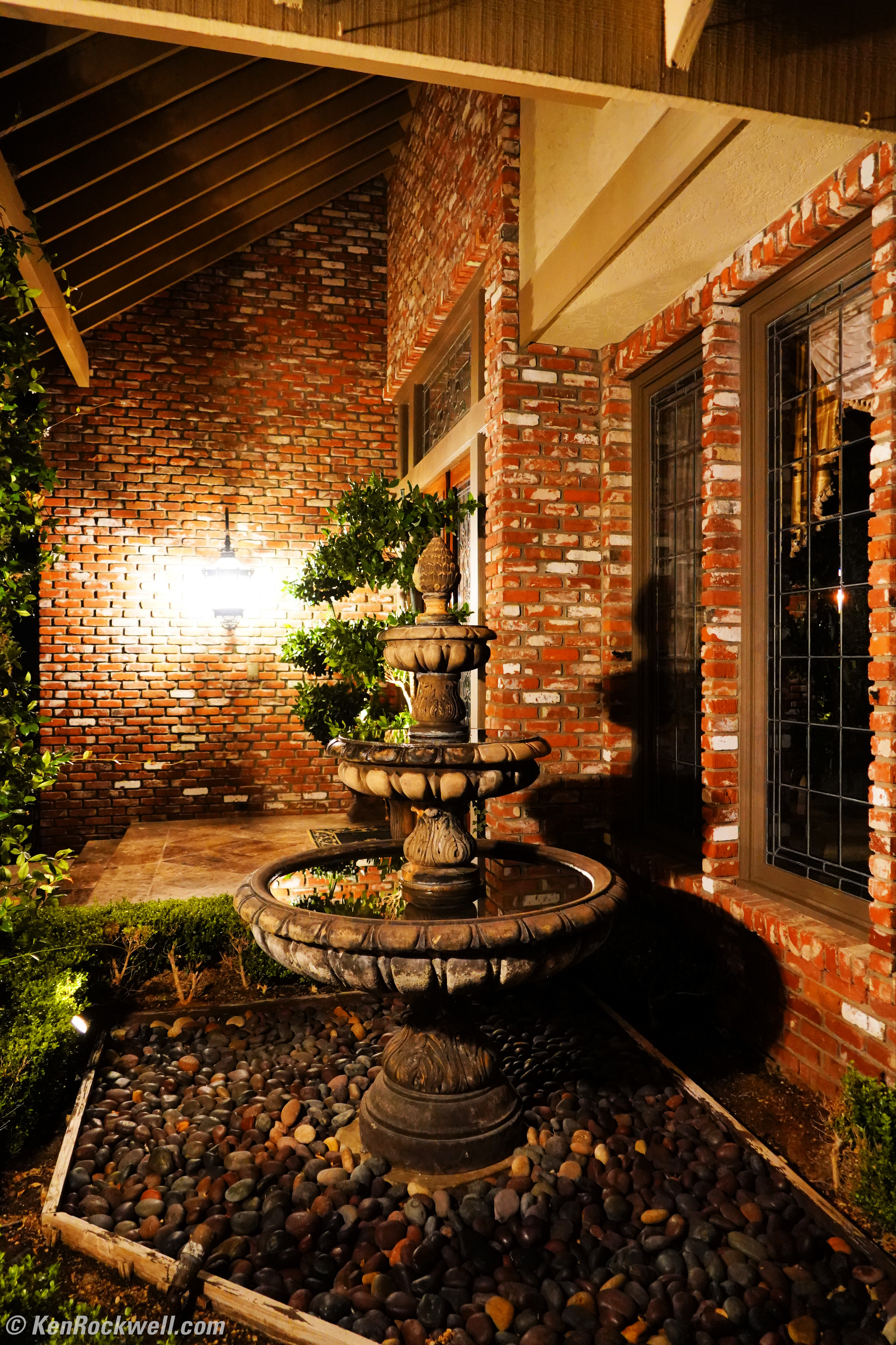 ISO 6,400Fountain, 28 July 2017. Sony A9, Sony 24-240mm at 24mm wide-open at f/3.5 hand-held at 1/15 at Auto ISO 6,400, Perfectly Clear. bigger or full-resolution file.