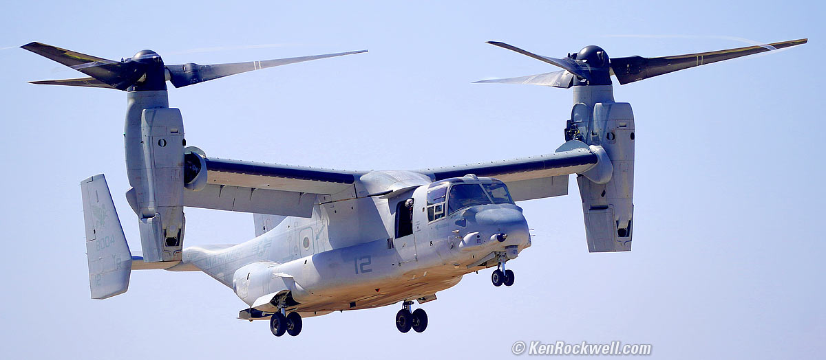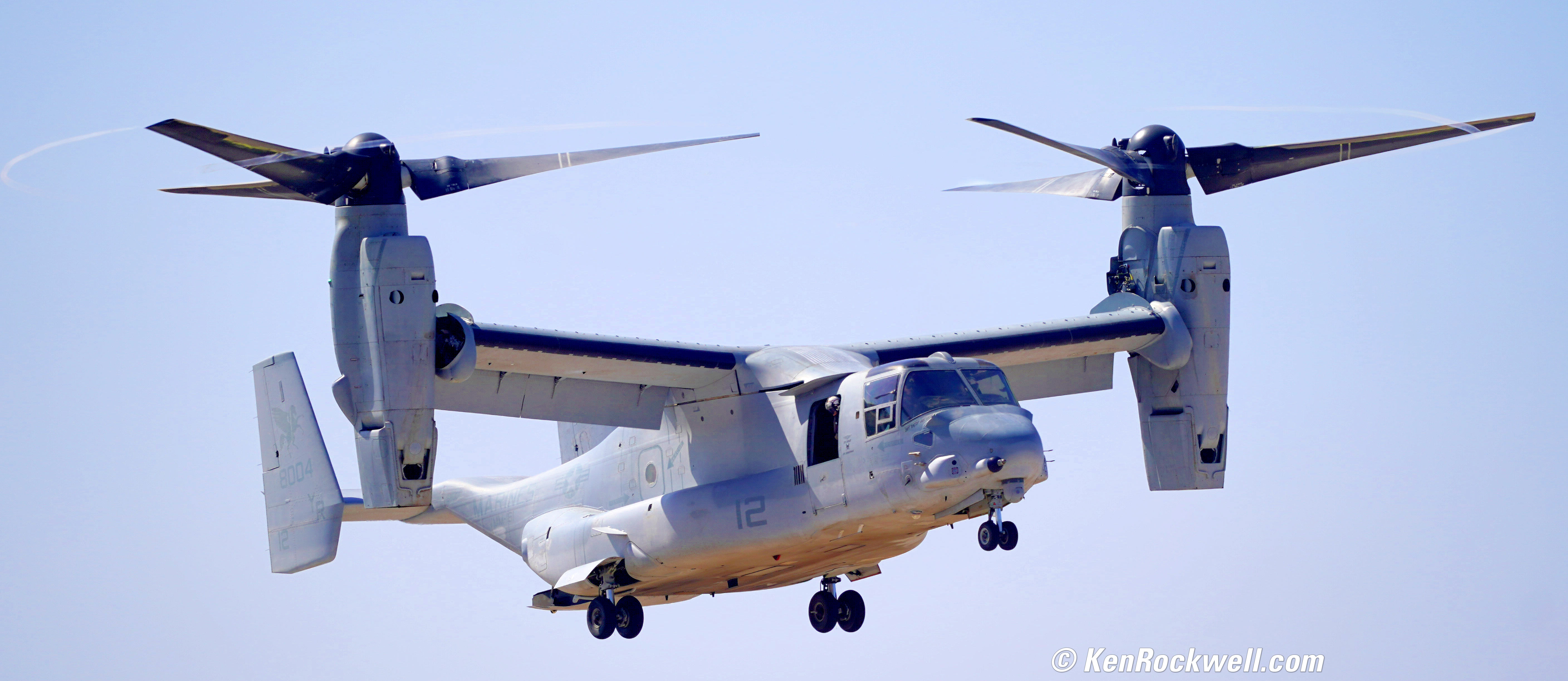 USMC V-22 Osprey, Miramar Air Show, 28 September 2018. Sony A9, Sony 400/2.8 on Wimberley WH-200, f/2.8 at 1/4,000 at ISO 100. bigger or full-resolution.