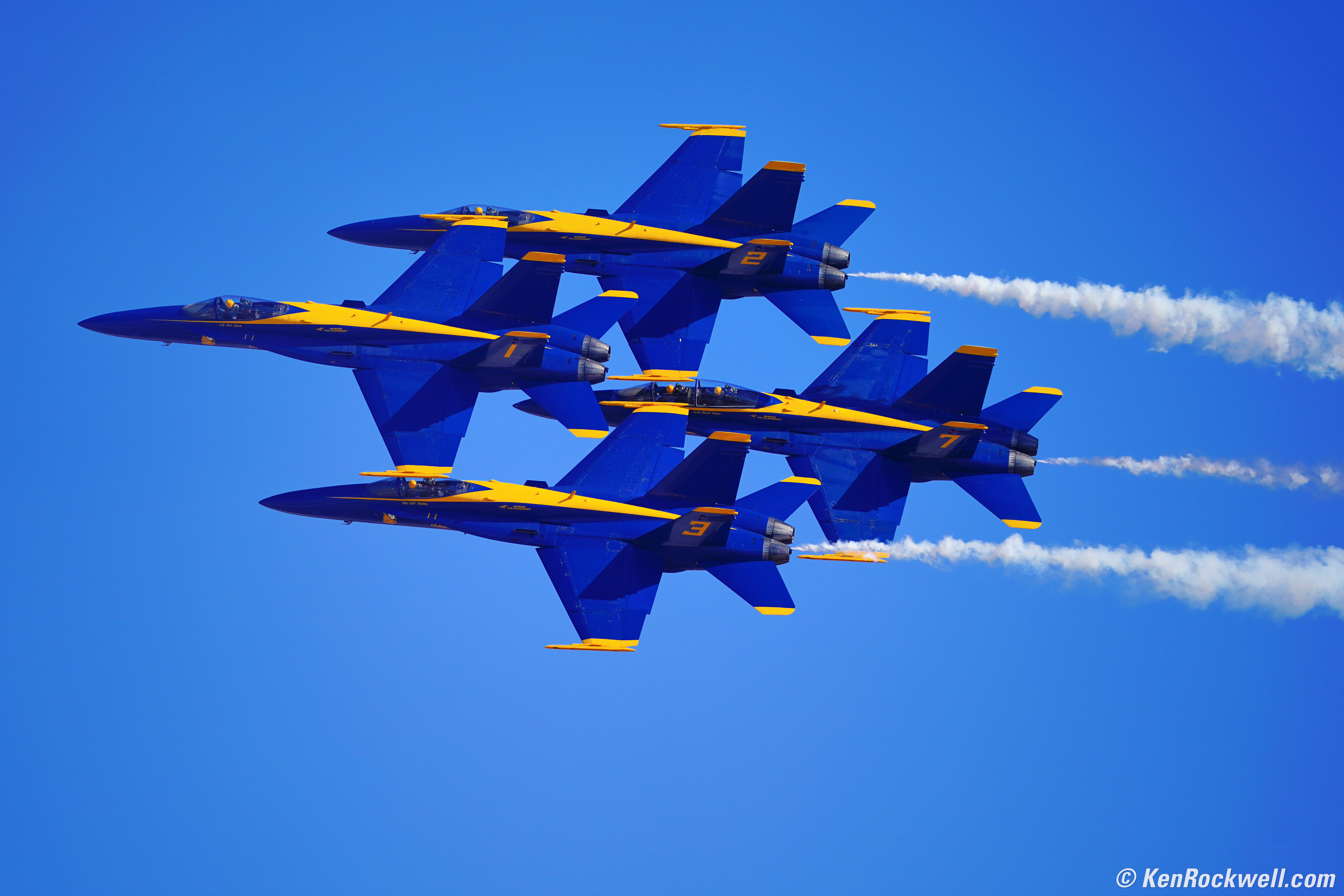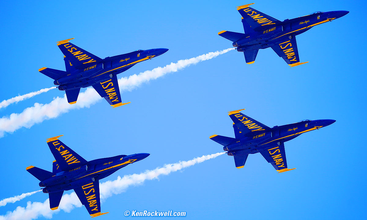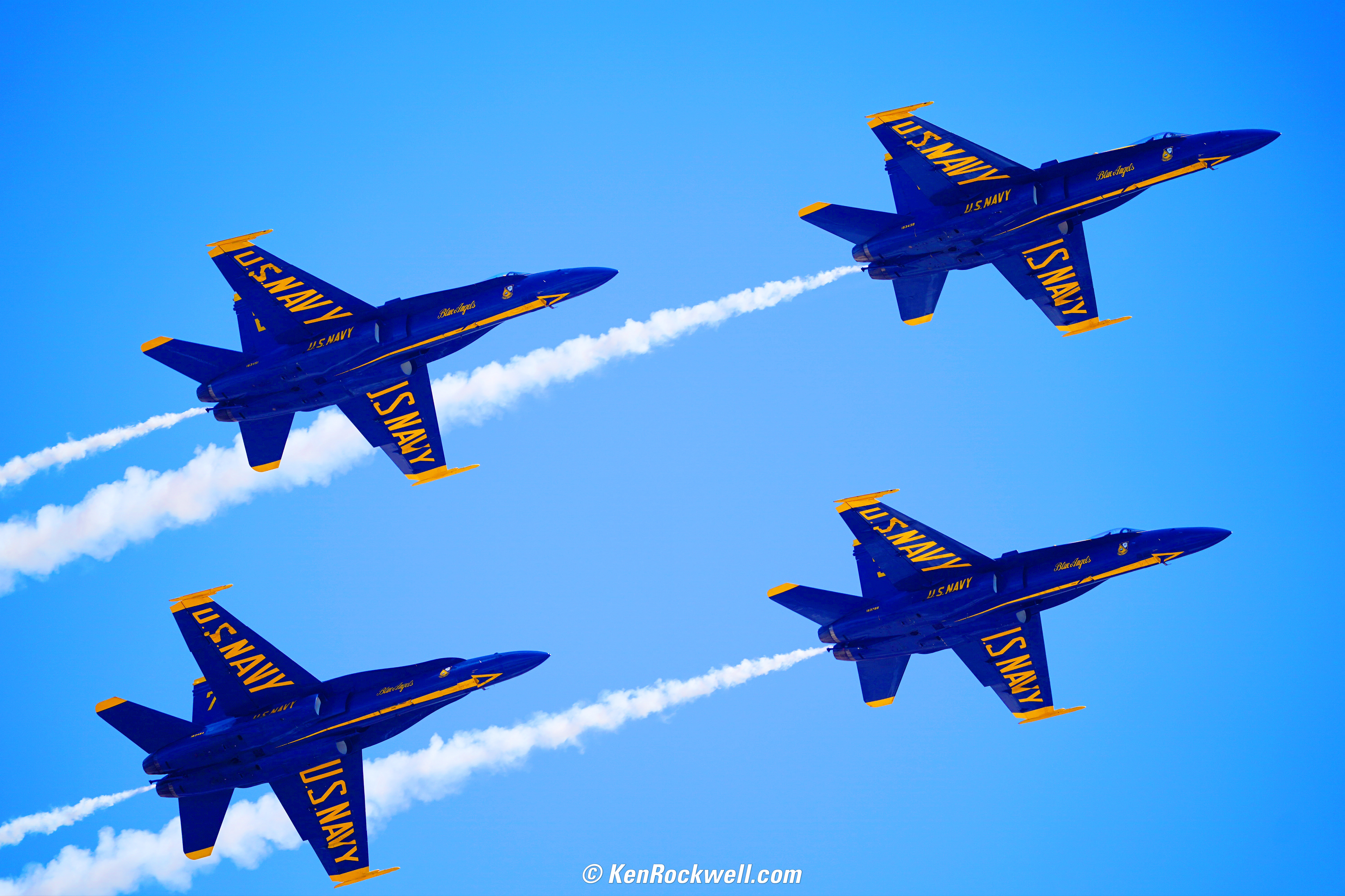 The Blue Angels, Miramar Air Show, 28 September 2018. Sony A9, Sony 400/2.8 on Wimberley WH-200, f/2.8 at 1/2,500 at ISO 100. bigger or full-resolution. Standard shot, made trivially easy with the Wimberley WH-200 to hold my A9 and 400/2.8.
