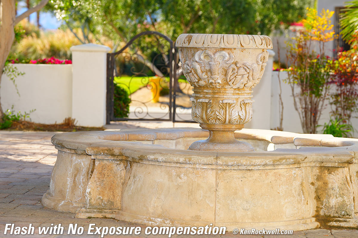 The Sony HVL-F60RM2 is a modern medium-to-large on-camera flash dedicated to Sony's cameras. It's a great flash to use all the time for greatly improved photos in every kind of light, especially in daylight as shown above. Lighting is more important to making better photos than your choice of camera or lens, and flash is a major way to make a huge improvement in your lighting. Flash is all about improving the quality, not quantity of light. We don't use flash today because it's dark; we use flash to fill-in shadows selectively, which higher ISOs can't do. On-camera fill-flash is critical to good people photos, and as you see above, I use it for photos of just about everything. It adds far more details to shadows than any software-based post processing or modern wide-dynamic range sensors can. The concept behind fill flash is so simple most people never realize it. Imagine a subject in direct sunlight. Let's call that 100 units of light. The shadows are typically 2 stops darker, or have only 25% as much light, so let's say 25 units of light in the shadows. Let's use an on-camera flash to add 12½ units of light to every part of the scene. It adds only a slight amount of light (12%) proportionally to the sunlit portions (100 + 12½ = 112½ units of light), but adds a relatively huge 50% of additional lighting to the shadows (bringing them from 25 units to 37½ units of light). This why fill-flash has been a professional secret for over 100 years: it selectively adds more light, detail and color to the shadows while not blowing out the highlights. I'd get my HVL-F60RM2 at Adorama, at Amazon, at B&H or at Crutchfield, or used at eBay if you know How to Win at eBay.