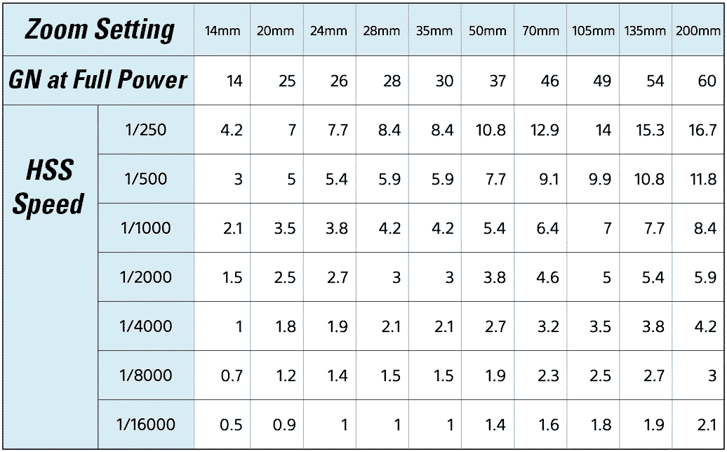 Power specifications topRated Guide Numbers (in meters) at ISO 100.