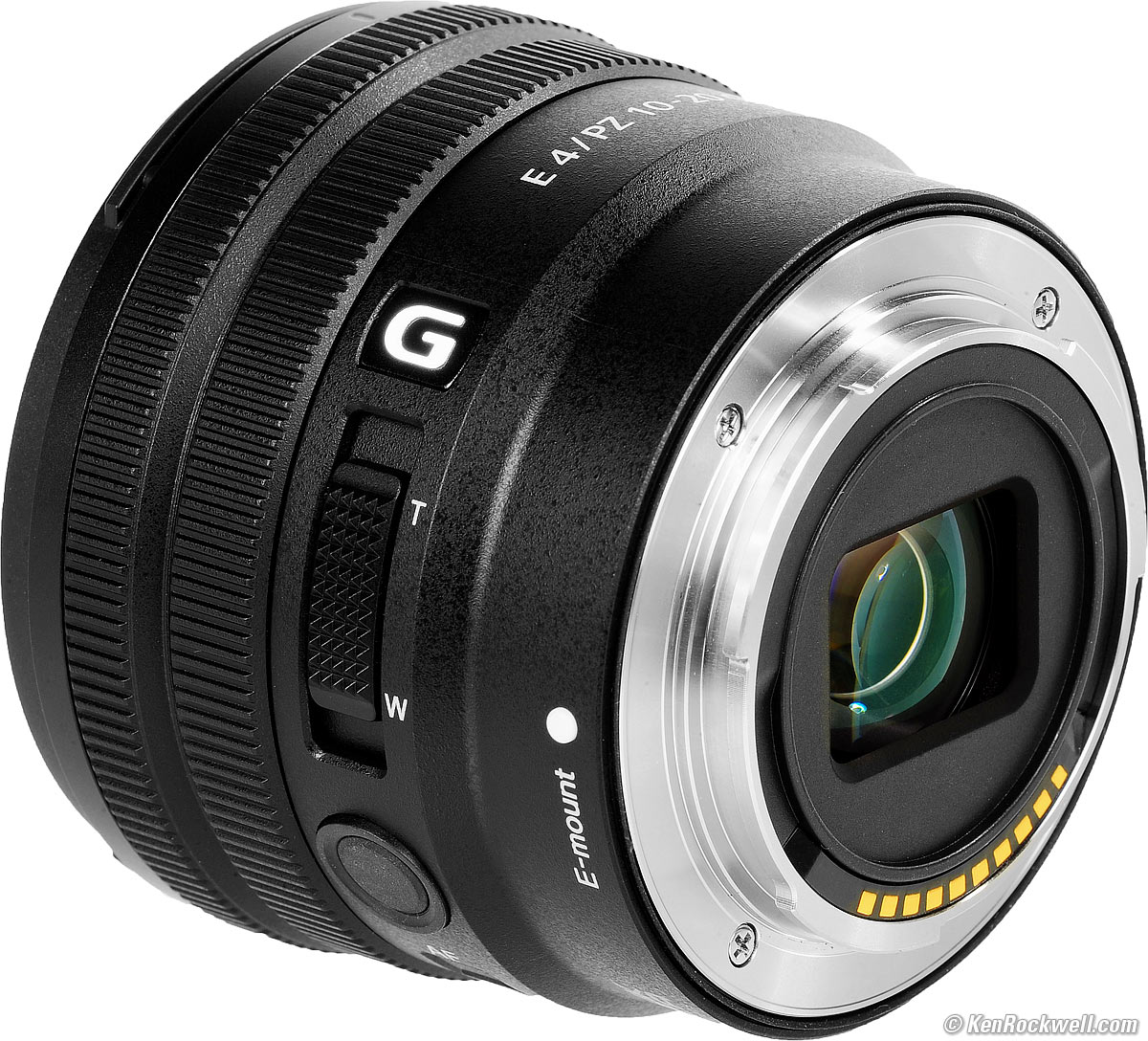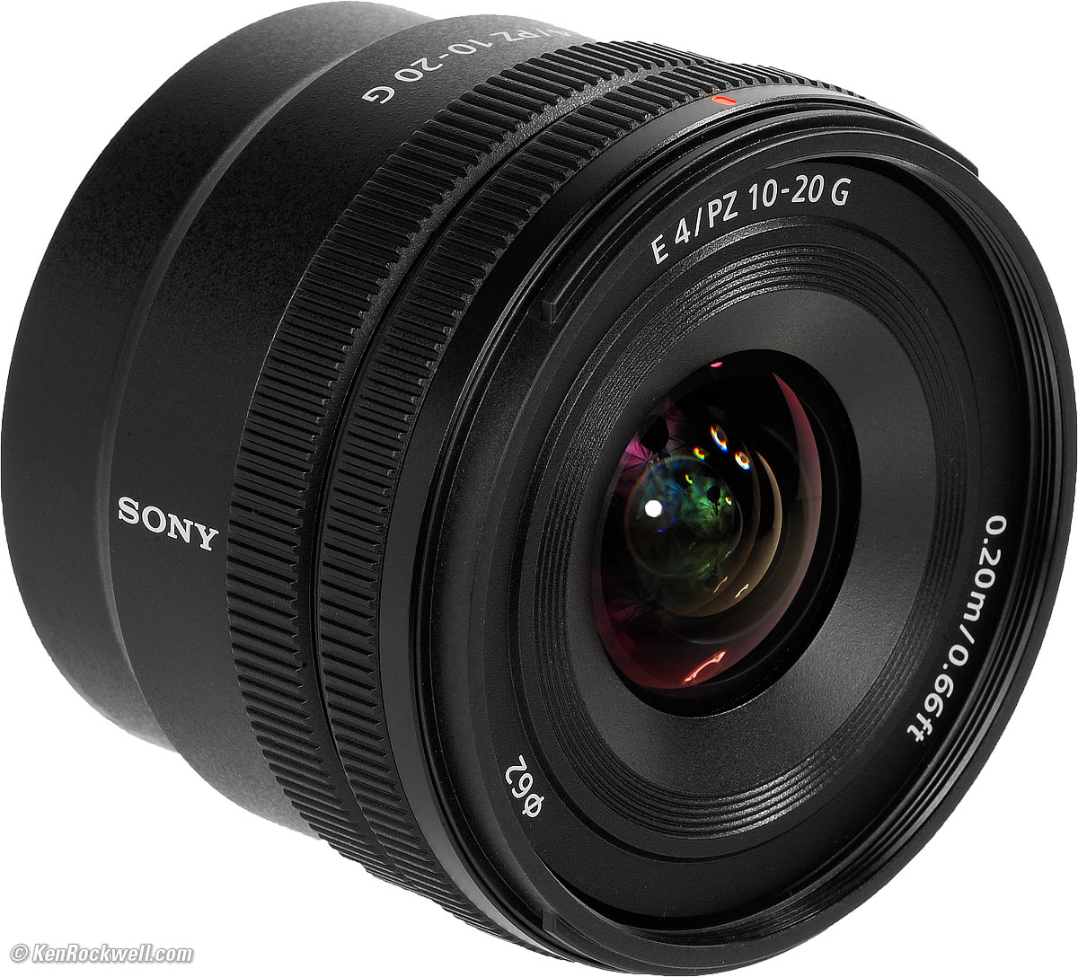 Name specifications topSony calls this the Sony E 10-20mm f/4 G PZ:E: Full-frame coverage, E-mount. G: "Good," meaning Sony's nearly best, but not quite as physically tough and good as Sony's GM "Good Master" lenses. PZ: Power Zoom. There is an electronic motor which zooms the lens, making smooth zooms easy for video. Sony's model number: SELP1020G.