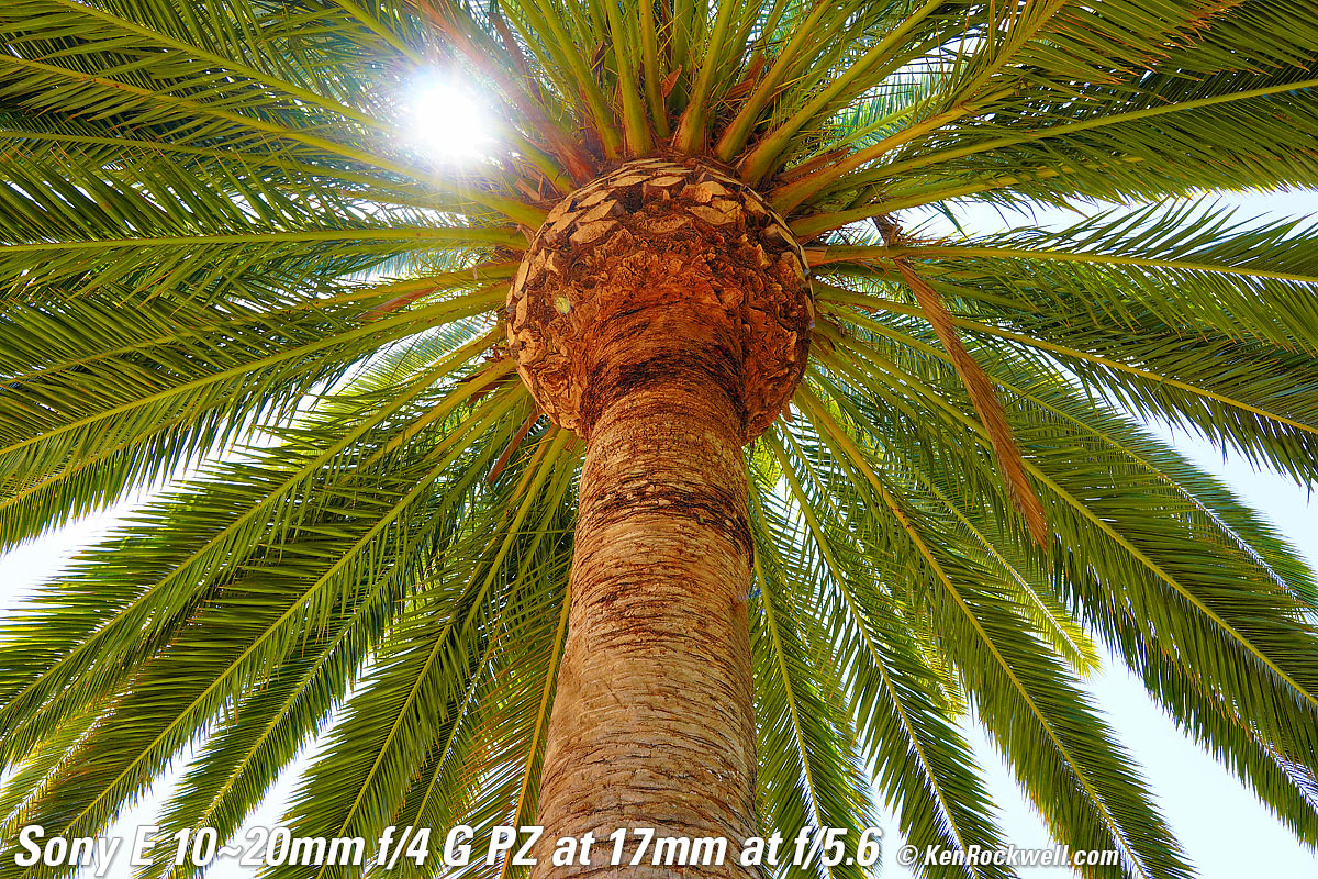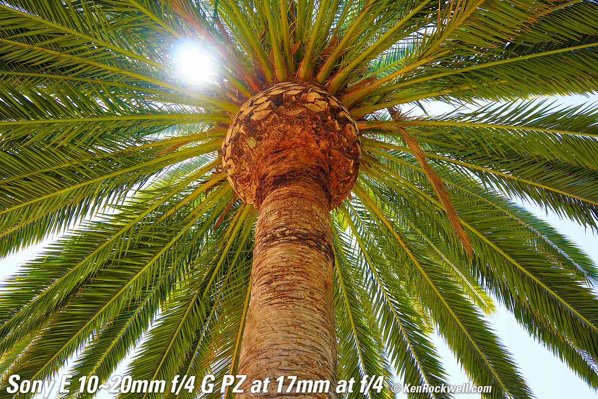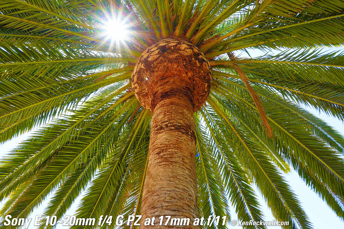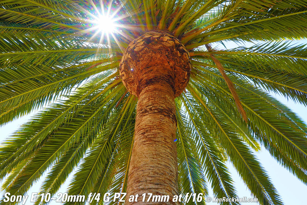Recommendations topSample Images Intro New Good Bad Missing Compatibility Specifications Performance I'd get mine at B&H or at Adorama, or eventually used at eBay if you know How to Win at eBay. This is a tough little gem. It's great for stills, but its power zoom is best for video use. I prefer the direct mechanical zoom of the older 10-18mm, and I also prefer the stabilization in the 10-18mm — but the 10-18mm is very flimsy compared to this tougher 10-20mm f/4 G. Don't use this APS-C lens on full-frame cameras, which will crop their sensors and throw away half of the resolution. Instead use the FE 16-35mm f/4G PZ on full-frame to make the best use of your full-frame sensor. I use a clear (UV) protective filter instead of a cap so I'm always ready to shoot instantly. I only use a cap when I throw this in a bag with other gear without padding — which is never. The UV filter never gets in the way, and never gets lost, either. The very best protective filter is the Hoya multicoated HD3 62mm UV which uses hardened glass and repels dirt and fingerprints. For less money, the B+W 62mm 010 is an excellent filter, as are the multicoated version and the basic multicoated Hoya filters, but the Hoya HD3 is the toughest and the best. Nikon's 62mm NC (No Color) protective filter is also superb. Filters last forever, so you may as well get the best today. The Hoya HD3 stays cleaner than the others since it repels oil and dirt. I use my classic Nikon 62mm L37c (multicoated 370 nanometer UV) filters because I bought them back in the 1980s when they were the best, and they never wear out. All these filters are just as sharp and take the same pictures. The difference is how much abuse they'll take and stay clean and stay in one piece. Since filters last a lifetime or more, there's no reason not to buy the best as it will last you for the next 40 years. Filters aren't throwaways like digital cameras or this plastic lens which we replace every few years, like it or not. I'm still using filters I bought back in the 1970s! I'd get mine at B&H or at Adorama, or eventually used at eBay if you know How to Win at eBay. This 100% all-content, junk-free website's biggest source of support is when you use those or any of these links to my personally approved sources I've used myself for way over 100 combined years when you get anything, regardless of the country in which you live — but I receive nothing for my efforts if you get it elsewhere. Sony does not seal its boxes in any way, so never buy at retail or any other source not on my personally approved list since you'll have no way of knowing if you're missing accessories, getting a defective, damaged, returned, dropped, incomplete, gray-market, store demo or used lens — and all of my personally approved sources allow for 100% cash-back returns for at least 30 days if you don't love your new lens. I've used many of these sources since the 1970s because I can try it in my own hands and return it if I don't love it, and because they ship from secure remote warehouses where no one gets to touch your new lens before you do. Buy only from the approved sources I've used myself for decades for the best prices, service, return policies and selection. Thanks for helping me help you! Ken.