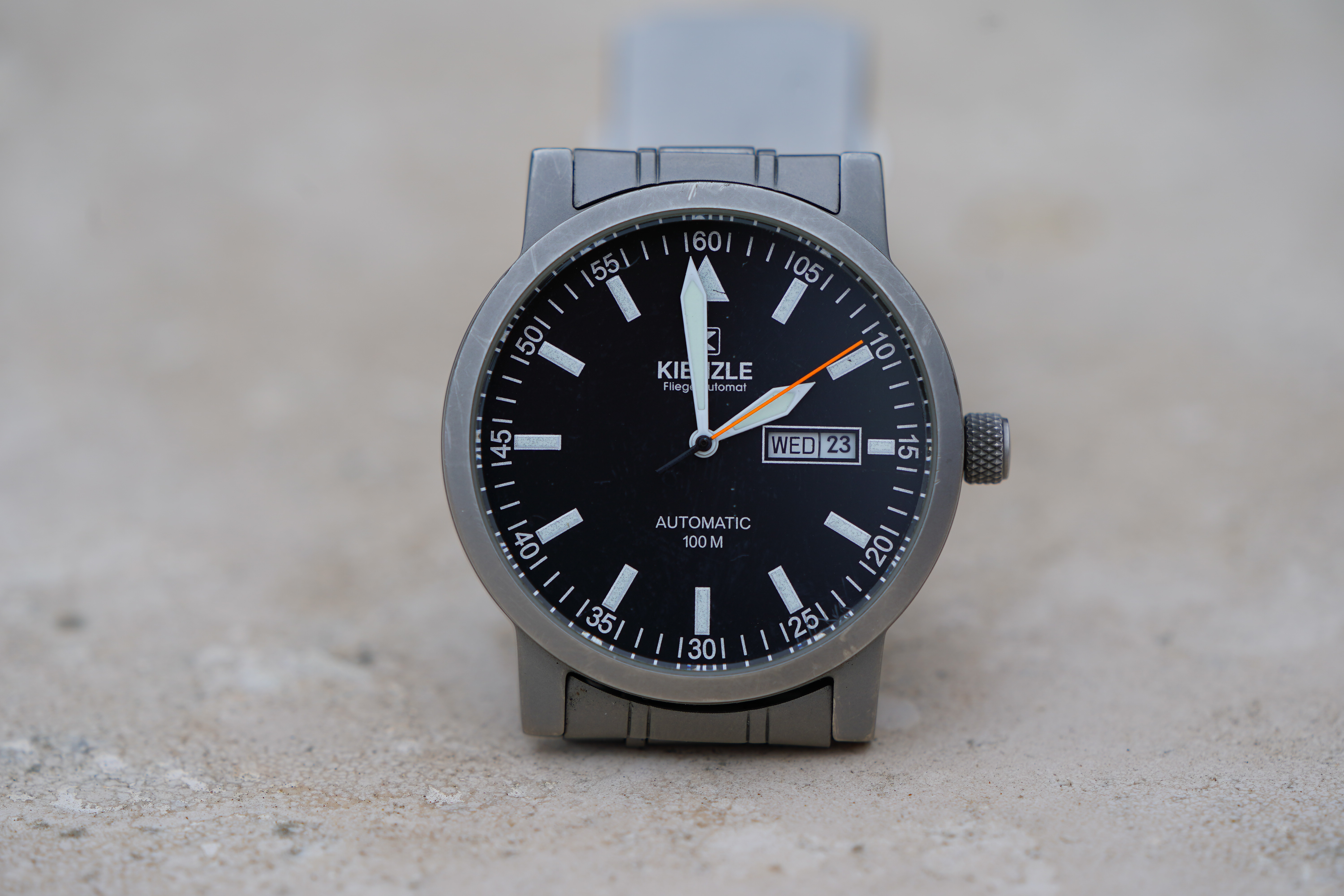 MacroMacro performance is superb. It gets super close and is super-sharp. For most uses it replaces any need for a separate macro lens: Kienzle Flieger Automat 800/2843, 23 August 2017. Sony A9, Sony 100-400mm f/4.5-5.6 GM at 400mm at close focus distance wide-open at f/5.6 at 1/500 at Auto ISO 100. bigger or camera-original © file.