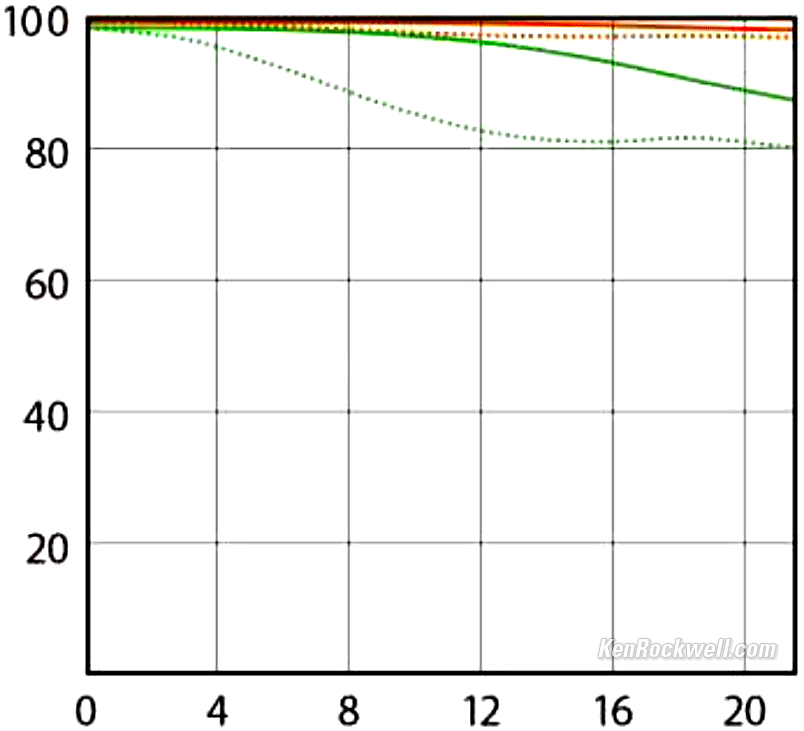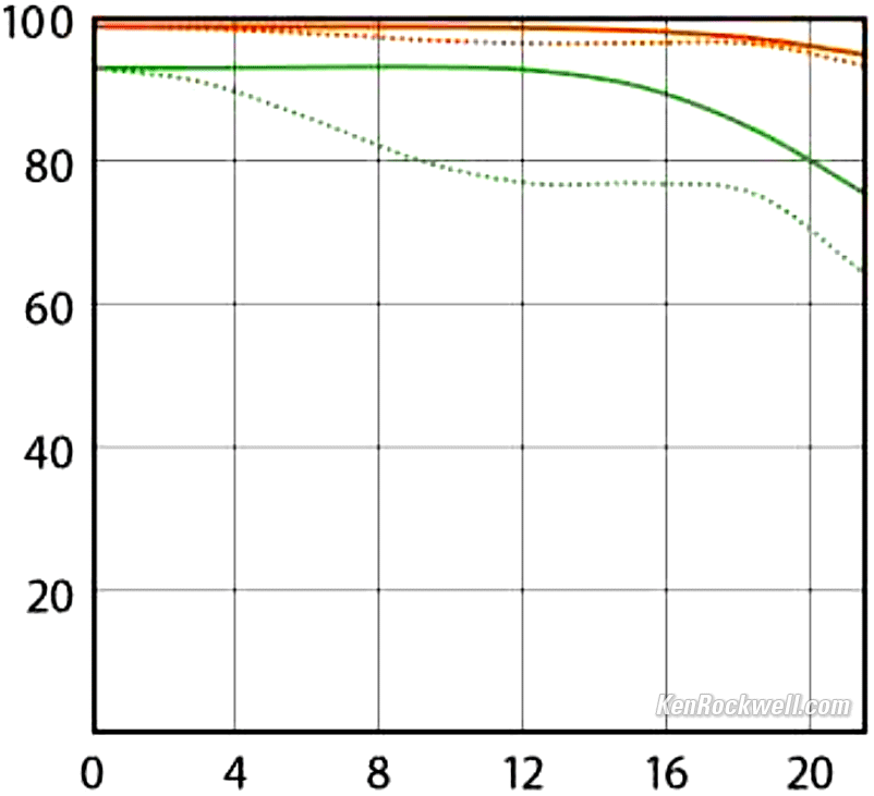 SharpnessIt's flawlessly sharp and contrasty from corner-to-corner at every aperture. The only limitation to picture sharpness will be your skill as a photographer.. Here are Sony's MTF charts at 10 cyc/mm and 30 cyc/mm, radial (solid) and tangential (dotted), which tell the same story: