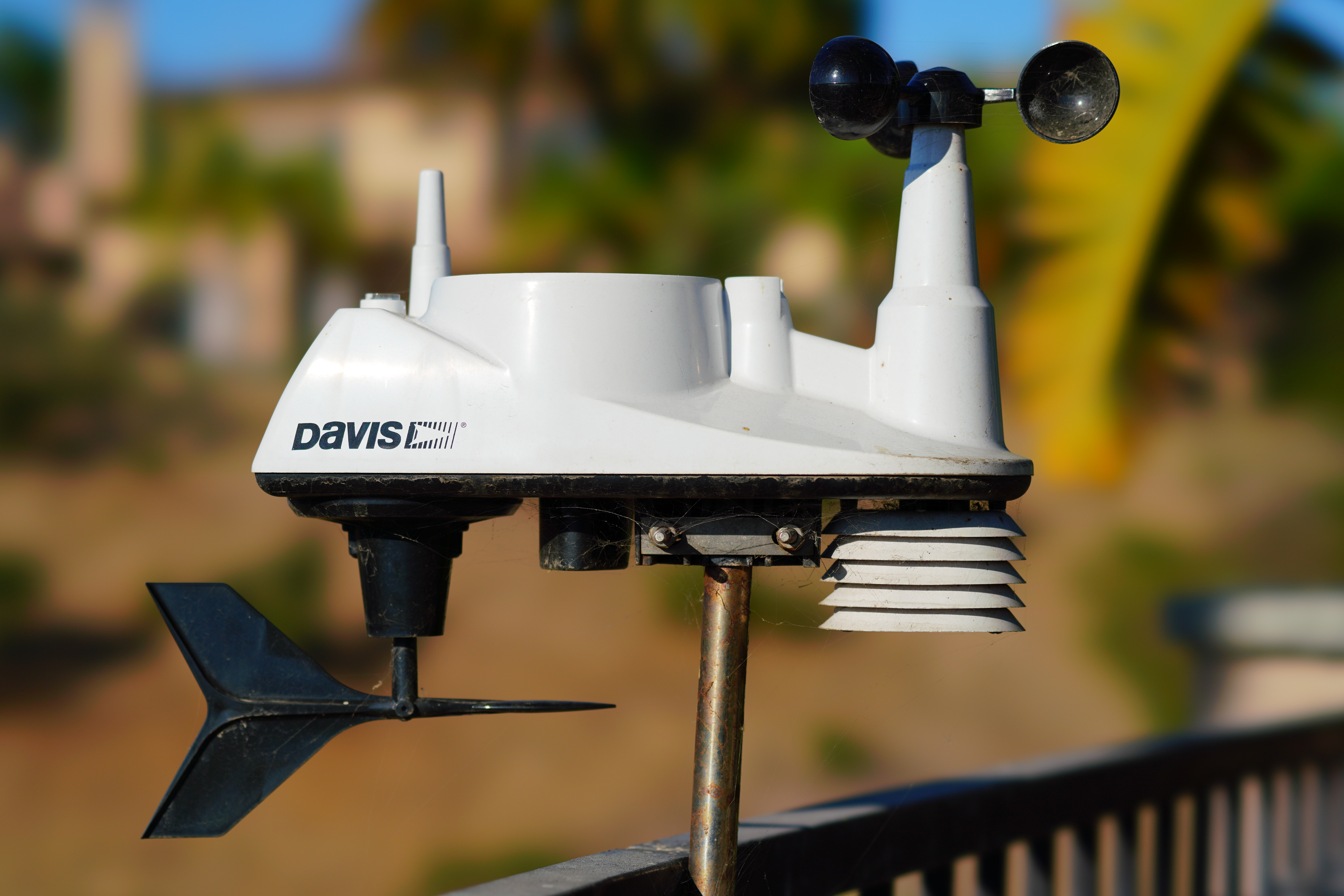 BokehBokeh, the feel or quality of out-of-focus areas as opposed to how far out of focus they are, is extraordinary, the whole point of this lens. Nothing distracts: Davis 6250 weather station, 8:55 AM, 19 December 2017. bigger or camera-original © file to explore on your computer (mobile devices rarely display full resolution images properly). What makes this so special is how there are no hard edges to anything in the background; it's all melted away. With most lenses even out of focus areas tend to have slight edges to them, but with the dark-edged filter near the diaphragm these slight edges are gone. As always, if you want to throw the background as far out of focus as possible, shoot wide open and get as close as possible.