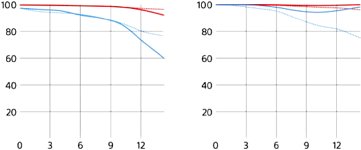 Sharpness performance topLens sharpness has nothing to do with picture sharpness; every lens made in the past 100 years is more than sharp enough to make super-sharp pictures if you know what you're doing. The only limitation to picture sharpness is your skill as a photographer. It's the least talented who spend the most time worrying about lens sharpness and blame crummy pictures on their equipment rather than themselves. Skilled photographers make great images with whatever camera is in their hands; I've made some of my best images of all time with an irreparably broken camera! Most pixels are thrown away before you see them, but camera makers don't want you to know that. If you're not getting ultra-sharp pictures with this, be sure not to shoot at f/11 or smaller where all lenses are softer due to diffraction, always shoot at ISO 100 or below because cameras become softer at ISO 200 and above, avoid shooting across long distances over land which can lead to atmospheric heat shimmer, be sure everything is in perfect focus, set your camera's sharpening as you want it (I set mine to the maximum) and be sure nothing is moving, either camera or subject. If you want to ensure a soft image with any lens, shoot at f/16 or smaller at ISO 1,600 or above at default sharpening in daylight of subjects at differing distances in the same image. People worry waaaaay too much about lens sharpness. It's not 1968 anymore when lenses often weren't that sharp and there could be significant differences among them; ever since about 2010 all new lenses are all pretty much equally fantastic. This lens is very sharp corner-to corner at every aperture, limited of course by diffraction at the very smallest apertures. Sony's MTF charts are fairy-tale calculations from Sony's marketing department ignoring diffraction and flare, and certainly do not represent actual measured performance: MTF at f/1.8 and f/8 at 10 cyc/mm and 30 cyc/mm, radial (solid) and tangential (dotted).