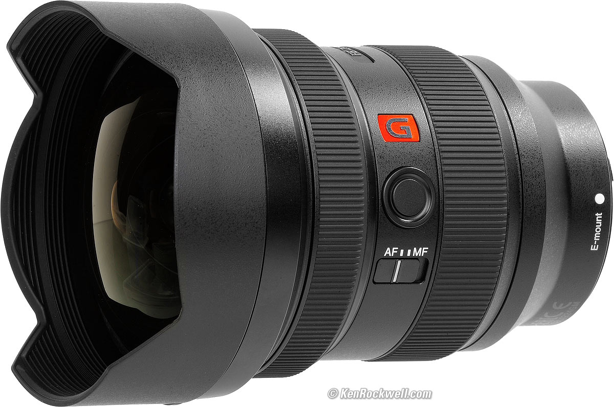 Recommendations topSample Images Intro Compatibility Specifications Performance Compared I'd get my 12-24mm f/2.8 at Adorama, at Amazon, at B&H or at Crutchfield, or eventually used at eBay if you know How to Win at eBay. If you need a 12-24mm, need the rear filter slot, really need f/2.8, appreciate the wildly improved front cap, need fantastic sunstars — or if you simply always demand and deserve the very best — this is your lens. f/2.8 is great for low light, but for most uses, the FE 12-24mm f/4 G is more practical, much less expensive and just as sharp. It's more precise in low light to guess the distance and simply set it with the camera's in-finder numerical readout in Manual Focus as I did in the photos at the top than to try to focus with blurry Live View images in the dark, so I don't find f/2.8 gives me any better low-light focussing. If you have to ask, then no, you don't need this lens. A 12-24mm is a very specialized lens; the 16-35mm f/2.8 is a much more useful focal length range for most people, as well as taking filters and being smaller, lighter and less expensive. 12mm is useless for just about anything other than real estate and special effects. It makes properties, interiors and spaces look much larger than they actually are. For real estate, a 12mm lens is invaluable. 12mm lenses are great for photos of the inside of Grand Central or ornate concert halls (as you'll see in Sony's PR photos), and that's about it. Experience shows us that as lenses become longer or shorter, they become less useful and far more expensive: Most people have no idea How to Use Ultra-Ultrawide Lenses. Be sure you do before you get all excited; few people have any use for lenses this wide; they are the most difficult to use properly. Other than real estate, ultra-ultrawides are for special effects and exaggerating perspective; they are never for "getting it all in." With any 12-24mm lens always be very careful of your front element. Not only can't you protect it with a filter, but any damage to the front element will be far more visible in your pictures with an ultra-ultrawide lens due to their huge depths-of-field. I always walk around with my hand loosely covering the front of the lens. I'd get my 12-24mm f/2.8 at Adorama, at Amazon, at B&H or at Crutchfield, or eventually used at eBay if you know How to Win at eBay. This 100% all-content website's biggest source of support is when you use those or any of these links to approved sources when you get anything, regardless of the country in which you live. Sony does not seal its boxes in any way, so especially with an exotic lens like this never buy at retail or any other source not on my personally approved list since you'll have no way of knowing if you're missing accessories, getting a defective, damaged, returned, non-USA, store demo or used lens. I use the stores I do because they ship from secure remote warehouses where no one gets to touch your new camera before you do. Buy only from the approved sources I use myself for the best prices, service, return policies and selection. Thanks for helping me help you! Ken, Mrs. Rockwell, Ryan and Katie.