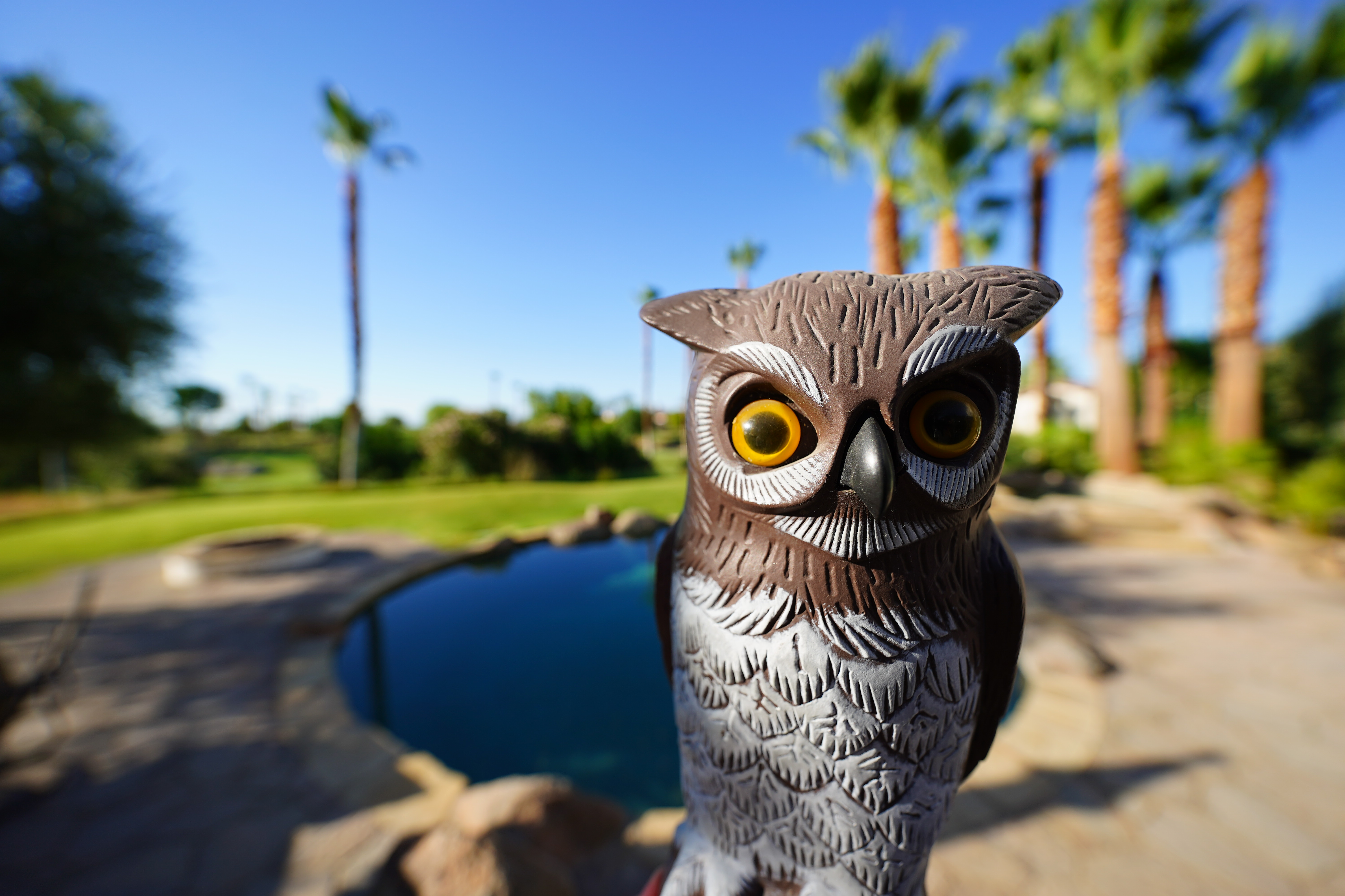 Scarecrow Owl, 23 July 2020. Sony A9 II, Sony FE 12-24mm f/2.8 GM at 24mm at f/2.8 at 1/1,250 at Auto ISO 100 (LV 13¼). bigger or camera-original © file. As always, if you want to throw the background as far out of focus as possible, shoot at 24mm at f/2.8 and get as close as you can.