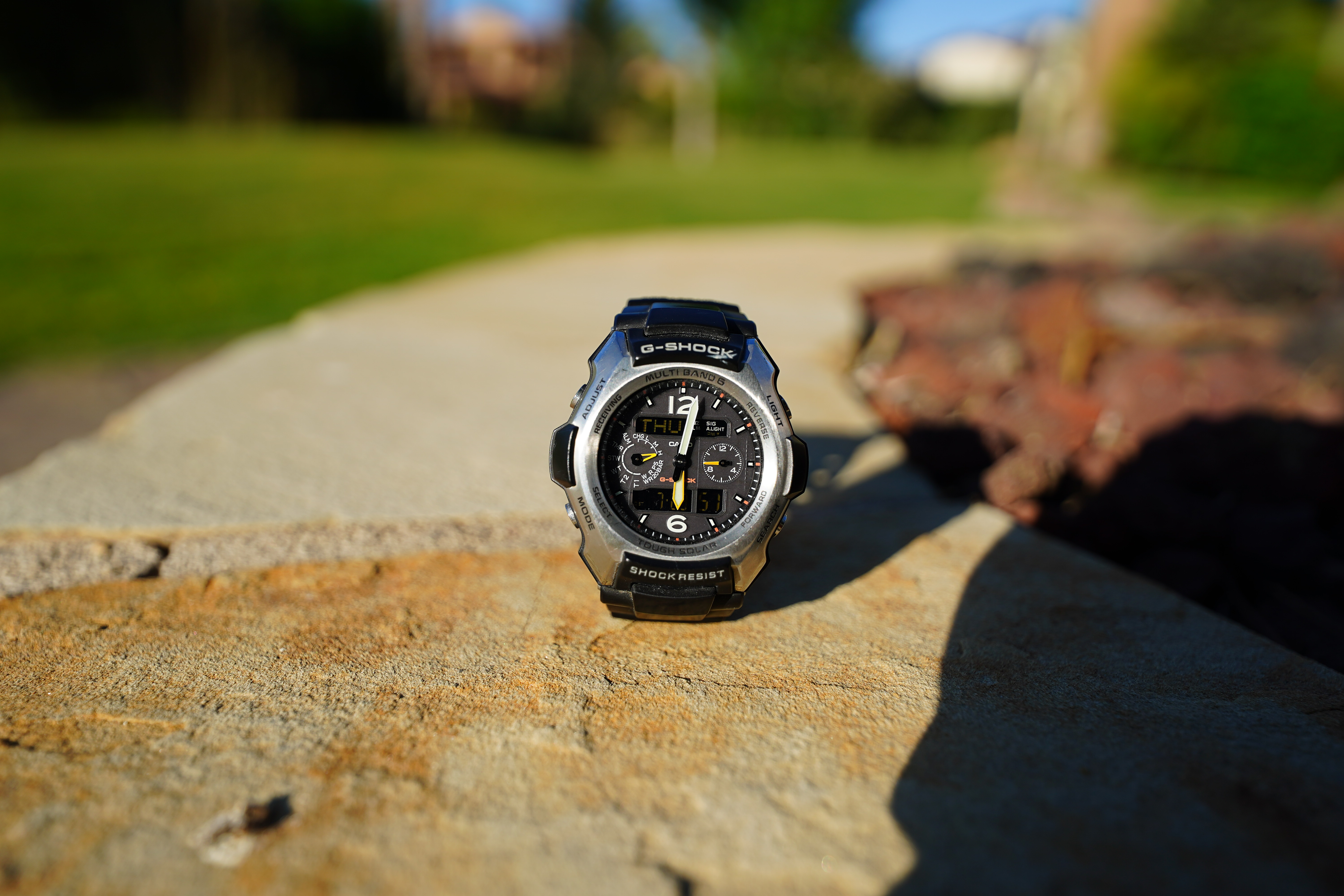 At f/2.8It's plenty sharp at f/2.8: Casio G-Shock Solar Atomic Watch at close-focus distance, 23 July 2020. bigger or camera-original © file. 1,200 × 900 pixel crop from above. bigger or camera-original © file. If this 1,200 × 900 pixel crop is about 3" (7.5cm) wide on your screen, then the complete image printed at this same large magnification would be about 10 × 15" (25 × 38cm). If this 1,200 × 900 pixel crop is about 6" (15cm) wide on your screen, then the complete image printed at this same extreme magnification would be about 20 × 30" (50 × 75cm). If this 1,200 × 900 pixel crop is about 12" (30cm) wide on your screen, then the complete image printed at this same insanely high magnification would be about 40 × 60" (1 × 1.5 meters).