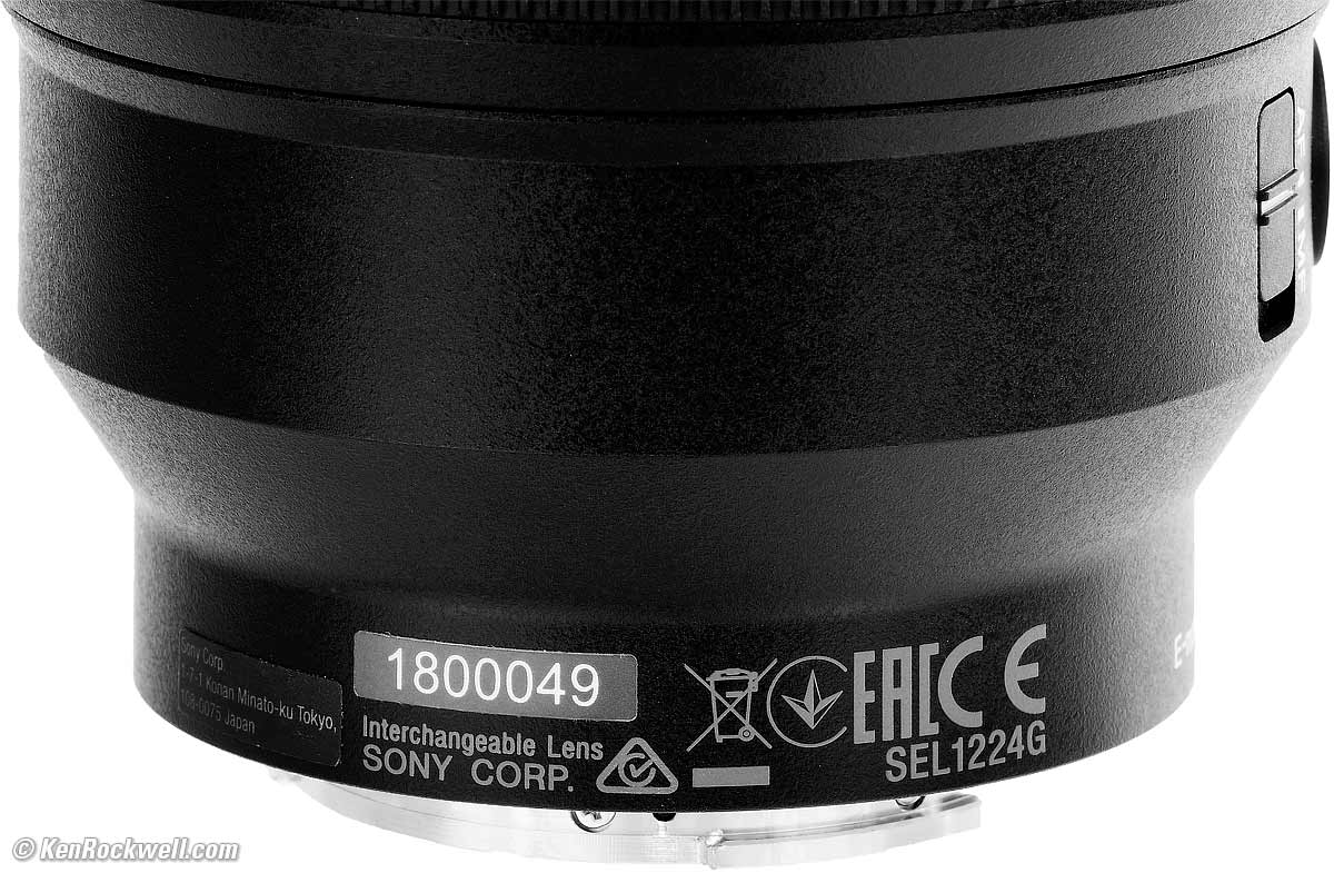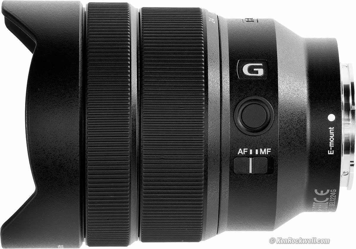 Sony 12-24mm f/4122º Full-Frame Ultra-Ultrawide (2017-)Sample Images Intro Format Compatibility Specifications Performance Compared Sony: A9 III A1 II A1 A9 II A7R V A7R IV A7 V A7 IV A7 III A7S III A7CR A7C II A7c FX3 FX2 ZV-E1 A6700 A6600 A6400 ZV-E10 II ZV-E10 ZV-1 II RX1R III RX10/4 RX100/7 Flash Lenses Sony FE 12-24mm f/4 G (no filters, 19.8 oz./561g, 0.9'/0.28m close focus, about $1,698). bigger. I'd get mine at Adorama, at Amazon, at B&H or at Crutchfield, or get it used if you know How to Win at eBay). bigger. This all-content, junk-free website's biggest source of support is when you use those or any of these links to my personally-approved sources when you get anything, regardless of the country in which you live. Sony does not seal its boxes in any way, so never buy at retail or any other source not on my personally approved list since you'll have no way of knowing if you're missing accessories, getting a defective, damaged, returned, store demo or used lens. Buy only from the approved sources I use myself for the best prices, service, return policies and selection. Thanks for helping me help you! Ken.
