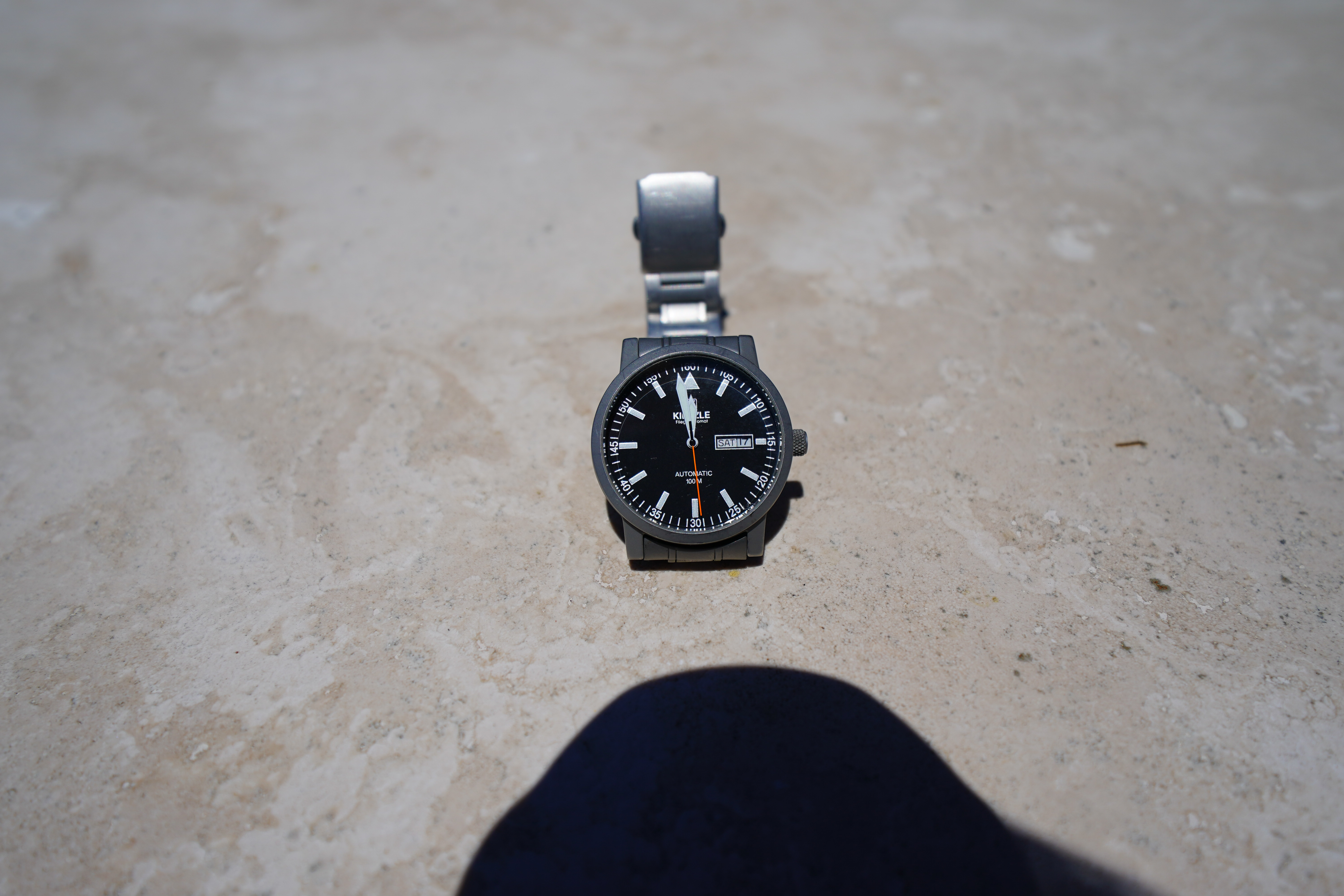 MacroAre you kidding? Macro with a 12-24mm lens? While it focuses to within inches of the front of the lens (the 0.9'/0.28 meter rating id from the image sensor), this lens is so wide it doesn't seem very close. The good news is that it is super-sharp at close distances, even wide-open at f/4, which is better than many lenses: Kienzle Flieger Automat 800/2843, 17 June 2017. Sony A9, Sony 12-24mm f/4 G at 24mm at close focus distance at f/4 at 1/4,000 at Auto ISO 100. bigger or camera-original © file.