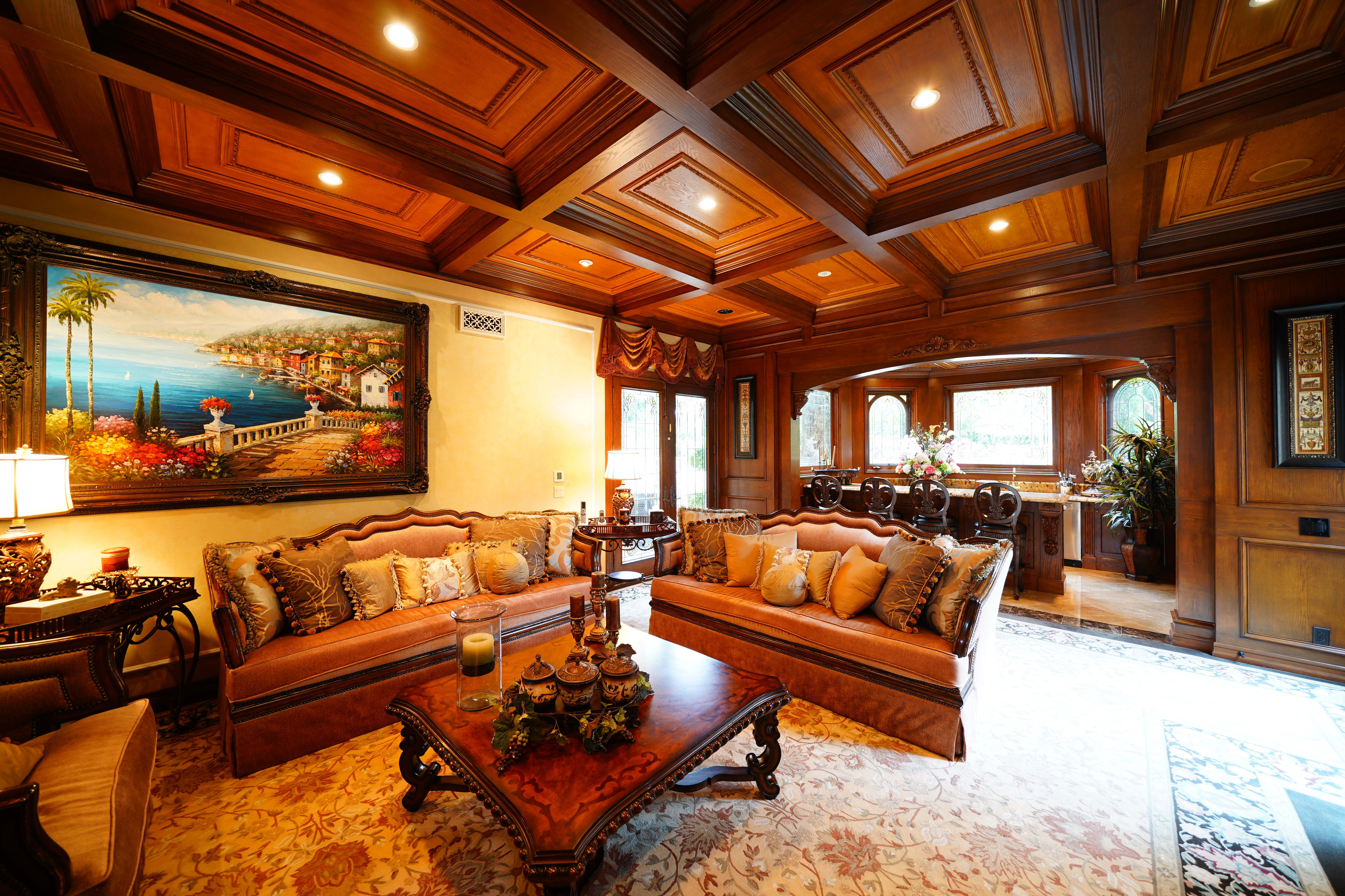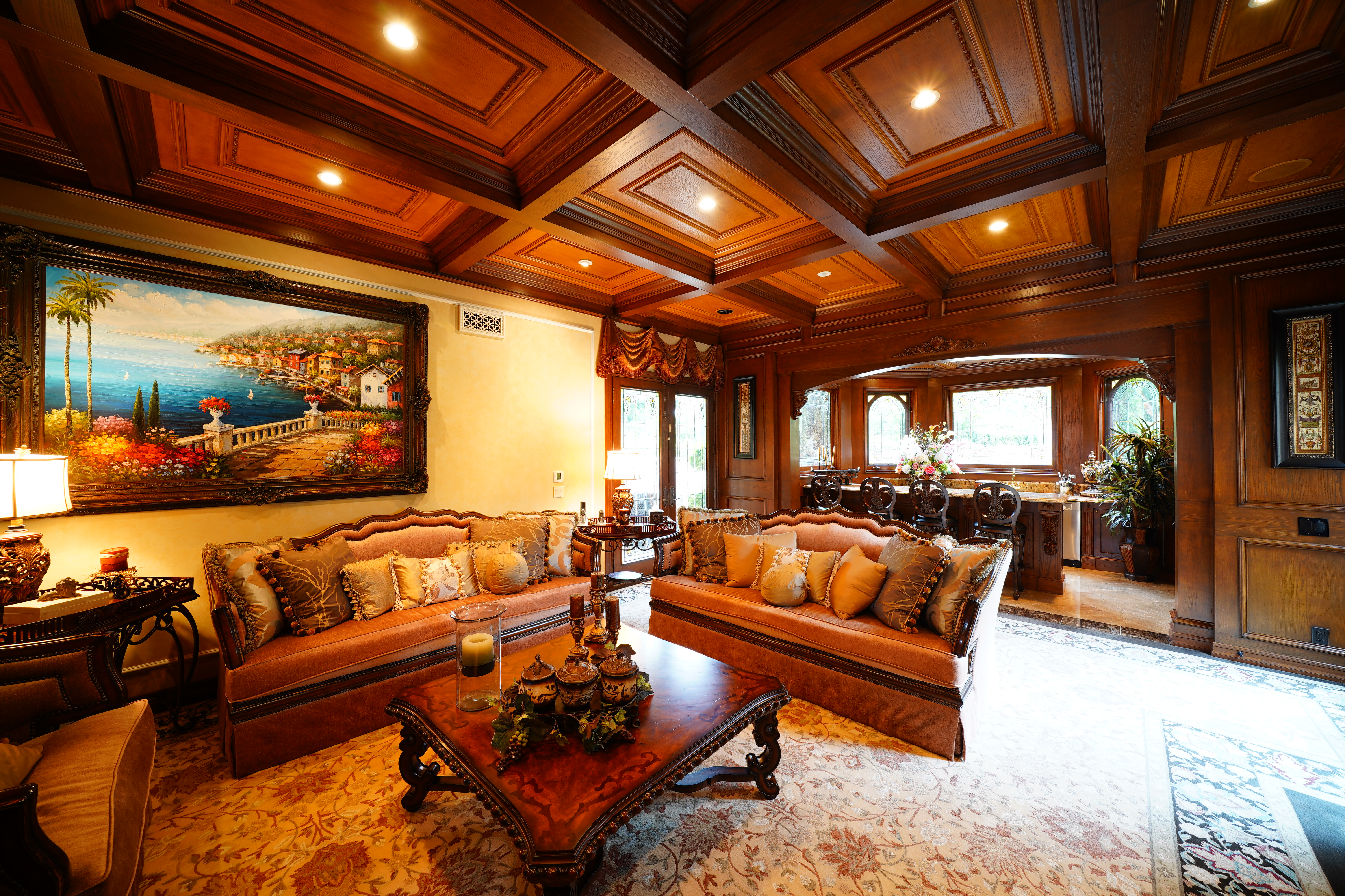 Fine Home with Coffered Ceilings, 22 June 2017. Sony A9 with Sony 12-24mm f/4 G at 12mm at f/8 at 2 seconds at ISO 100. bigger or camera-original © file. Stopping down to f/8 merely increases depth of field; sharpness is so good that it's already optimum wide-open at f/4.