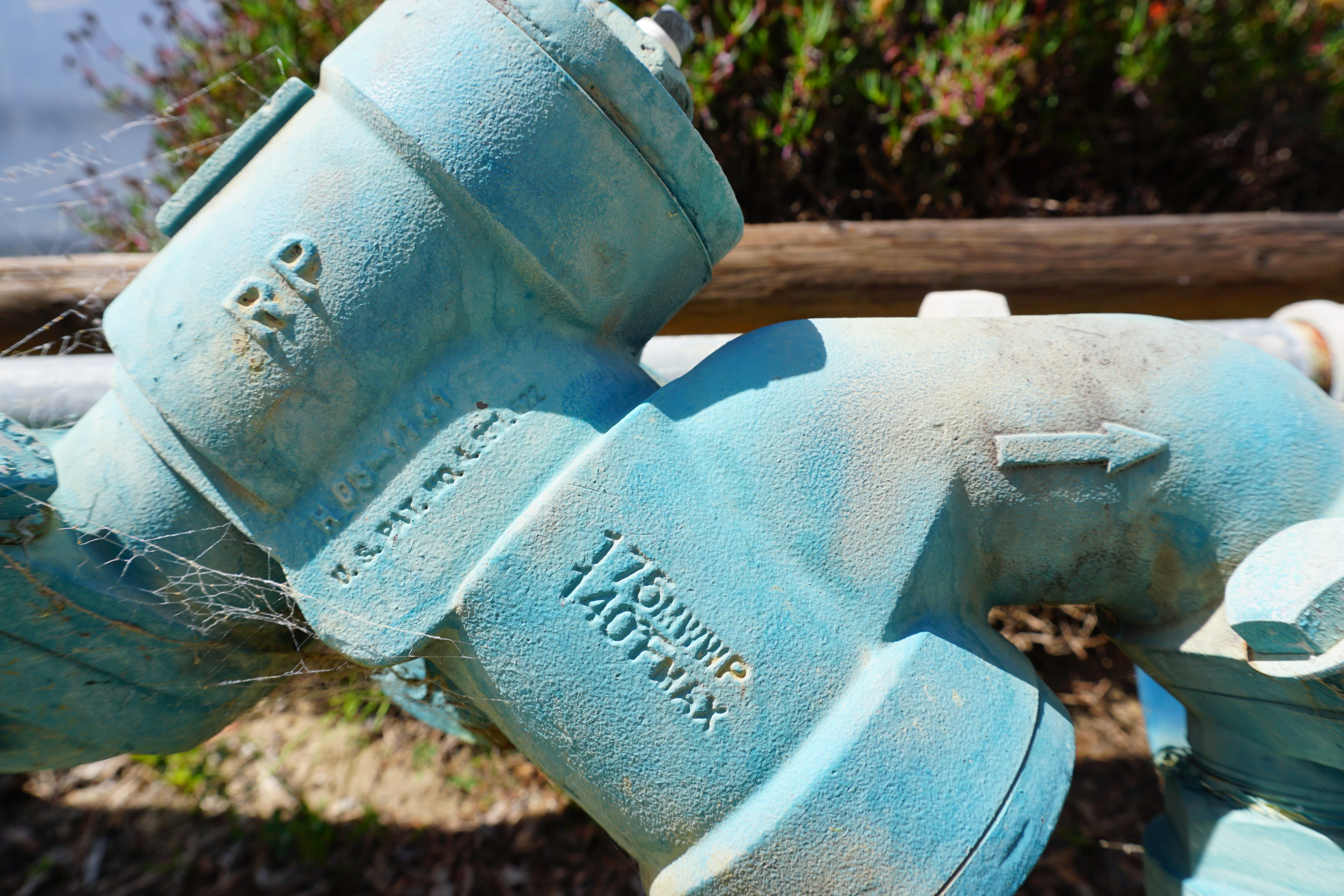 Light Blue Water Pipes, 29 March 2016. Sony A6300, Sony PZ 16-50mm OSS at 16mm, f/7.1 at 1/200 at Auto ISO 1000, Perfectly Clear v2.) bigger or © camera-original file to explore on your computer (mobile devices rarely display the full resolution accurately). Only the center of these pipes is in focus.