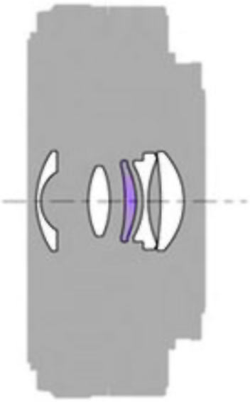 OpticsSony 16mm f/2.8 optical construction. Aspherical element. 5 elements in 5 groups. One Aspherical element. Internal focus.