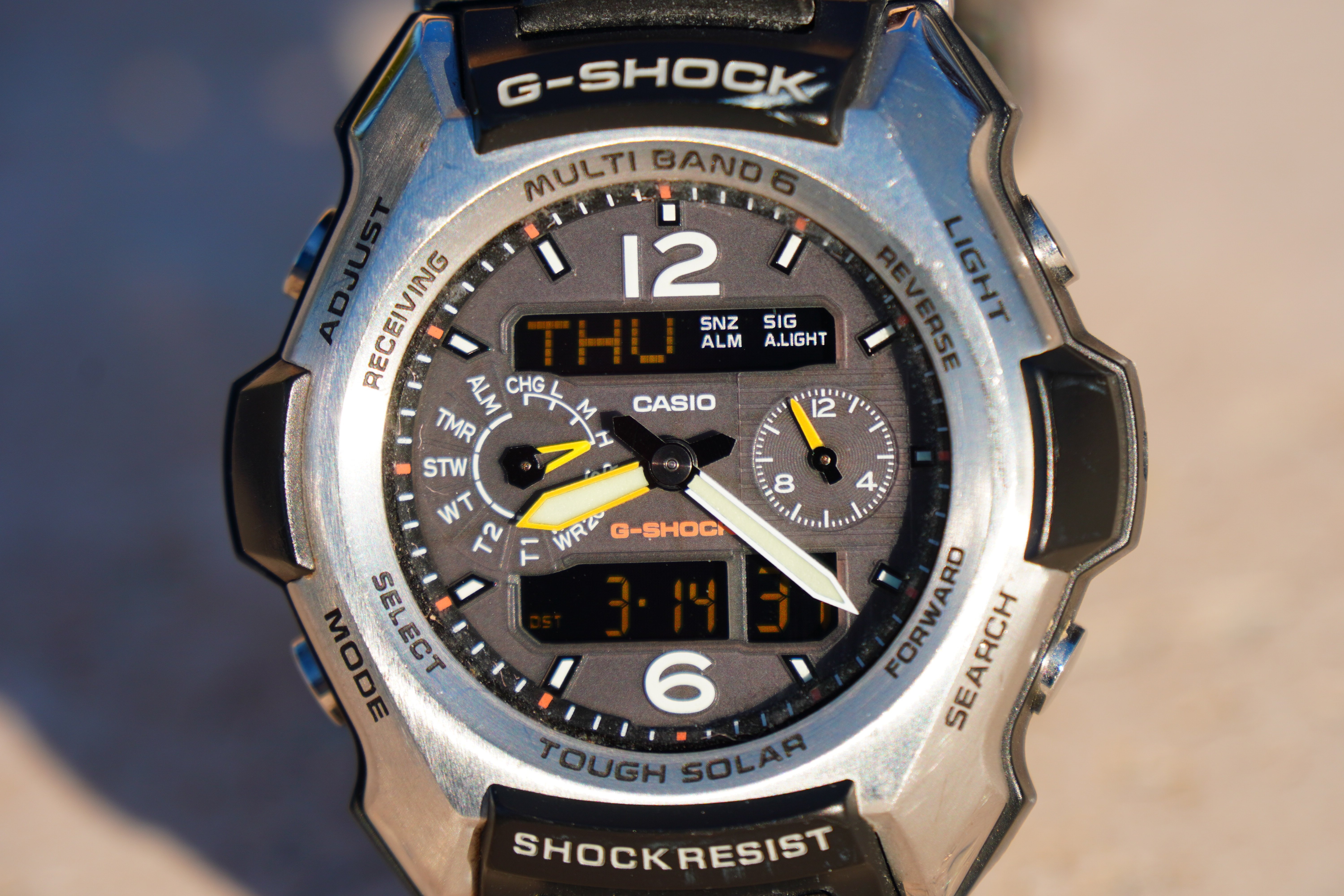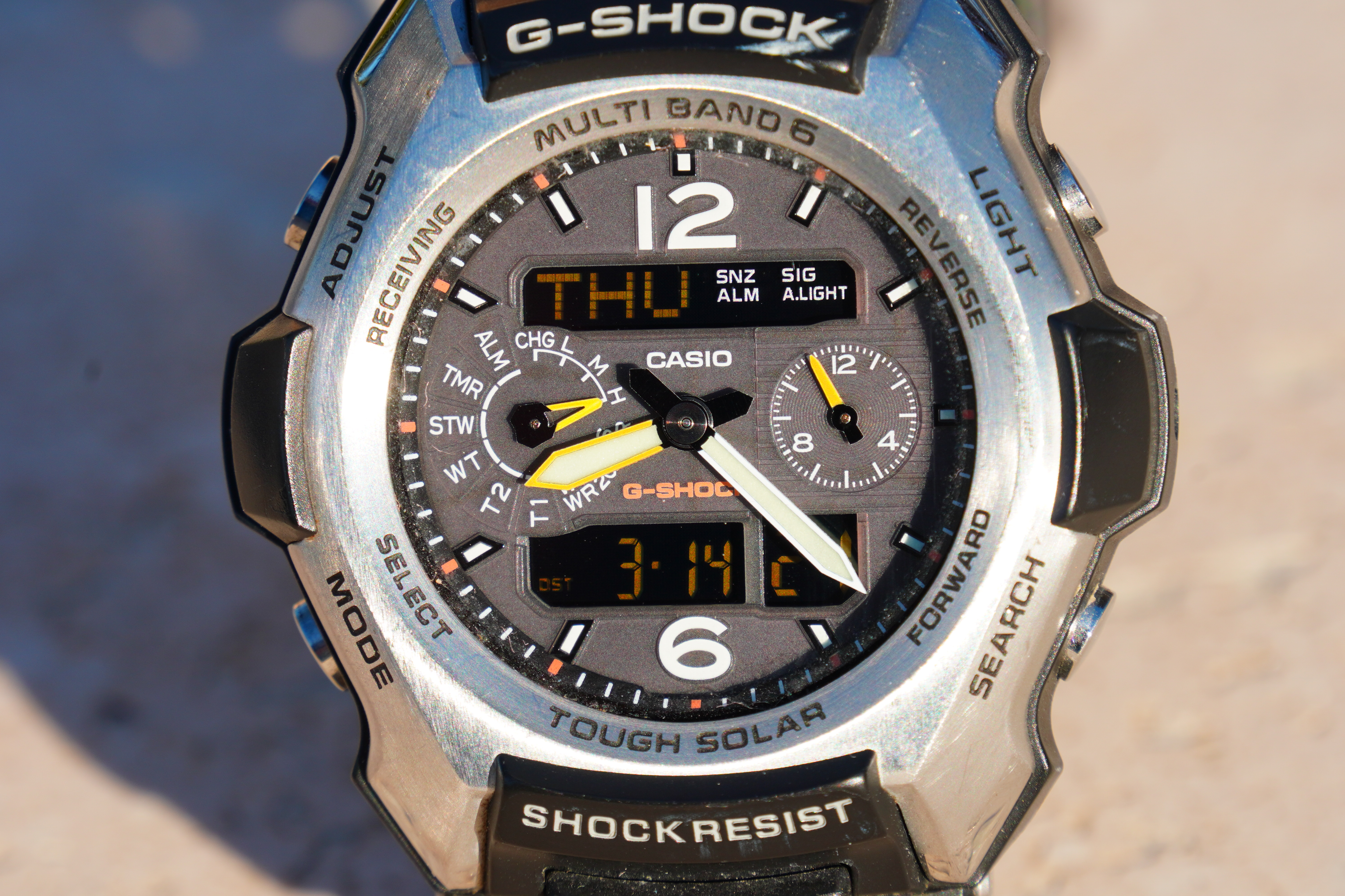At f/6.3This is shot at 200mm wide-open at f/6.3. It never gets that sharp at f/6.3: Casio G-Shock Solar Atomic Watch at close-focus distance, 14 March 2019. Sony A6400, Sony 18-200mm PZ at 200mm wide-open at f/6.3 at 1/250 at ISO 100. bigger or camera-original © file.