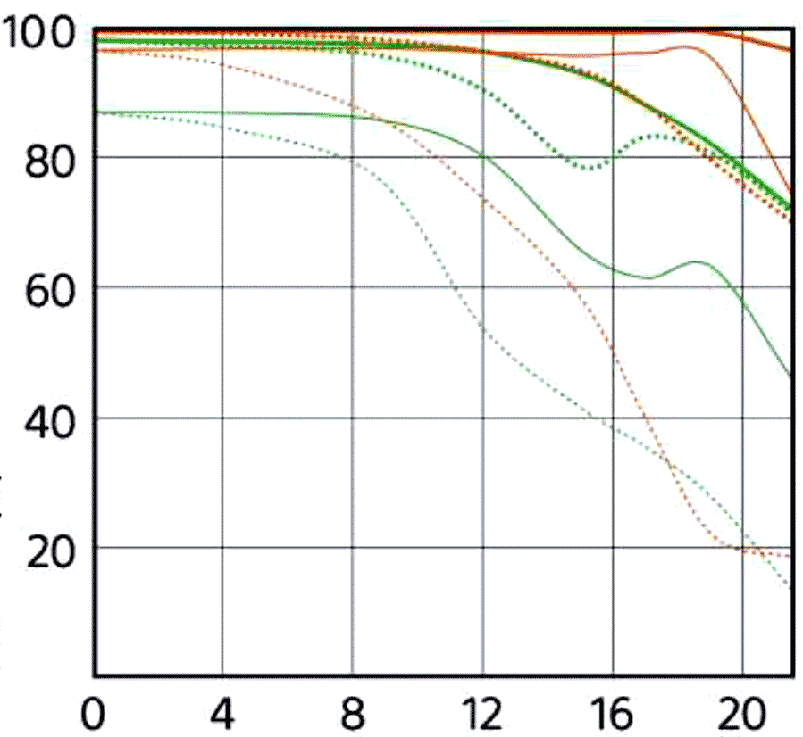 SharpnessPorta Potties, 28 July 2017. Sony A9, Sony 24-240mm at 55mm at f/5.6 at 1/500 at Auto ISO 100. bigger or camera-original © file. The plastic potties are more distorted than any artifact in the lens! The only limitation to picture sharpness will be your skill as a photographer. I have no problem making sharp images with this lens. No, it's not as sharp as the 24-70/2.8 GM and 70-200/2.8 GM if you shoot wide-open and look in the corners of full-frame with a microscope, but people who do that almost never take good pictures. It's very sharp where you need it, and sharp stopped down. Here are Sony's MTF charts at 10 cyc/mm and 30 cyc/mm:
