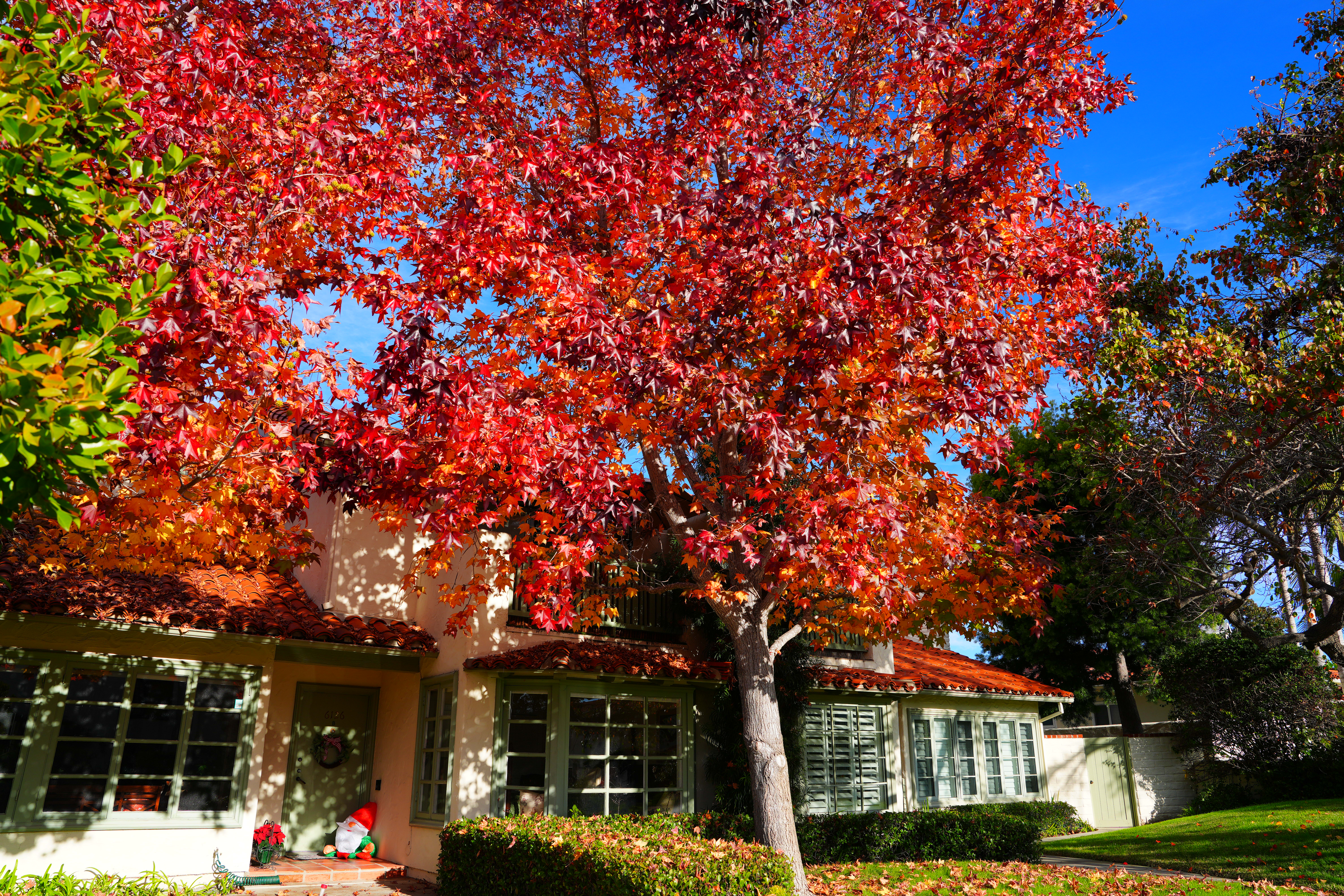 Sample Images topSample Images Intro New Good Bad Missing More samples throughout this review at Bokeh, Falloff, Macro, Spherochromatism and Sunstars. These are just snapshots; my real work is in my Gallery. These are all shot within half an hour walking around hand-held as 60 MP LIGHT JPGs (the smallest file size). No tripods, no STANDARD, FINE or EXTRA FINE JPGs or RAW files were used or needed. Distortion control is off, in-camera picture mode is VIVID with Saturation set to +9 and sharpening set to 9 for all of these: Red Tree, 8:46 AM, Saturday, 17 December 2022. Sony A7R V, FE 24-70mm f/2.8 GM II at 24 mm at f/7.1 at 1/200 at Auto ISO 100 (LV 13.3), cropped in Photoshop CS6 (2012), otherwise as-shot. bigger or camera-original 60 MP © 15 MB JPG file.