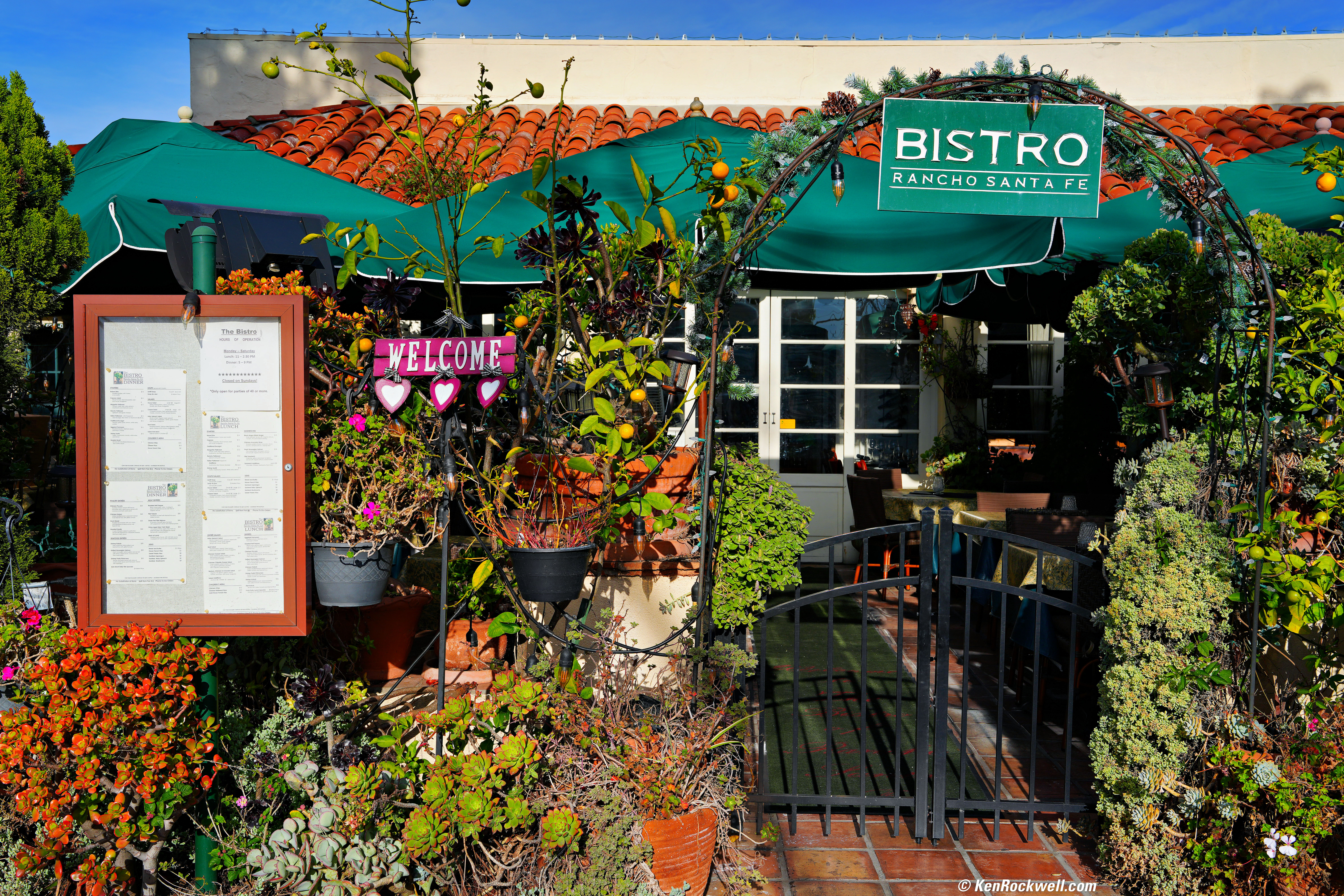 Bistro, 8:52 AM, Saturday, 17 December 2022. Sony A7R V, FE 24-70mm f/2.8 GM II at 40mm at f/8 at 1/400 at Auto ISO 100, -0.7 stops exposure compensation (LV 14⅔), Radiant Photo Software, perspective correction in Photoshop CS6 (2012). bigger or full resolution 60 MP © 16 MB JPG file. It's so sharp that it's easy to read everything on the menu. This is a three-dimensional subject and not everything is in perfect focus.