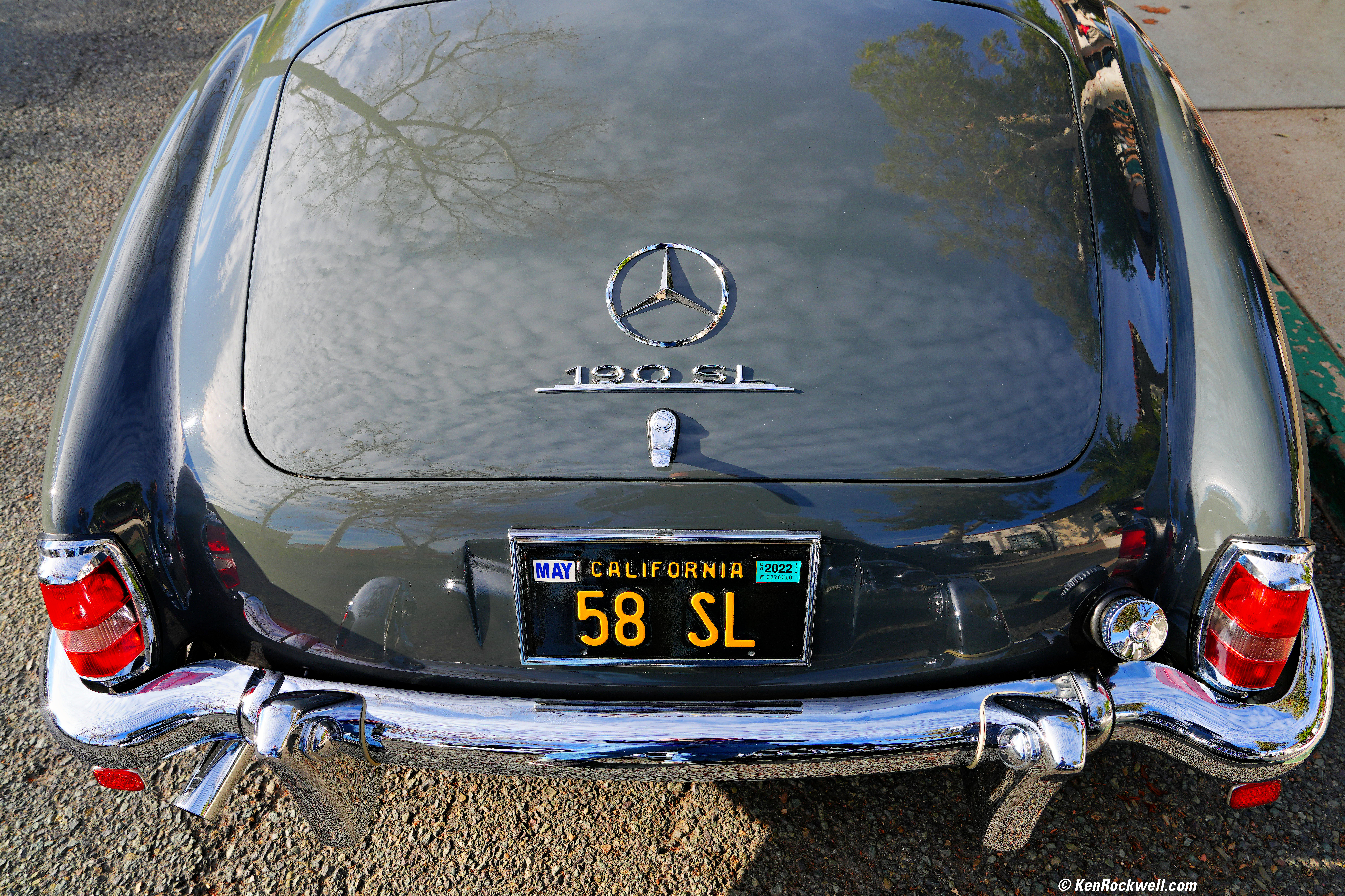 1958 Mercedes-Benz 190 SL, 8:53 AM, Saturday, 17 December 2022. Sony A7R V, FE 24-70mm f/2.8 GM II at 24mm at f/7.1 at 1/200 at Auto ISO 100, -0.7 stops exposure compensation (LV 13.3), Radiant Photo Software. bigger or full resolution 60 MP © 11 MB JPG file.