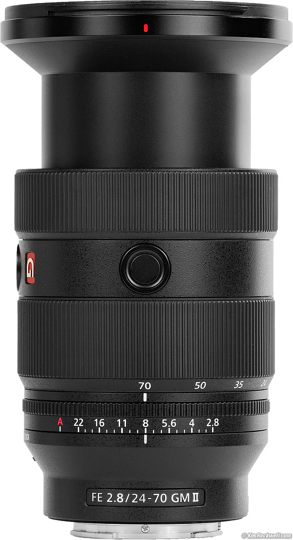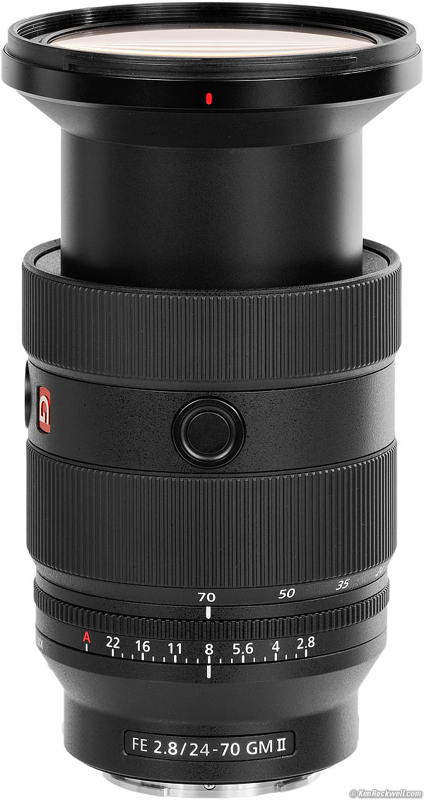 Sony FE 24-70mm f/2.8 GM IIFast, Light Full-Frame LensSample Images Intro New Good Bad Missing Sony: A9 III A1 II A1 A9 II A7R V A7R IV A7 V A7 IV A7 III A7S III A7CR A7C II A7c FX3 FX2 ZV-E1 A6700 A6600 A6400 ZV-E10 II ZV-E10 ZV-1 II RX1R III RX10/4 RX100/7 Flash Lenses Sony FE 24-70mm f/2.8 GM II (82mm filters, 24.5 oz./695g, 0.7-1'/0.21-0.3m close focus, 0.32× macro ratio, $2,298). bigger. I'd get mine at Adorama, at Amazon, at B&H or at Crutchfield, or about $1,900 used at eBay if you know How to Win at eBay. This 100% all-content, junk-free website's biggest source of support is when you use those or any of these links to my personally approved sources I've used myself for way over 100 combined years when you get anything, regardless of the country in which you live — but I receive nothing for my efforts if you take the chance of getting it elsewhere. Sony does not seal its boxes in any way, so never buy at retail or any other source not on my personally approved list since you'll have no way of knowing if you're missing accessories, getting a defective, damaged, returned, dropped, incomplete, gray-market, store demo or used lens — and my personally approved sources allow for 100% cash-back returns for at least 30 days if you don't love your new lens. I've used many of these sources since the 1970s because I can try it in my own hands and return it if I don't love it, and because they ship from secure remote warehouses where no one gets to touch your new lens before you do. Buy only from the approved sources I've used myself for decades for the best prices, service, return policies and selection.