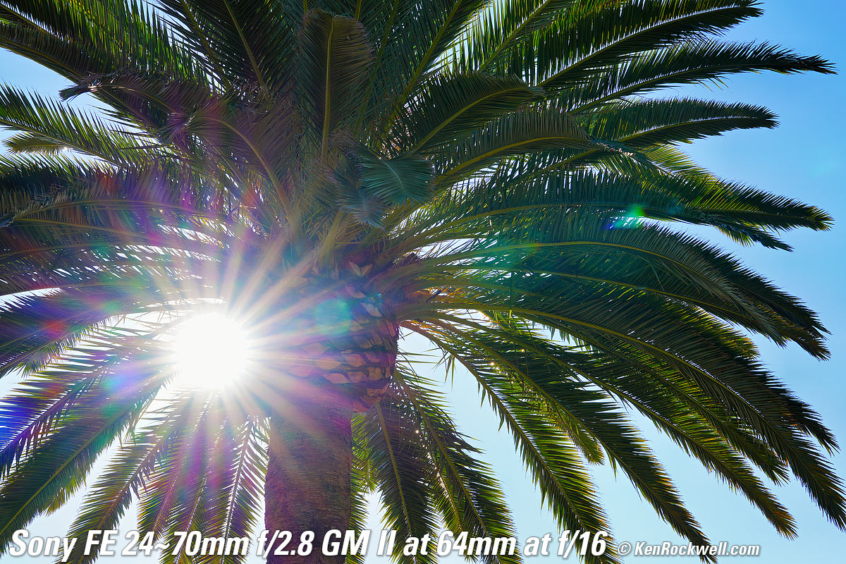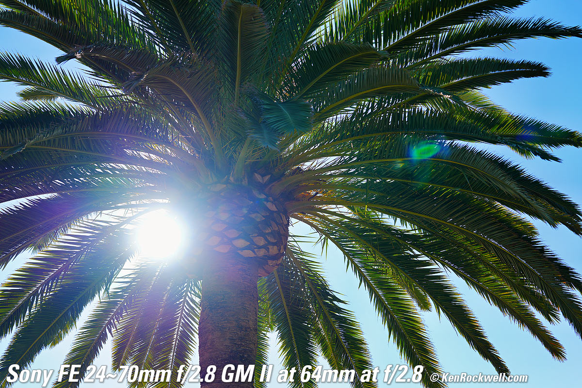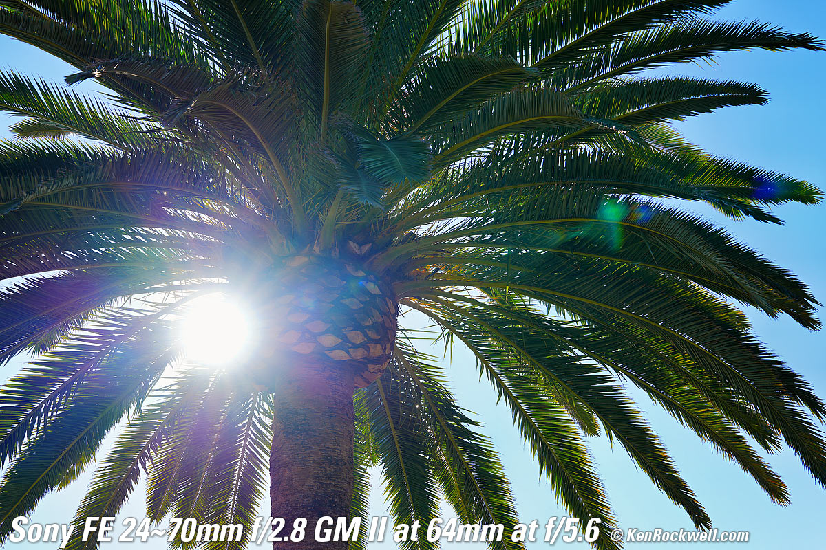 Recommendations topSample Images Intro New Good Bad Missing I'd get my FE 24-70mm f/2.8 GM II at Adorama, at Amazon, at B&H or at Crutchfield, or used at eBay if you know How to Win at eBay. This is a much better lens than the big, old original FE 24-70mm GM, which was also optically superb, but too darn heavy to make it fun to carry and use every day. This new -II lens is a dream, being as light as a toy and making big-boy pictures. Bravo! I use a clear (UV) protective filter instead of a cap (exactly like an iPhone) so I'm always ready to shoot instantly. I only use a cap when I throw this in a bag with other gear without padding — which is never. The UV filter never gets in the way, and never gets lost, either. The very best protective filter is the 82mm Hoya multicoated HD3 UV which uses hardened glass and repels dirt and fingerprints. The Nikon NC 82mm is also an excellent choice, but not as resistant to the environment, fingerprints and physical abuse as the HD3 UV. For much less money, the Hoya multicoated 82mm UV is also optically superb, but the Hoya HD3 is the toughest. Any of these filters protects as well and gives ultrasharp images, but since filters last a lifetime, you may as well get the best since the Hoya HD3 is tougher and stays cleaner than the others since it repels oil and dirt. The Nikon 82mm Polarizer is superb. All these filters are just as sharp and take the same pictures, the difference is how much abuse they'll take and stay clean and stay in one piece. Since filters last a lifetime or more, there's no reason not to buy the best as it will last you for the next 40 years. Filters aren't throwaways like digital cameras which we replace every few years, like it or not. I'm still using filters I bought back in the 1970s! I'd get my FE 24-70mm f/2.8 GM II at Adorama, at Amazon, at B&H or at Crutchfield, or used at eBay if you know How to Win at eBay. This 100% all-content, junk-free website's biggest source of support is when you use those or any of these links to my personally approved sources I've used myself for way over 100 combined years when you get anything, regardless of the country in which you live — but I receive nothing for my efforts if you take the chance of getting it elsewhere. Sony does not seal its boxes in any way, so never buy at retail or any other source not on my personally approved list since you'll have no way of knowing if you're missing accessories, getting a defective, damaged, returned, dropped, incomplete, gray-market, store demo or used lens — and my personally approved sources allow for 100% cash-back returns for at least 30 days if you don't love your new lens. I've used many of these sources since the 1970s because I can try it in my own hands and return it if I don't love it, and because they ship from secure remote warehouses where no one gets to touch your new lens before you do. Buy only from the approved sources I've used myself for decades for the best prices, service, return policies and selection. Thanks for helping me help you! Ken.