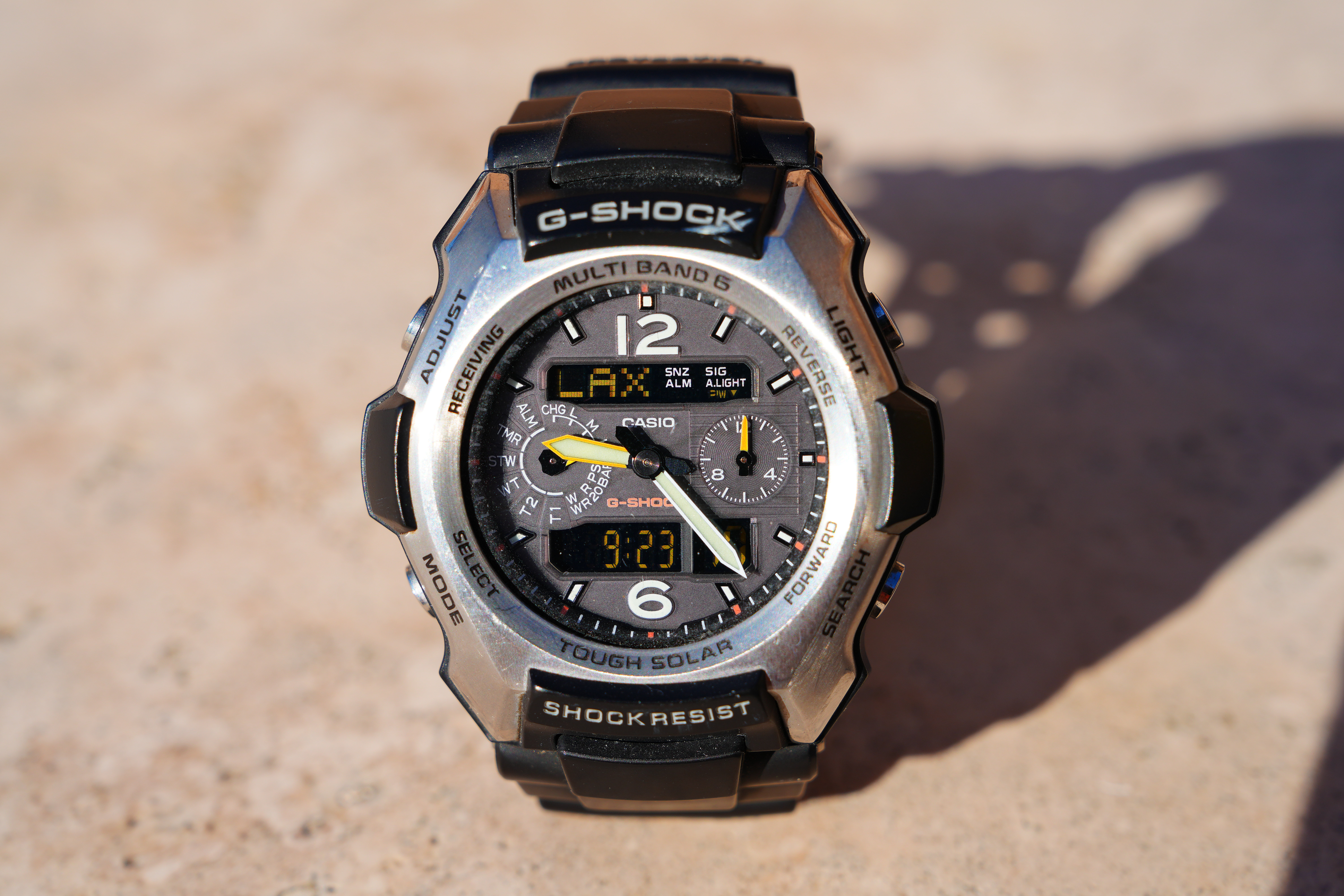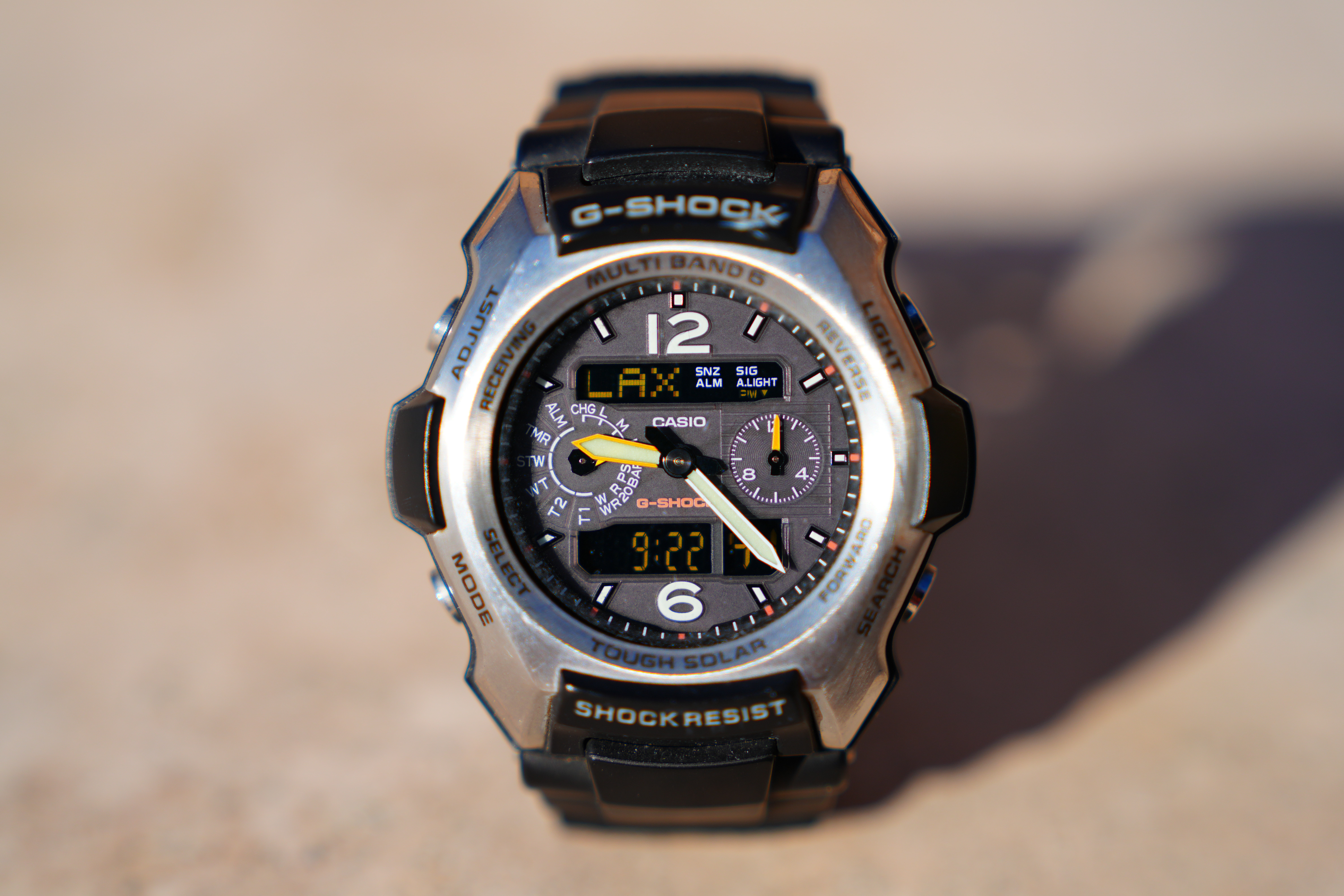 At f/8Spherochromatism goes away stopped down a little, and by f/8 it's super sharp, as are all lenses at f/8: Casio G-Shock Solar Atomic Watch at 70mm at close-focus distance, 19 December 2022. bigger or camera-original © file.