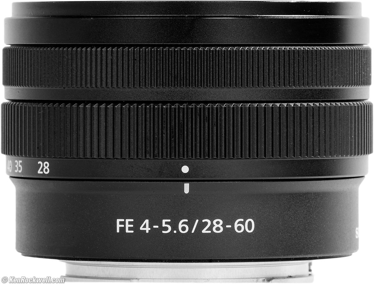 Sony 28-60mmf/4~5.6 FE Full-Frame (2020‑)Sample Images Intro Compatibility Sony: A9 III A1 II A1 A9 II A7R V A7R IV A7 V A7 IV A7 III A7S III A7CR A7C II A7c FX3 FX2 ZV-E1 A6700 A6600 A6400 ZV-E10 II ZV-E10 ZV-1 II RX1R III RX10/4 RX100/7 Flash Lenses Sony FE 28-60mm f/4-5.6 (40.5mm filters, 5.9 oz./166g, 1-1.5'/0.3-0.45m close focus, $498). bigger. I'd get mine at Adorama, at Amazon, at B&H or at Crutchfield, or eventually used at eBay if you know How to Win at eBay. This all-content, junk-free website's biggest source of support is when you use those or any of these links to approved sources when you get anything, regardless of the country in which you live. Thanks for helping me help you! Ken.