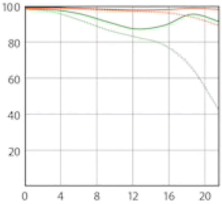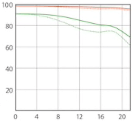 Here are Sony's MTF charts at 10 cyc/mm and 30 cyc/mm, radial (solid) and tangential (dotted):