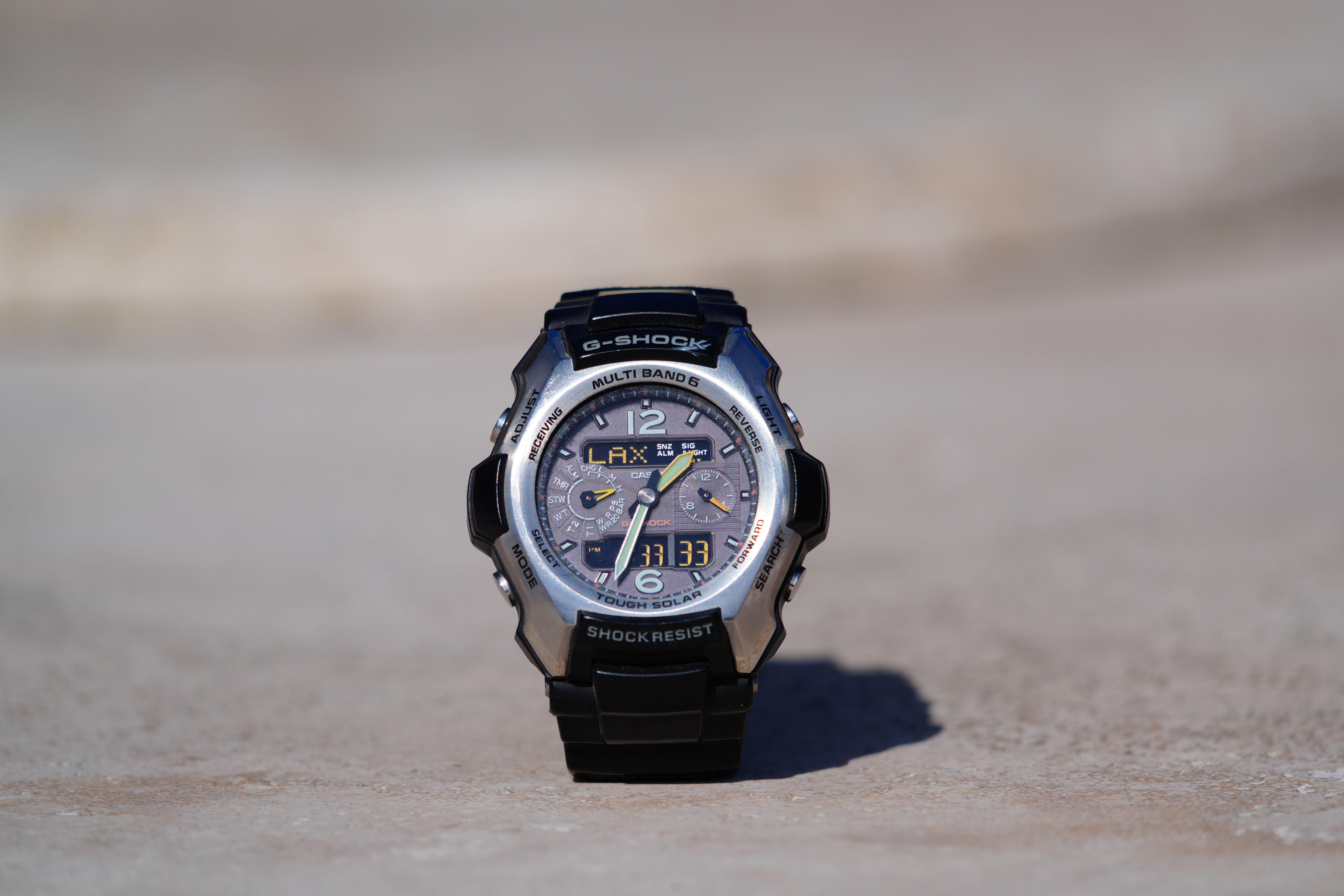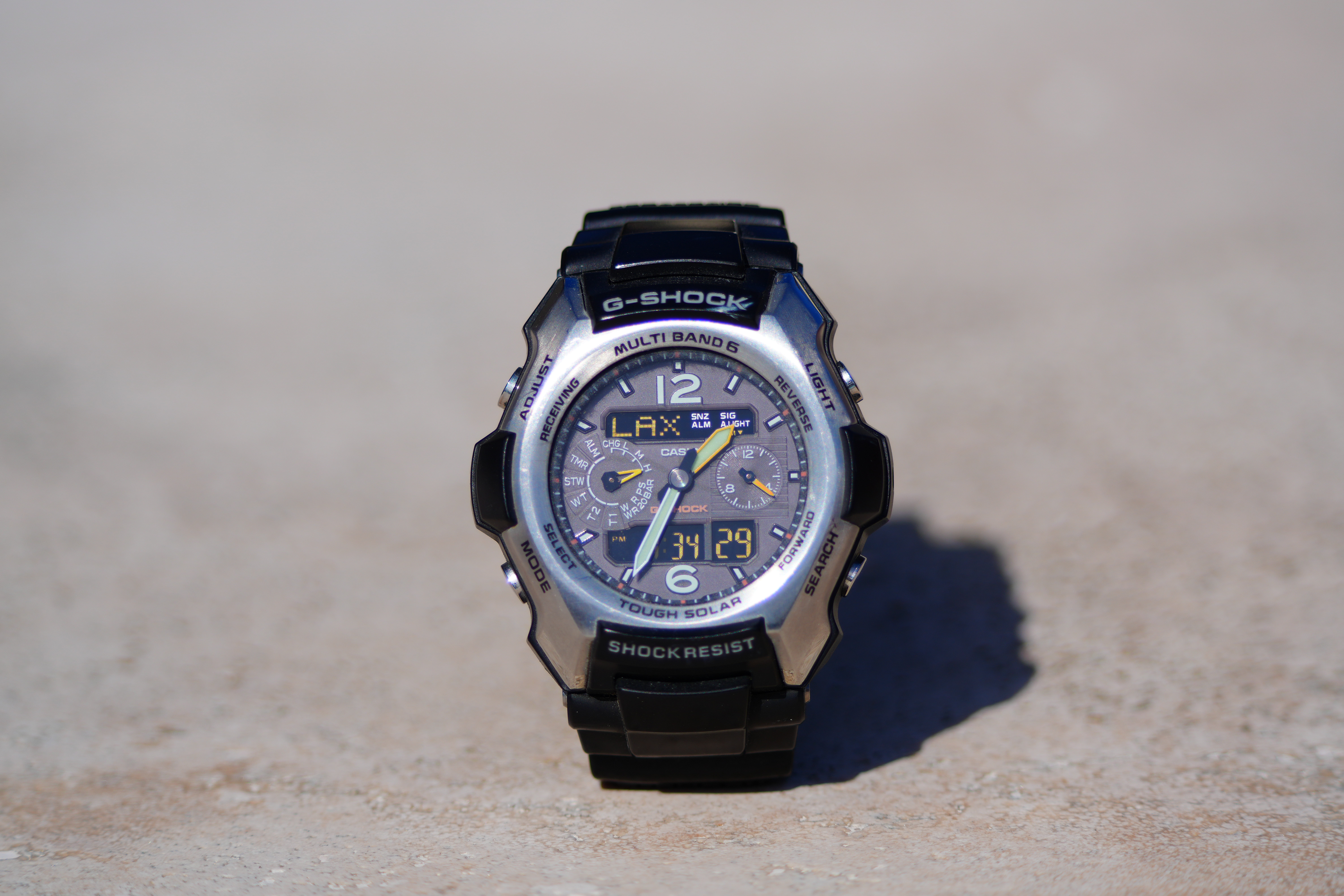 At 400mmOddly it gets more magnification at 400mm because it focuses much more closely at 400mm and I suspect it cheats a bit at 800mm: Casio G-Shock Solar Atomic Watch at close-focus distance, 14 February 2025. Sony A7R V, Sony FE 400-800mm G OSS at 400mm at f/6.3 hand-held at 1/1,000 at Auto ISO 100 (LV 15.3). bigger or camera-original © file.
