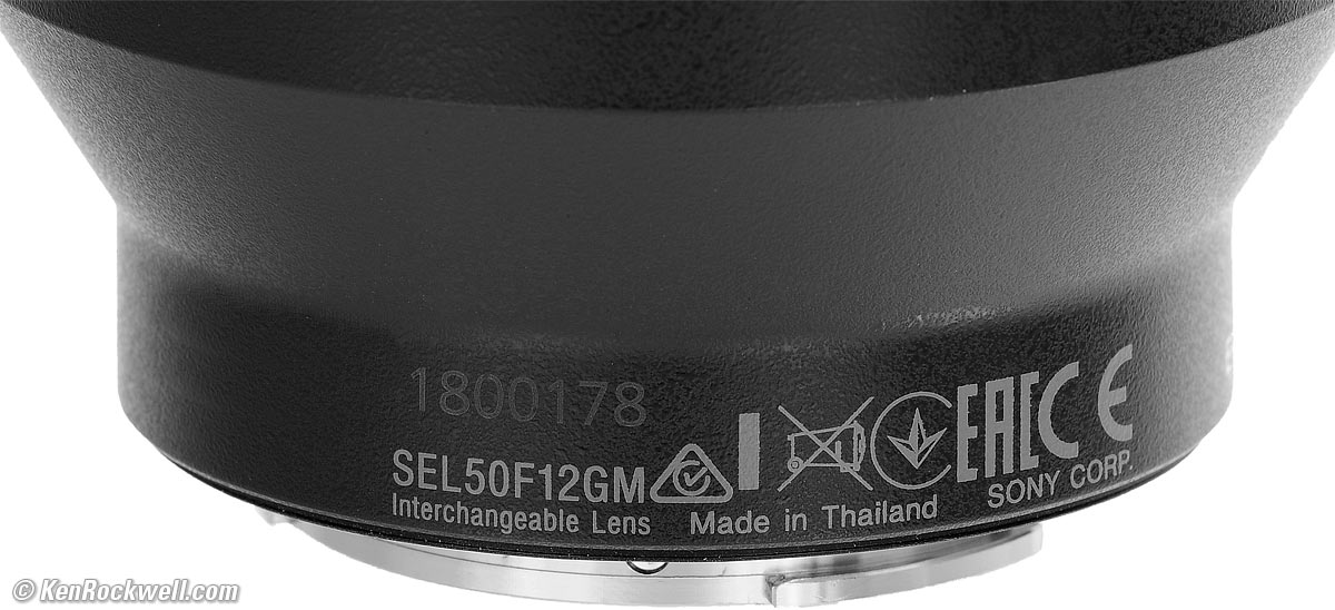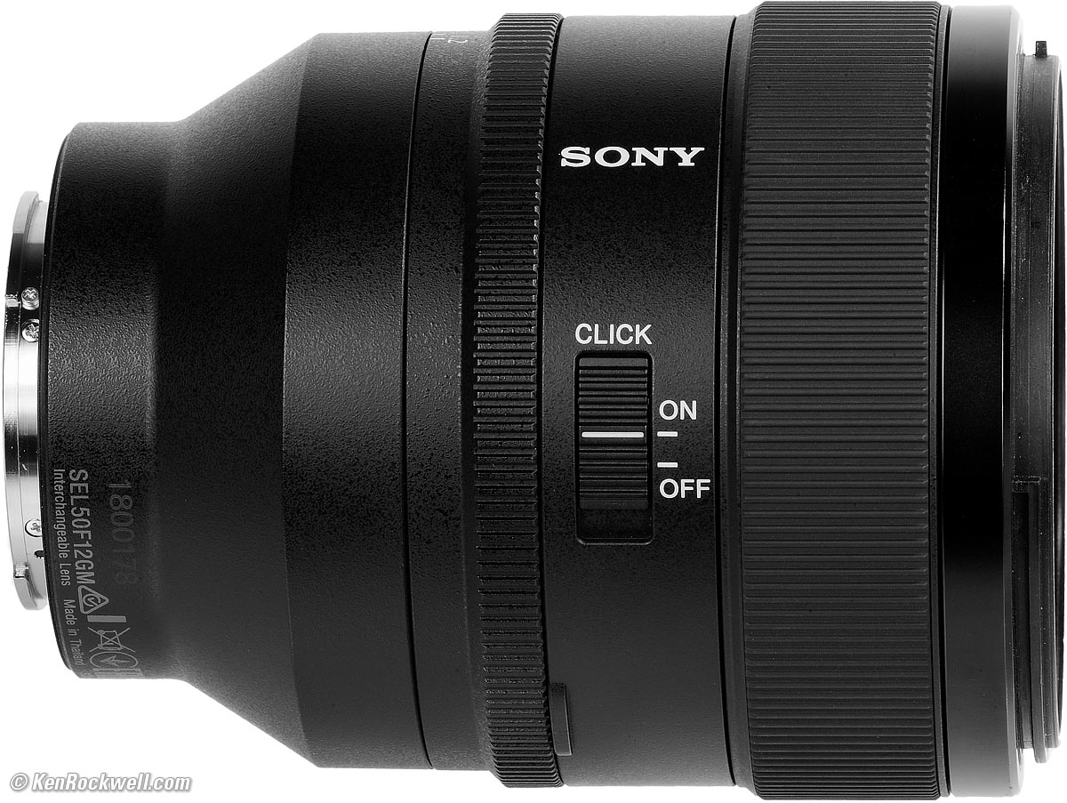 Sony 50mm f/1.2Full Frame FE GMNew Good Bad Missing Format Compatibility Specifications Performance Compared Sony: A9 III A1 II A1 A9 II A7R V A7R IV A7 V A7 IV A7 III A7S III A7CR A7C II A7c FX3 FX2 ZV-E1 A6700 A6600 A6400 ZV-E10 II ZV-E10 ZV-1 II RX1R III RX10/4 RX100/7 Flash Lenses Sony FE 50mm f/1.2 GM (72mm filters, 27.5 oz./778g, 1⅓'/0.4m close focus, $1,998). bigger. I got mine at B&H. I'd also get it at Adorama, at Amazon or at Crutchfield, or used at eBay if you know How to Win at eBay. This 100% all-content, junk-free website's biggest source of support is when you use those or any of these links to my personally approved sources I've used myself for way over 100 combined years when you get anything, regardless of the country in which you live. Sony does not seal its boxes in any way, so never buy at retail or any other source not on my personally approved list since you'll have no way of knowing if you're missing accessories, getting a defective, damaged, returned, non-USA, store demo or used lens — and all of my personally approved sources allow for 100% cash-back returns for at least 30 days if you don't love your new lens. I've used many of these sources since the 1970s because I can try it in my own hands and return it if I don't love it, and because they ship from secure remote warehouses where no one gets to touch your new lens before you do. Buy only from the approved sources I've used myself for decades for the best prices, service, return policies and selection.