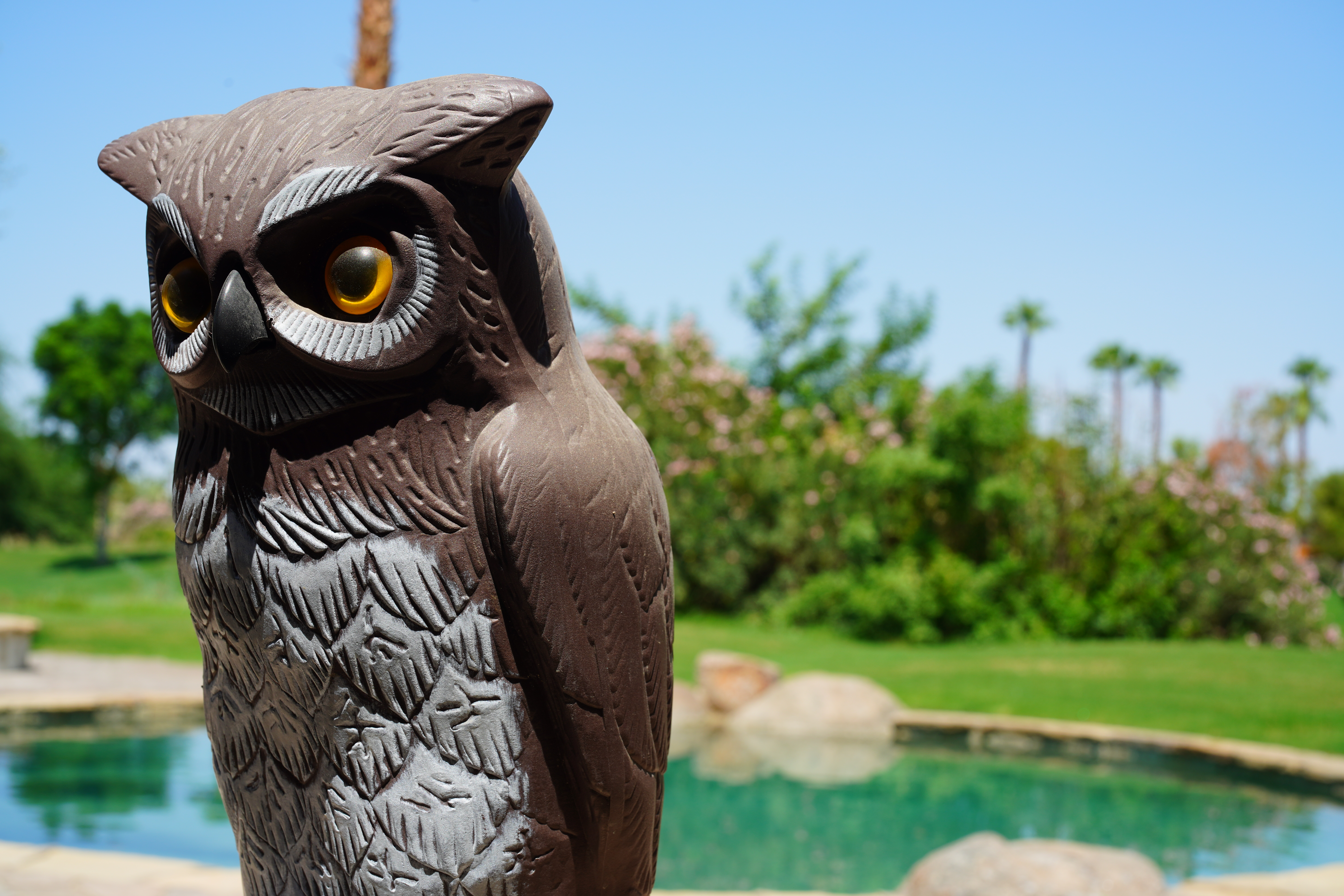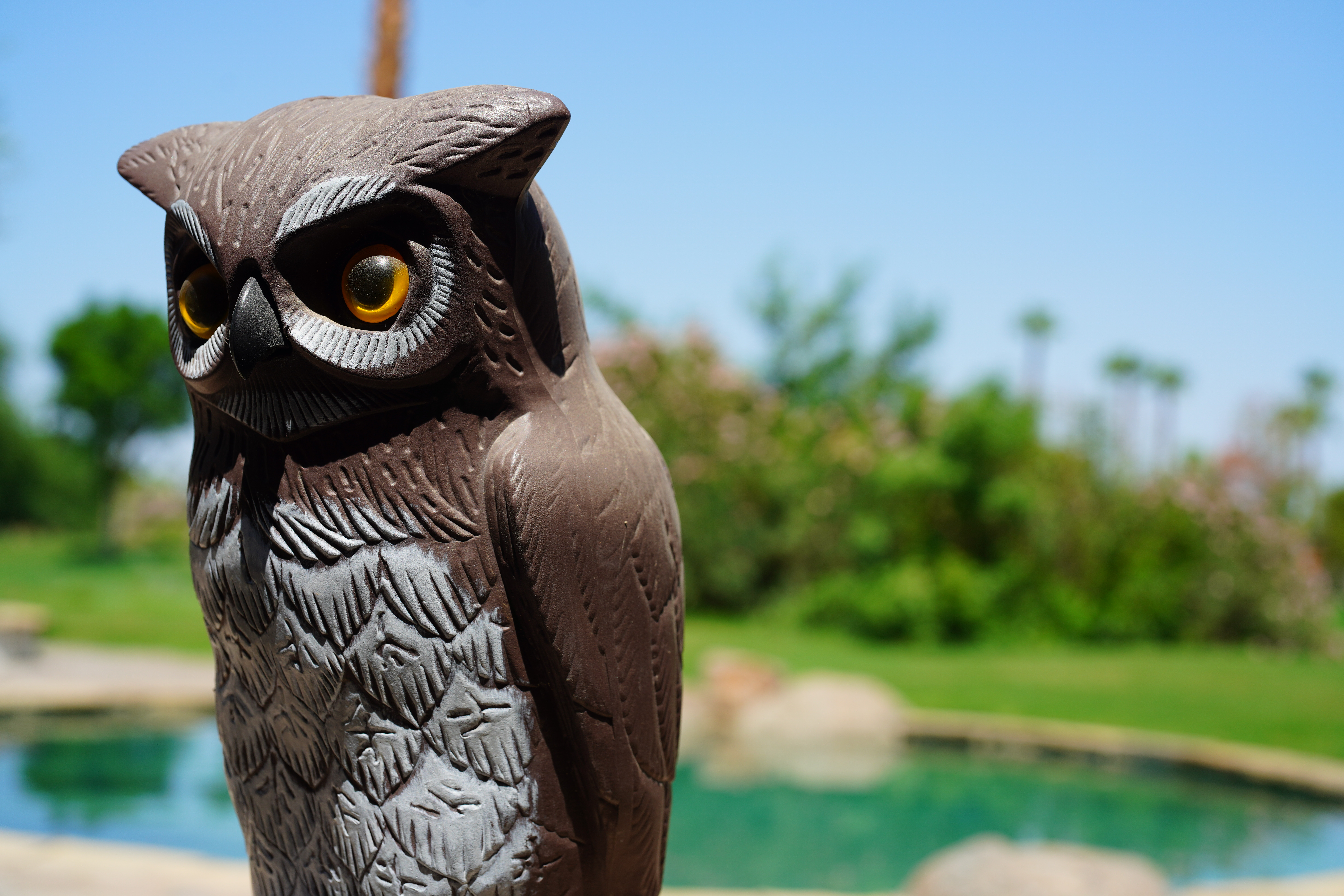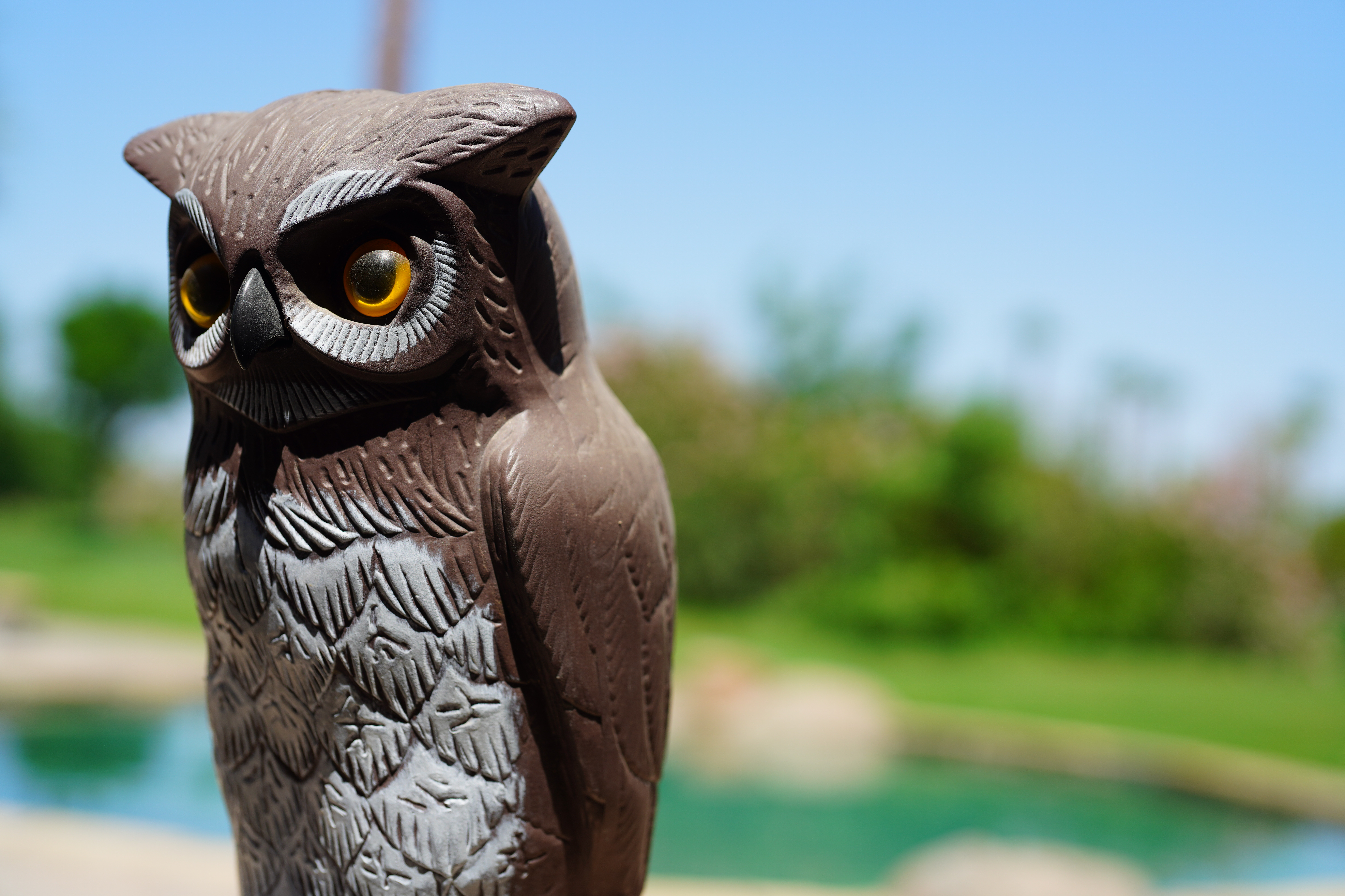 Bokeh performance topBokeh, the feel, character or quality of out-of-focus areas as opposed to how far out of focus they are, is excellent. Out-of-focus backgrounds just melt away, except at small apertures where bokeh isn't as important and becomes worse because the blur circles have emphasized edges — but at large apertures where it matters, bokeh is great. Here are photos from headshot distance wide-open. I'm focused on the owl's eye. Click any for the © camera-original file: Scarecrow Owl, 01 September 2021. A7R IV at 1/8,000,1/1,600,1/500 and 1/100 at Auto ISO 100 (LV 13.5, 13.6, 13.9 and 13.6). Click any for the © camera-original file. As always, if you want to throw the background as far out of focus as possible, shoot at f/1.2 and get as close as possible.